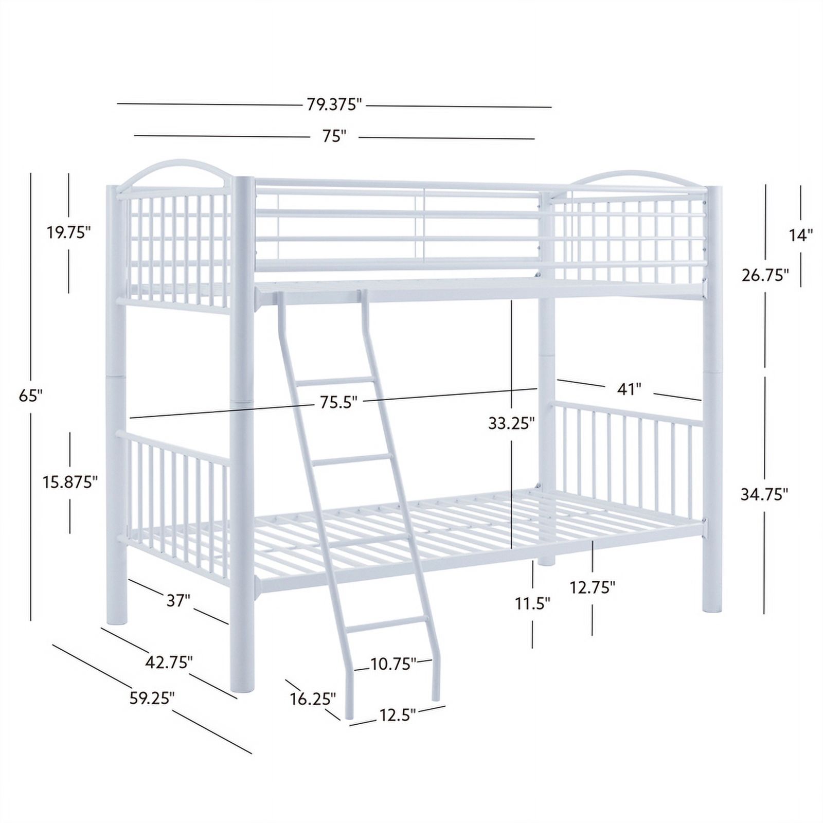 My Home Furnishings Bailey Engineered Hard Wood Twin Bunk Bed in Bright White