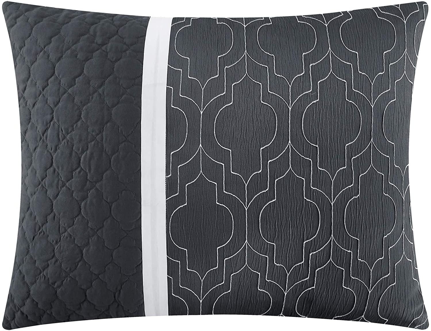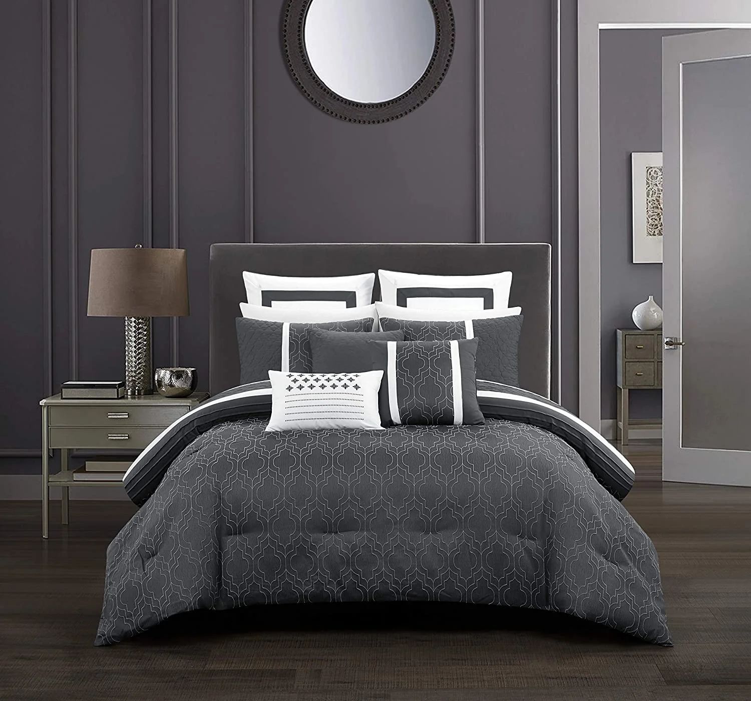 Chic Home Arlow Comforter Set Jacquard Geometric Quilted Pattern Design Bed In A Bag Grey, Queen