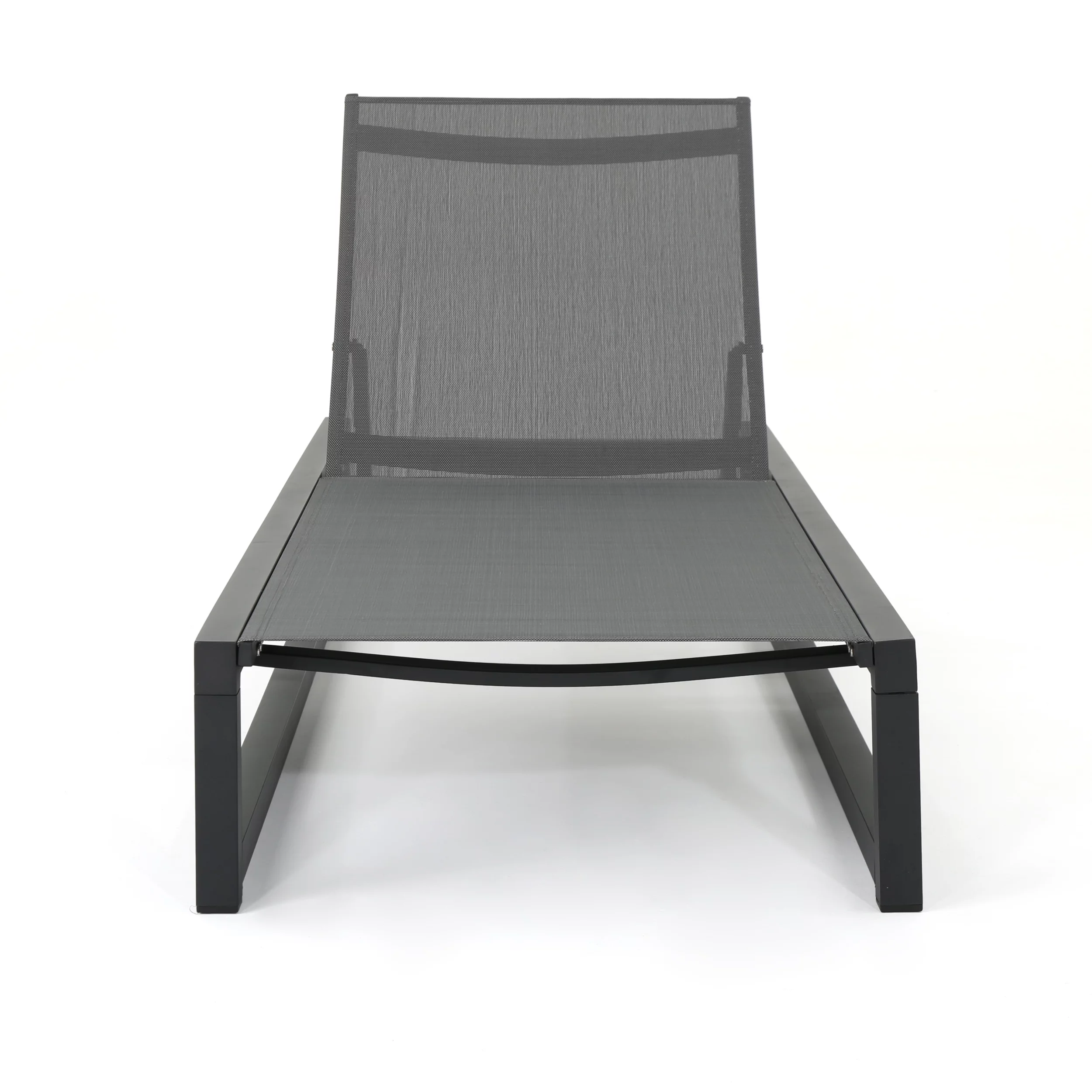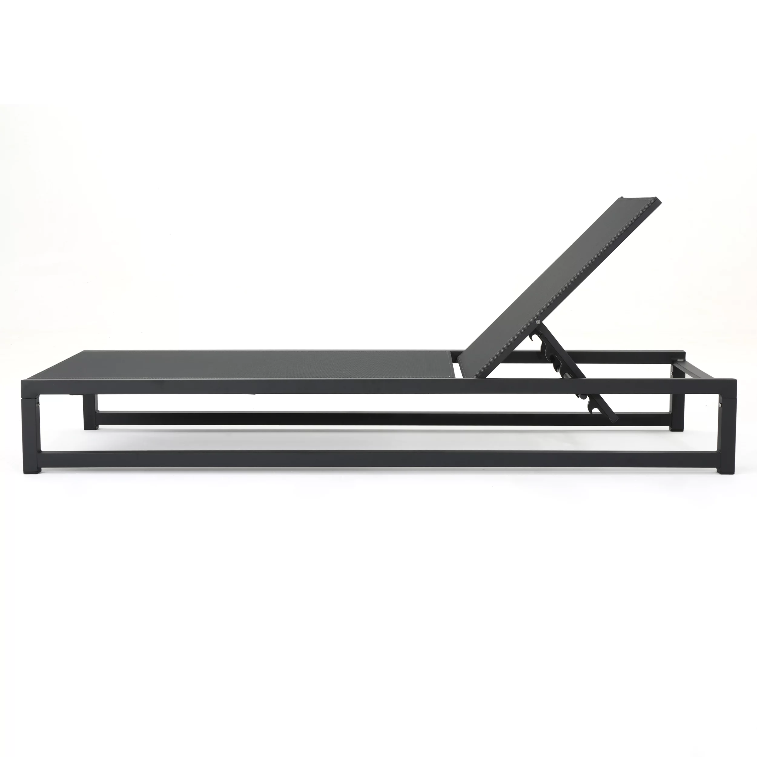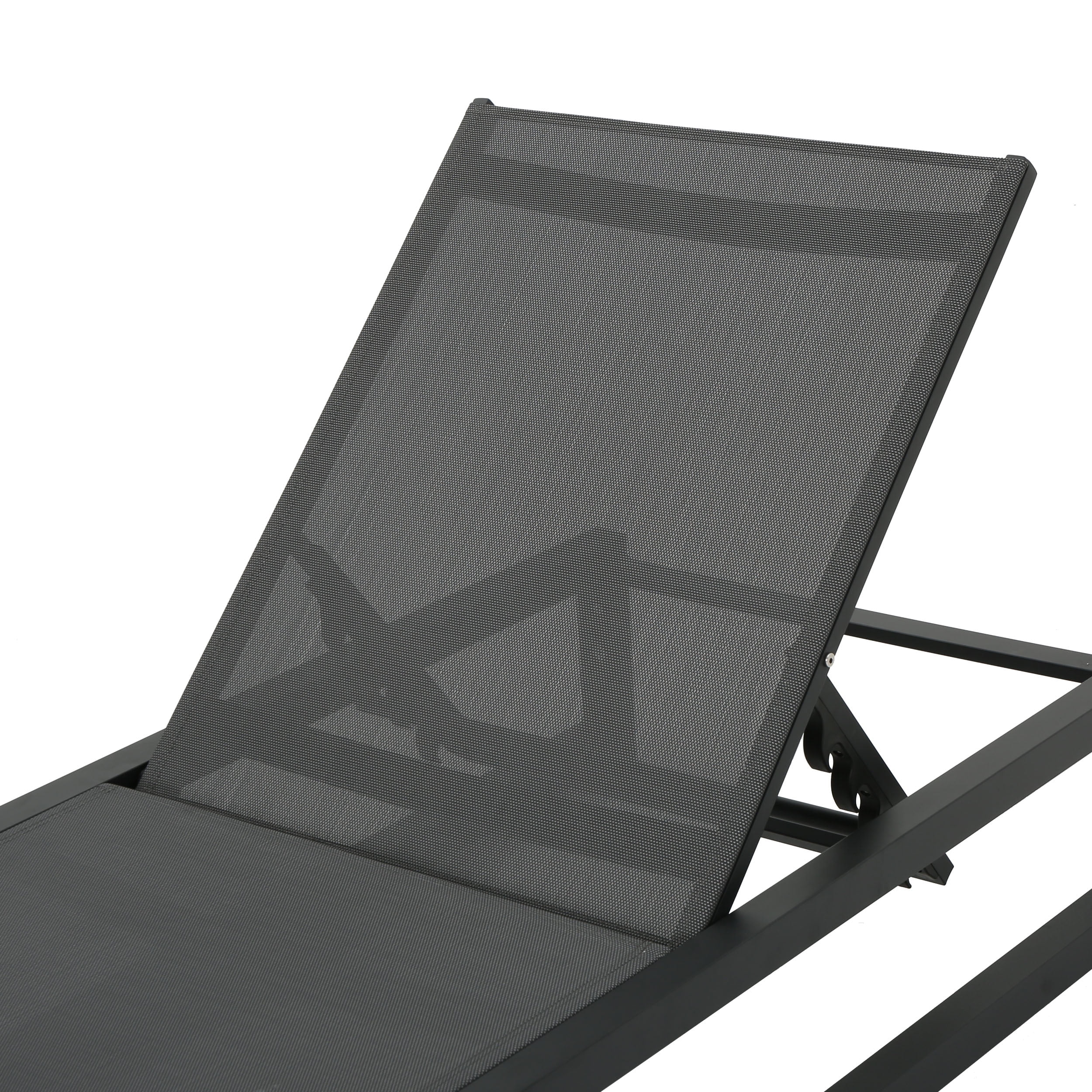 GDF Studio Mottetta Outdoor Mesh and Aluminum Armless Adjustable Chaise Lounges, Set of 2, Black and Dark Gray