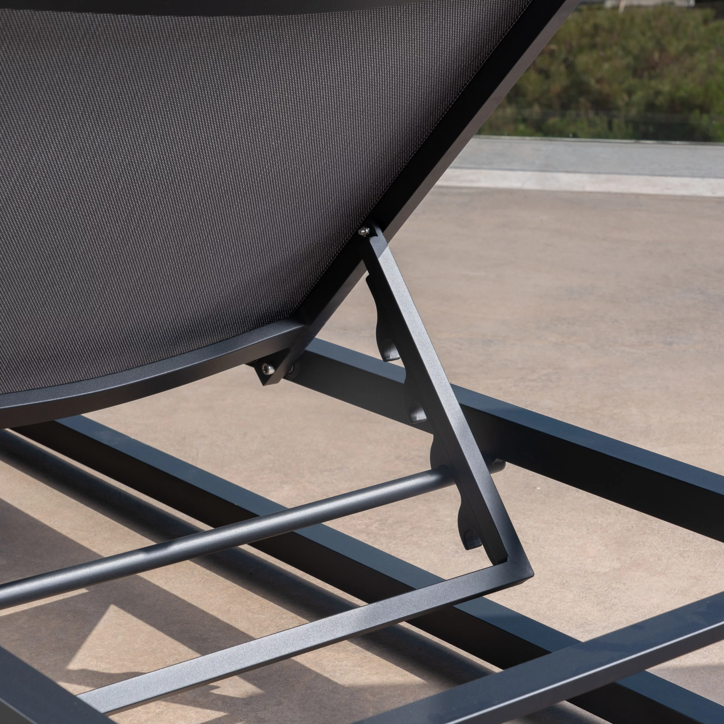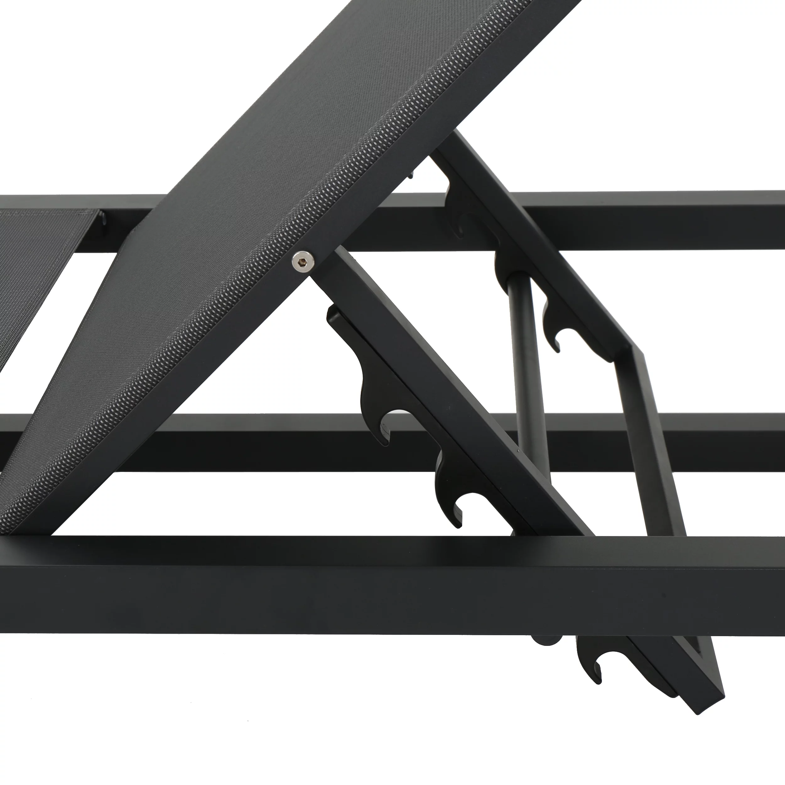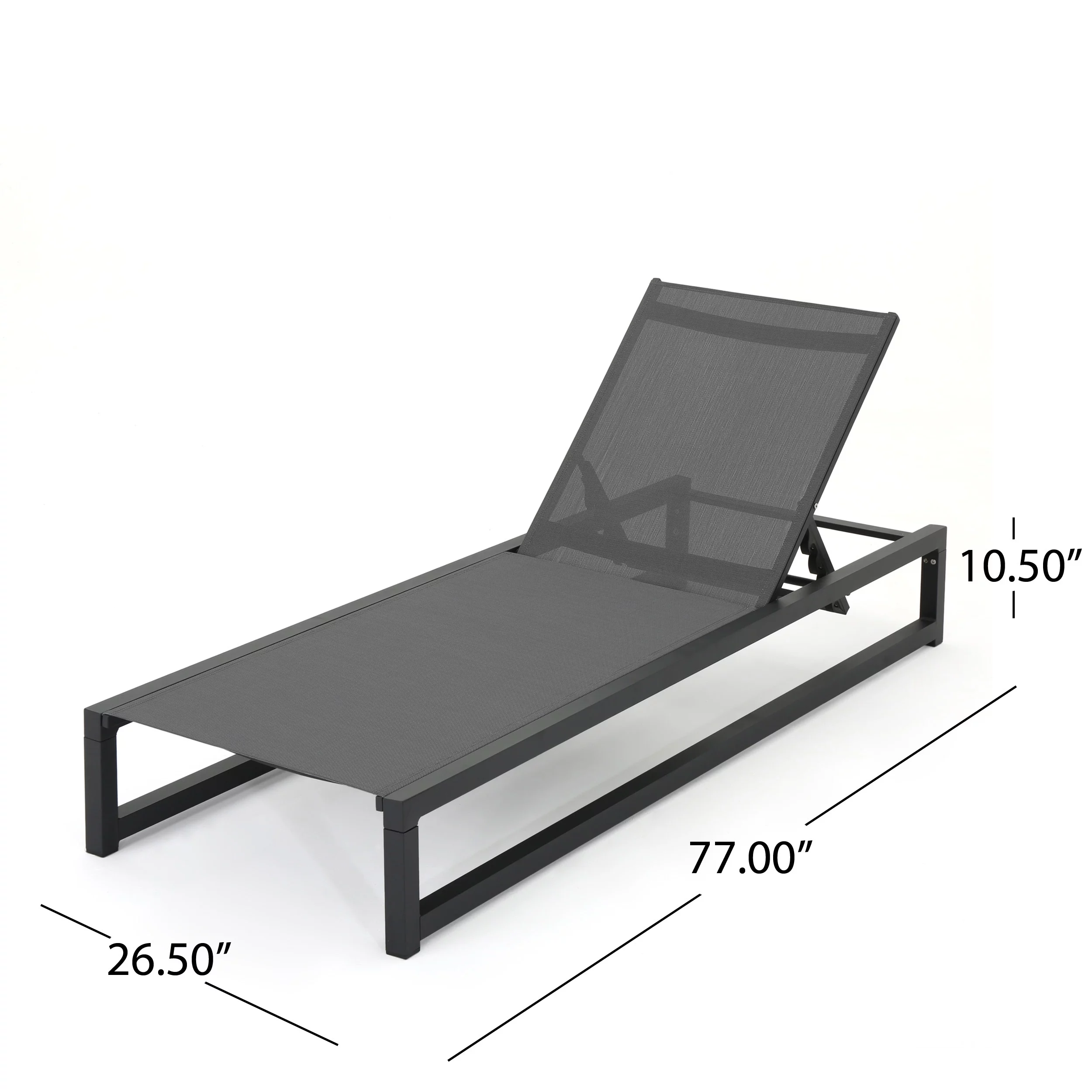 GDF Studio Mottetta Outdoor Mesh and Aluminum Armless Adjustable Chaise Lounges, Set of 2, Black and Dark Gray