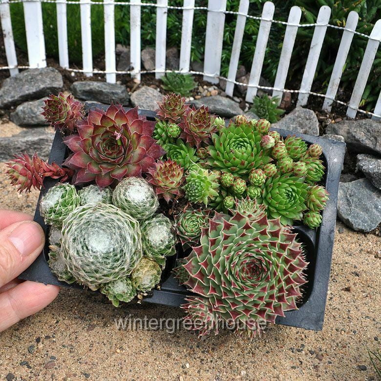 Hen And Chicks Collection, Sempervivum, Hen And Chicks - Pot Size: 4x 2.63x1.72x2.75" - Alpine Plants, Hen & Chicks