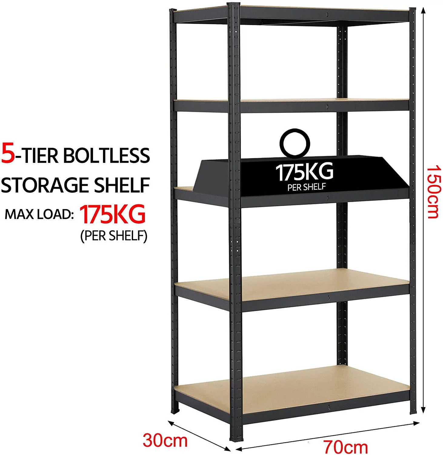 Bowoshen Black 5 Tier Shelving Rack,28"W x 12"D x 59"H Boltless Shelves for Garage Home Storage Shed Warehouse