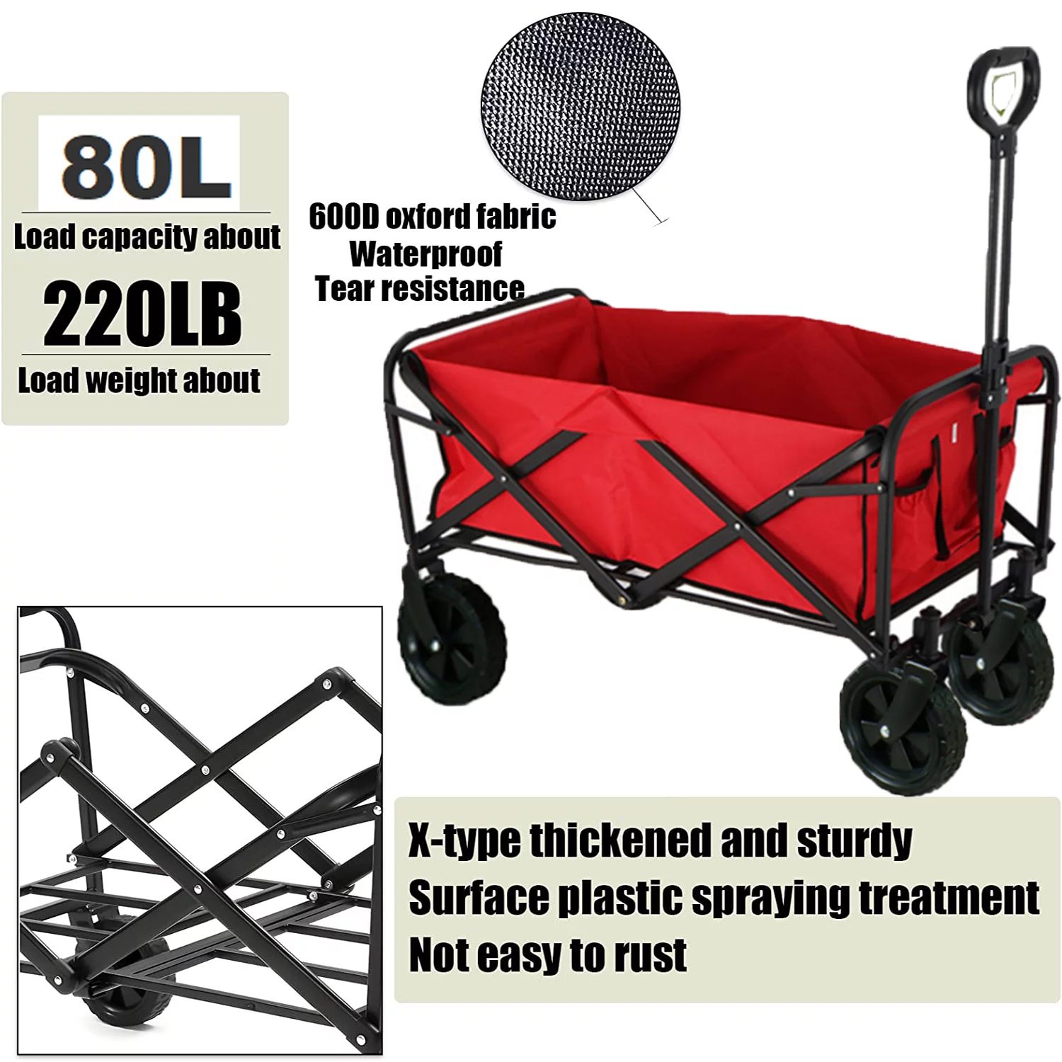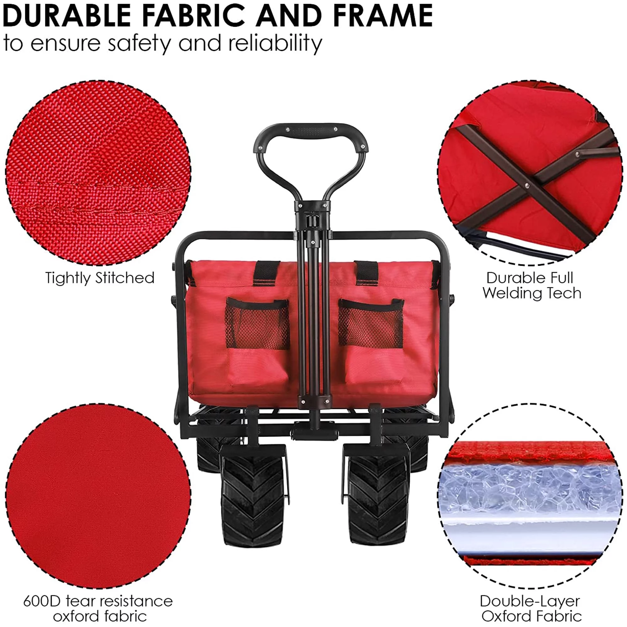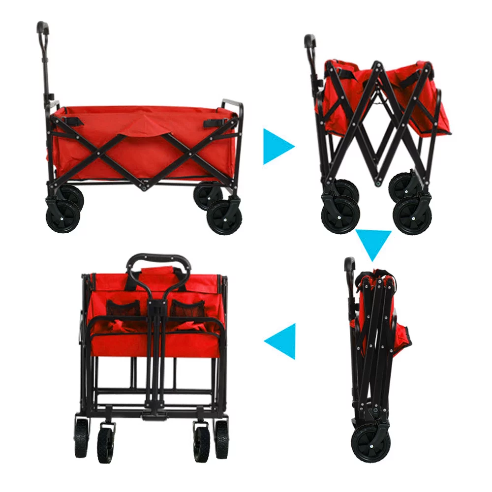 VEVOR Wagon Cart Folding Wagon Cart with 176lbs Load Outdoor Utility Wagon w/Adjustable Handle Red