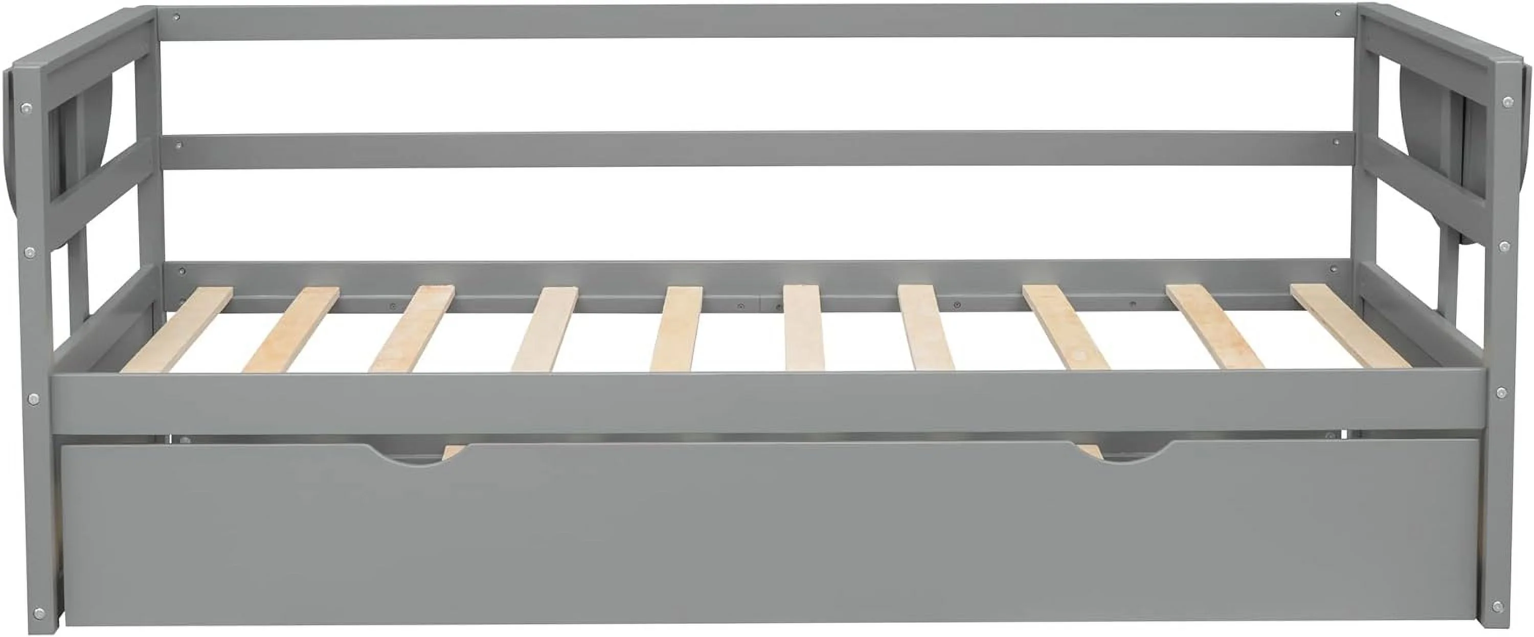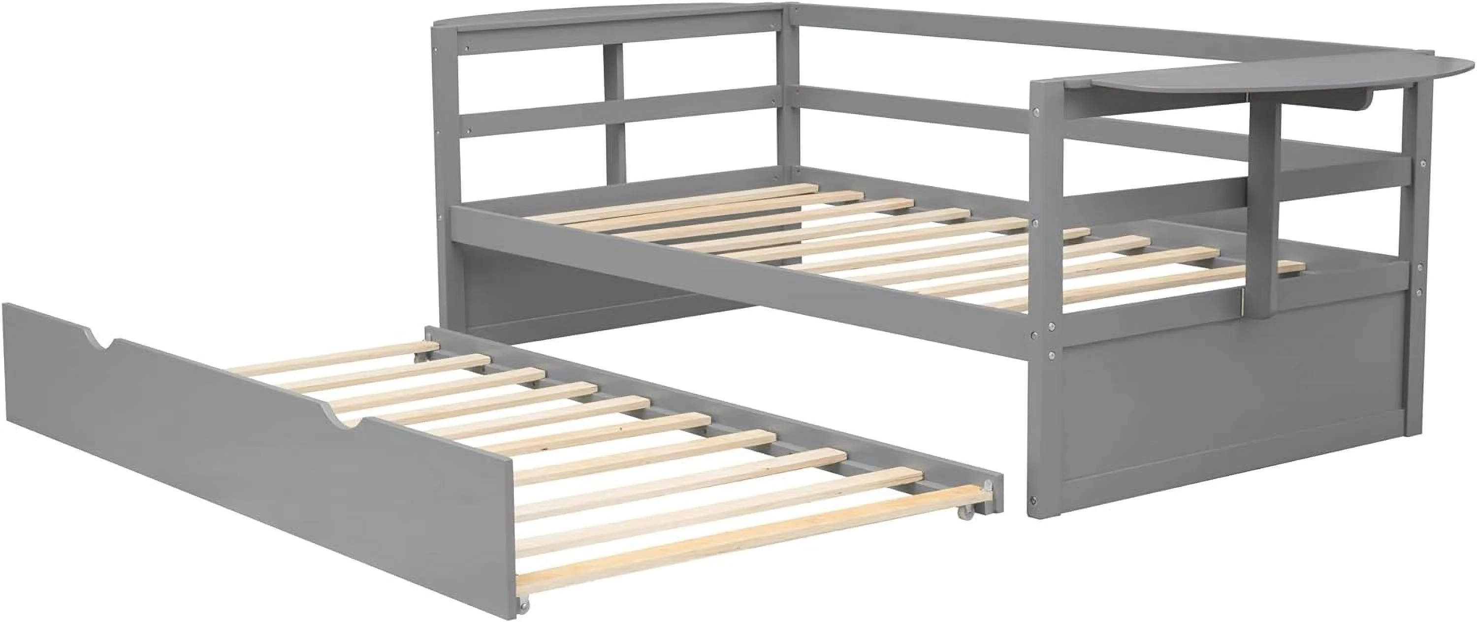Size Daybed With Slidig Trudle Ad Foldable Shelves O Both Sides, Daybed Frame With Woode Slats, o Sprig eeded, (Gray)