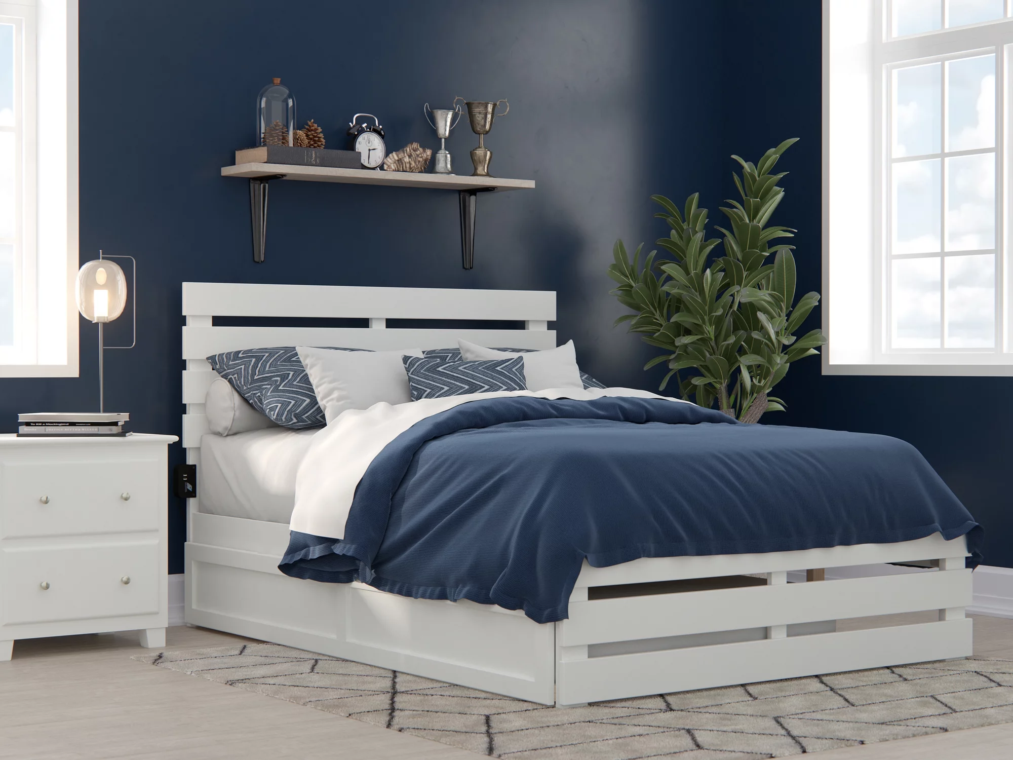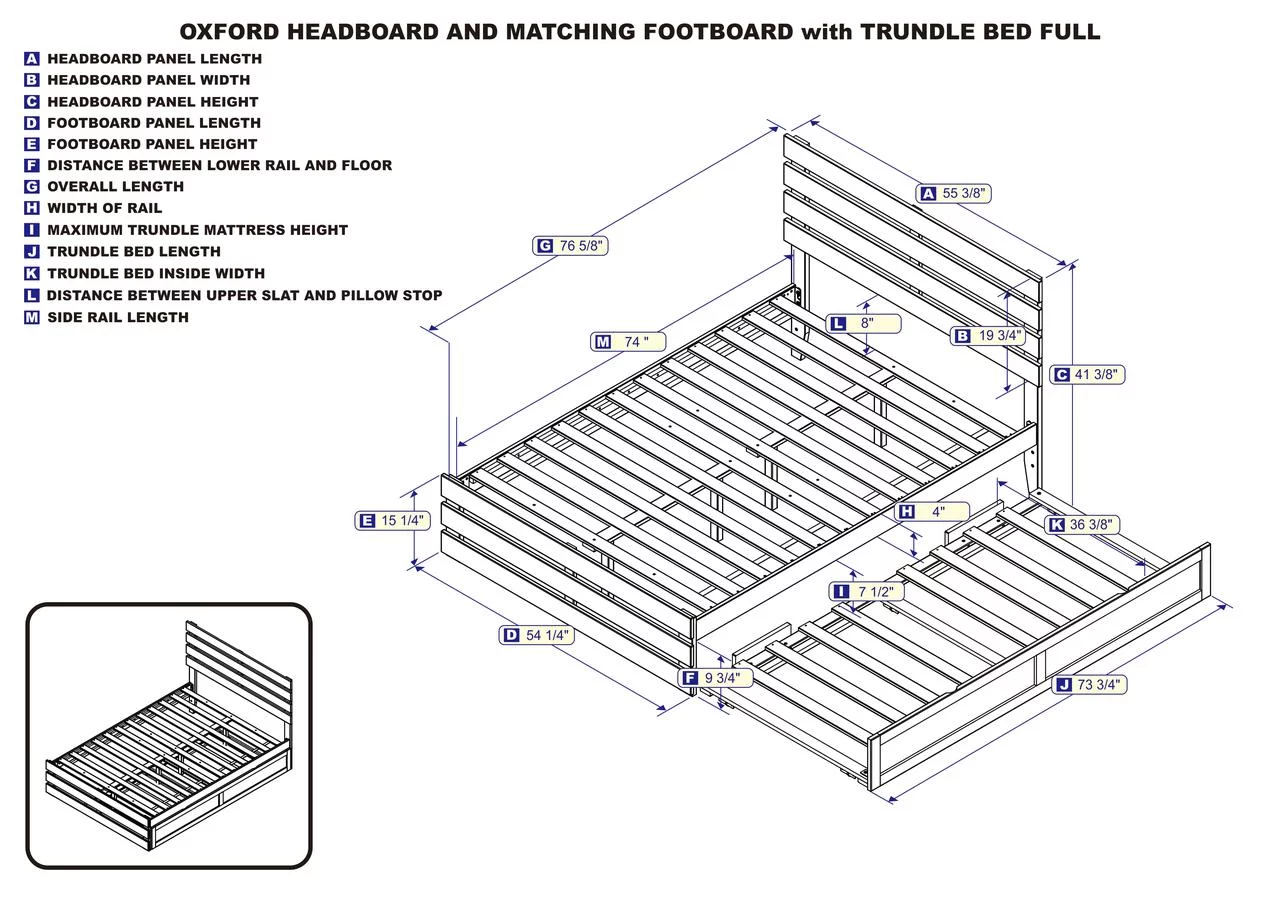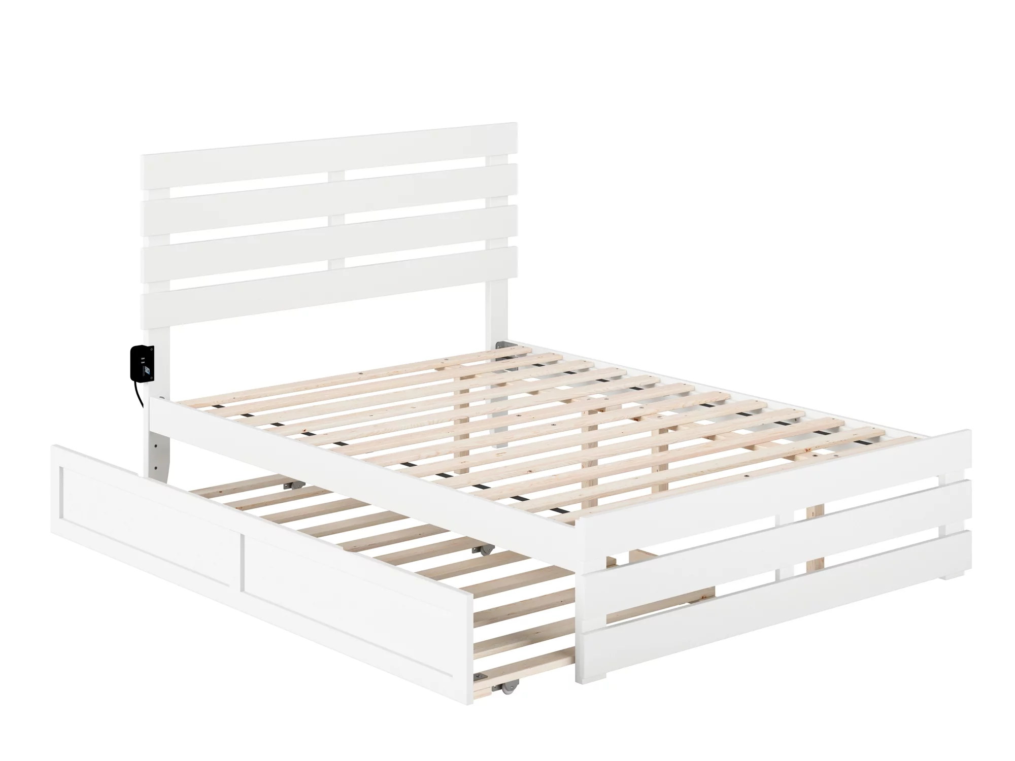 Oxford Full Bed with Footboard and USB Turbo Charger with Twin Trundle in White