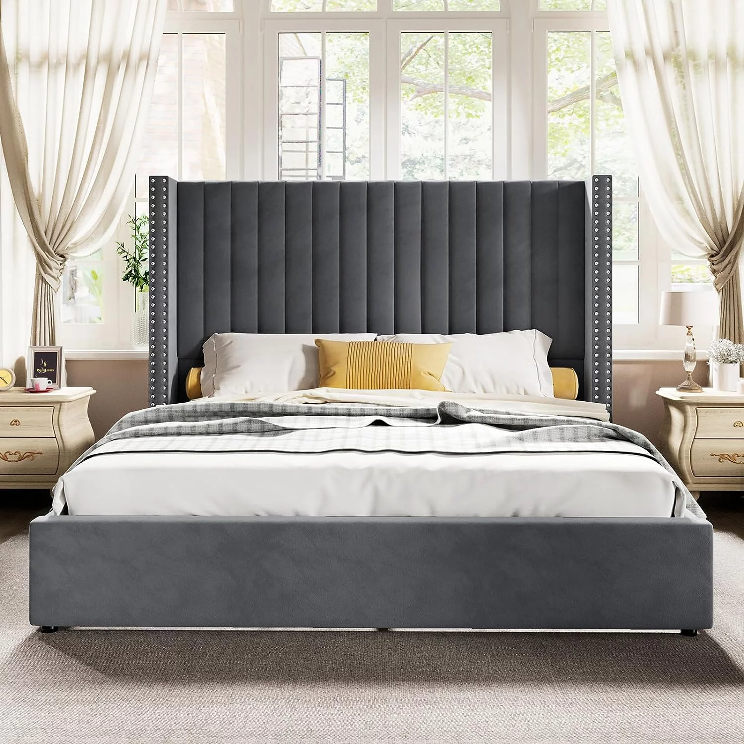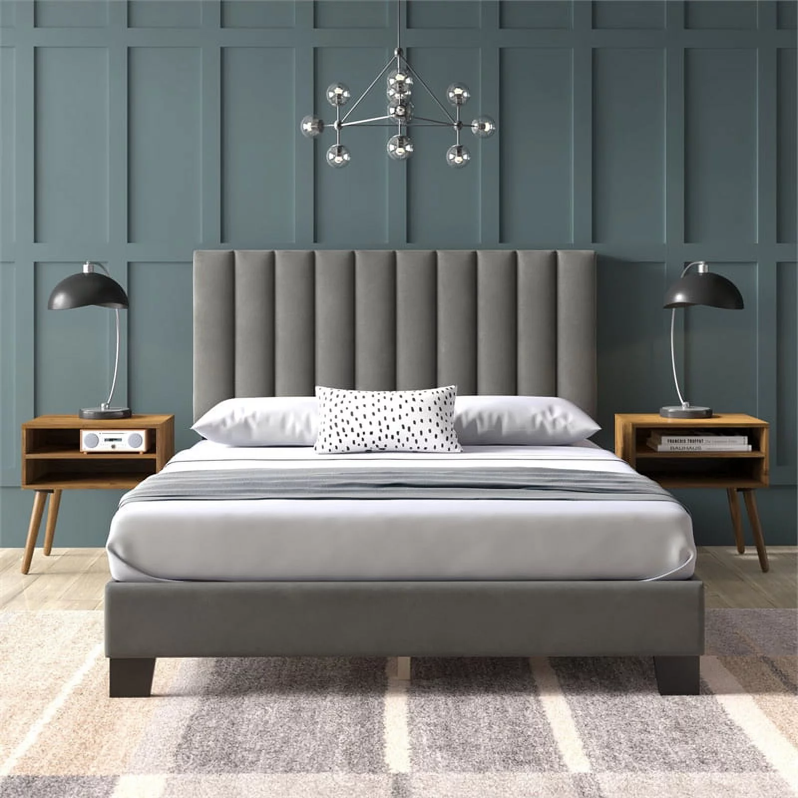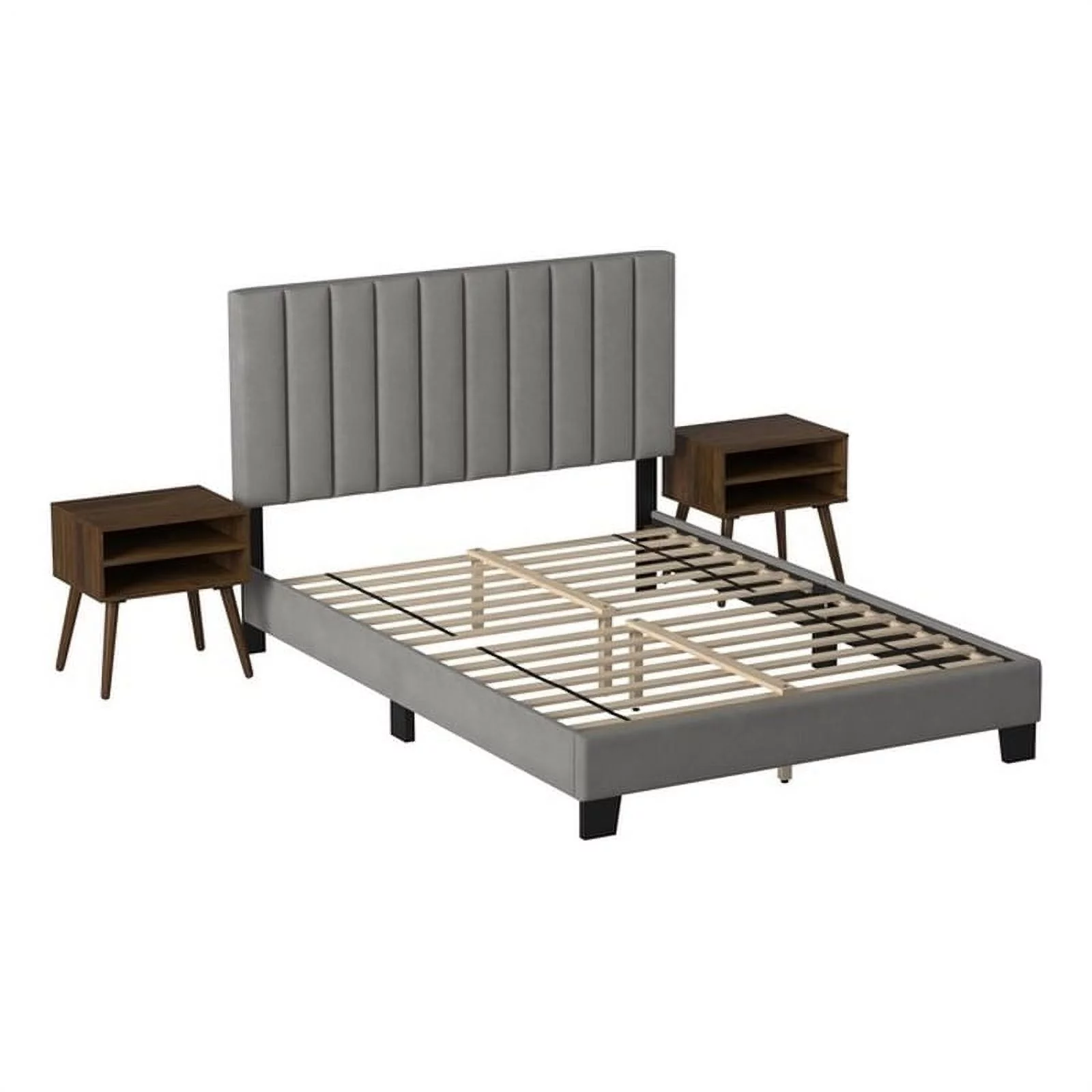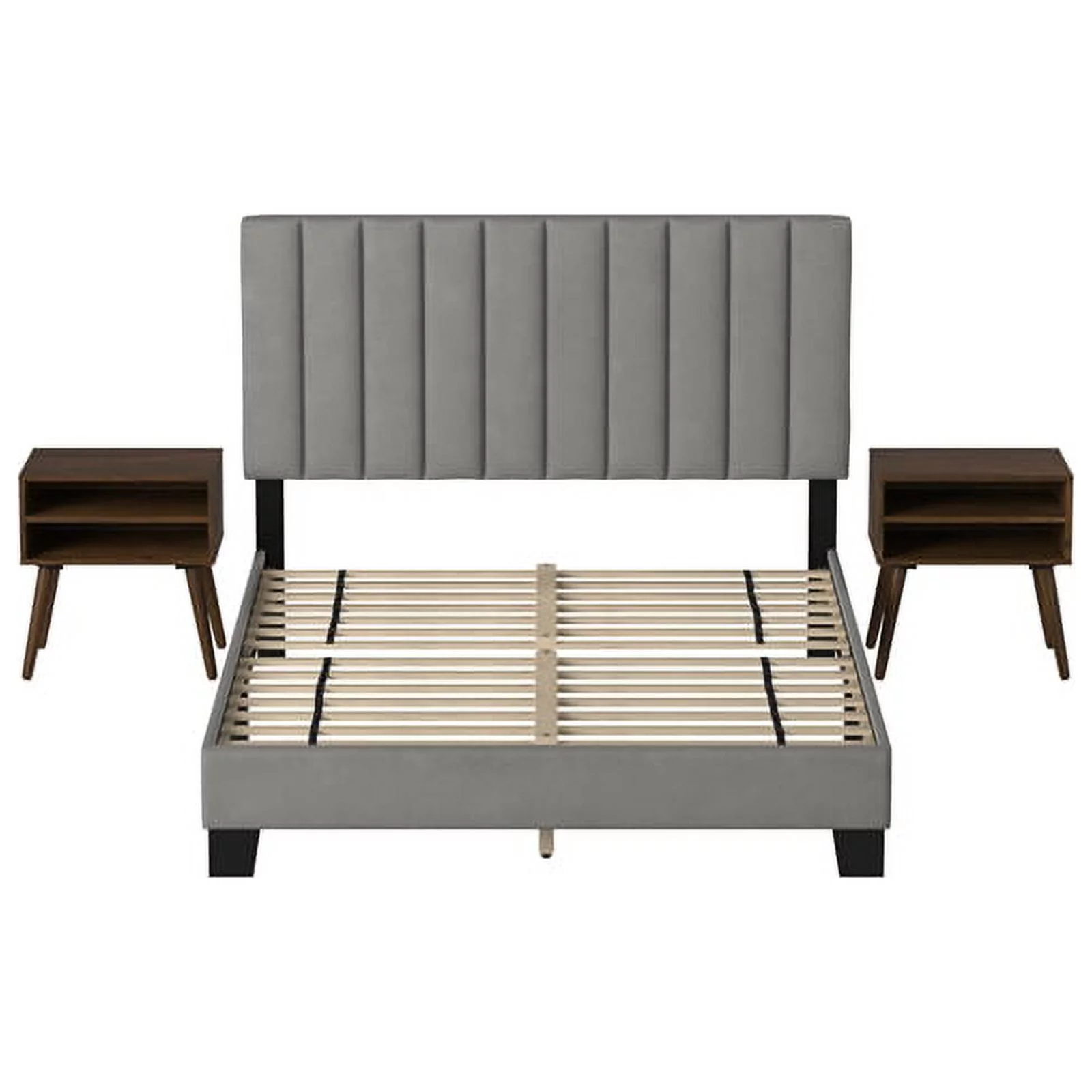 Pemberly Row Traditional Upholstered Queen Platform Bed With Nightstand