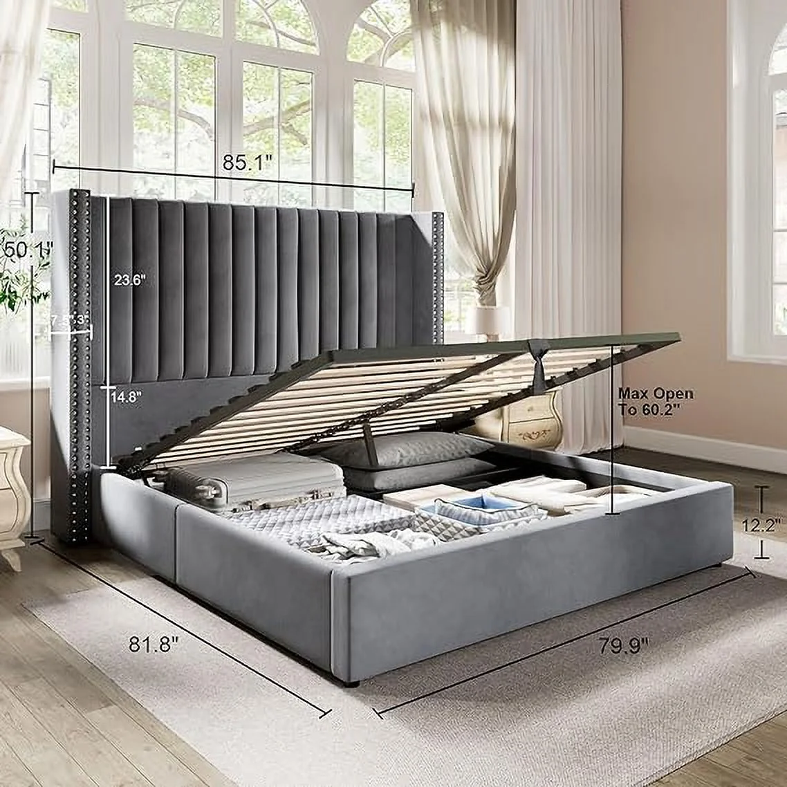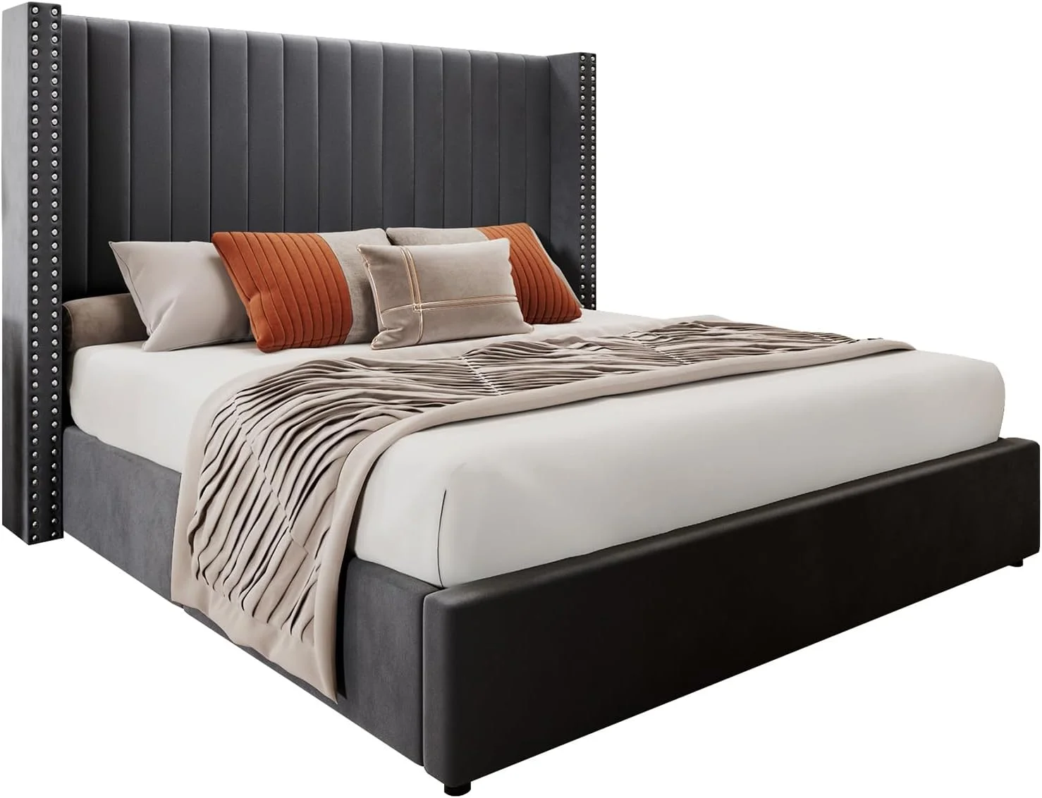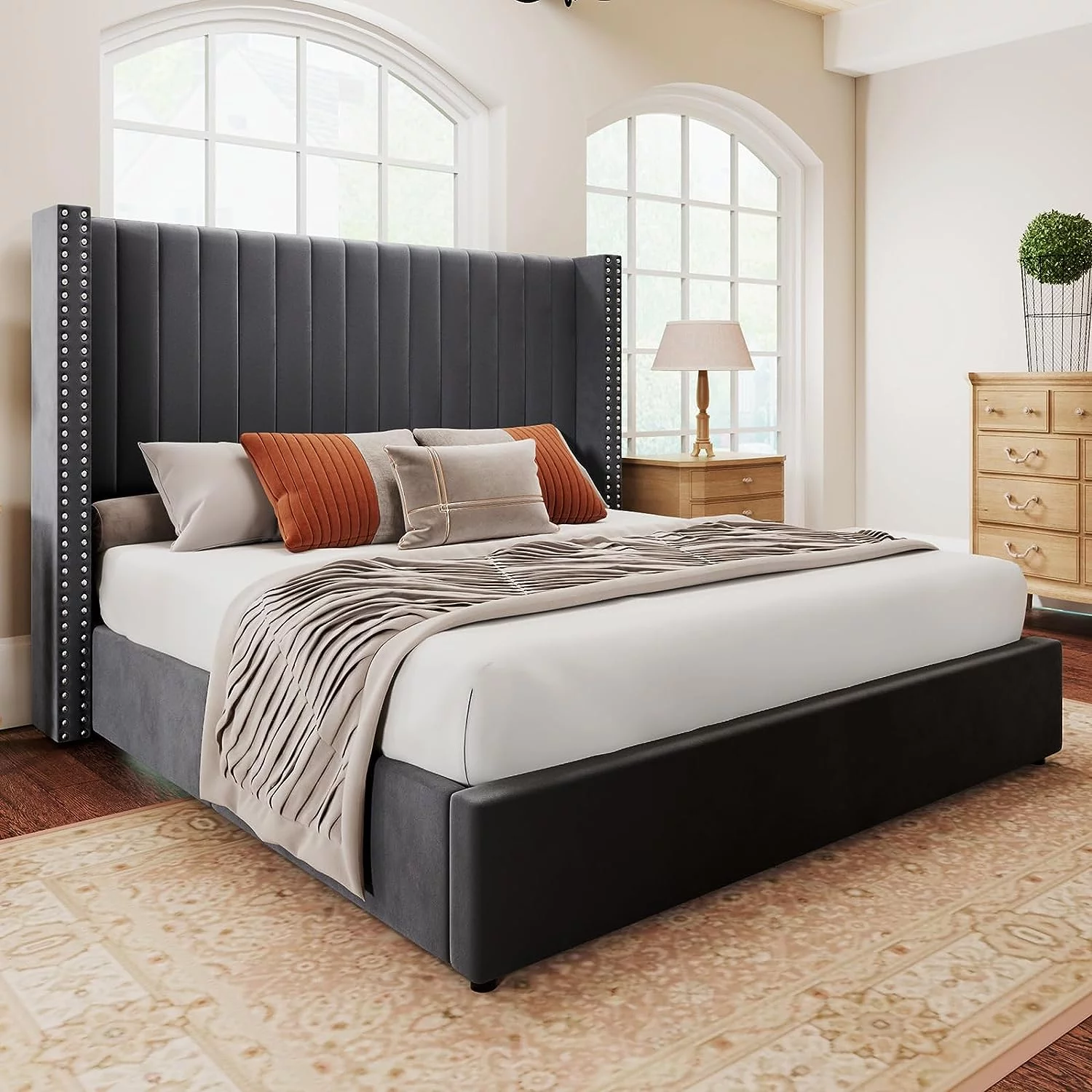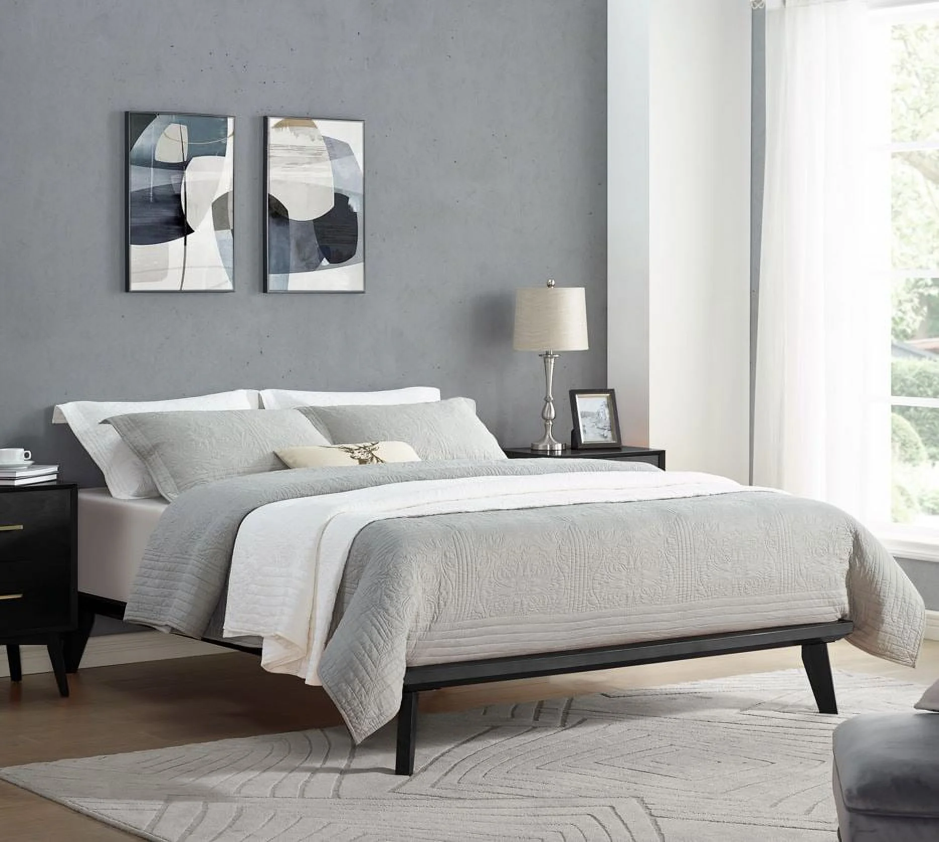 Pemberly Row Traditional Upholstered Queen Platform Bed With Nightstand