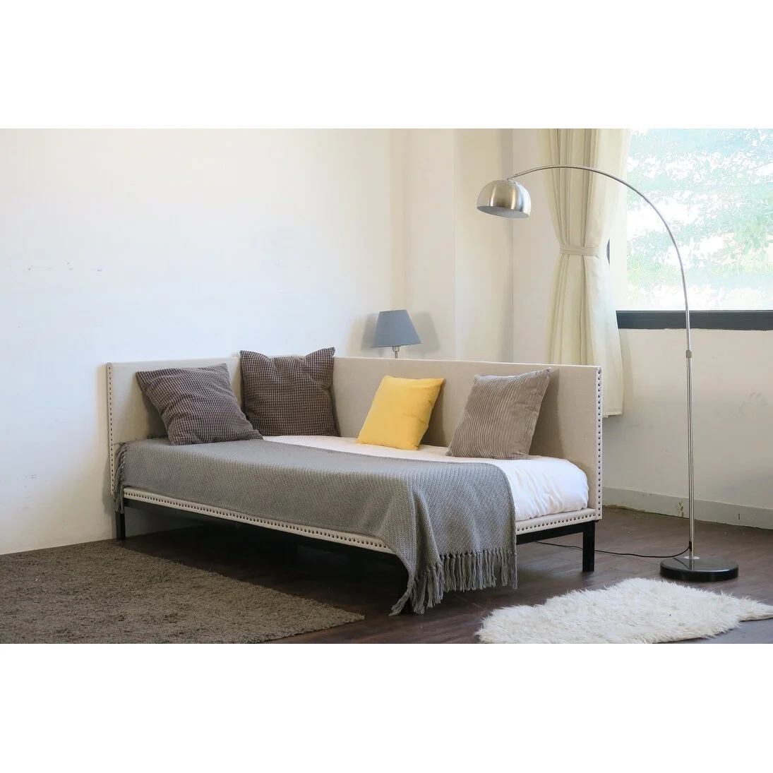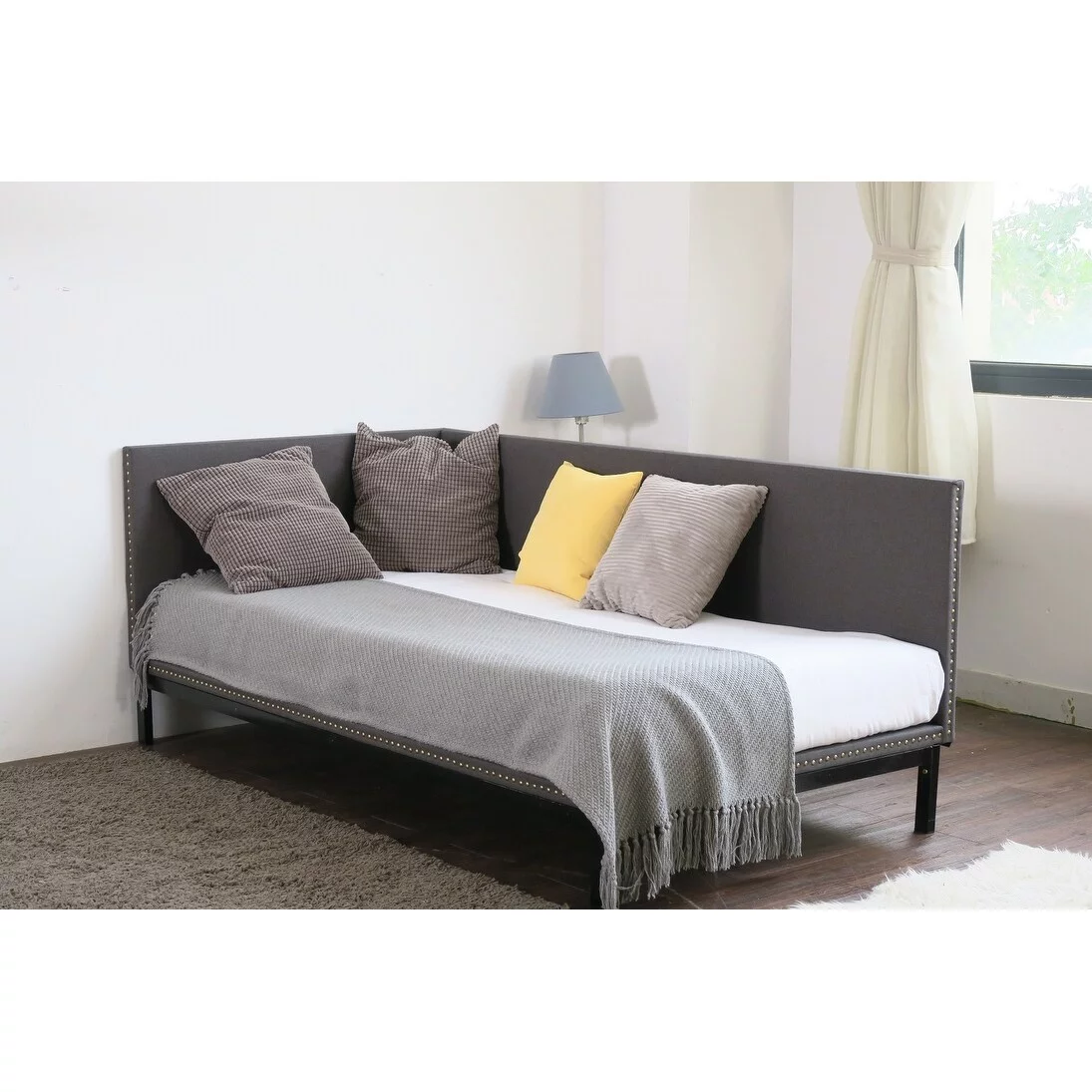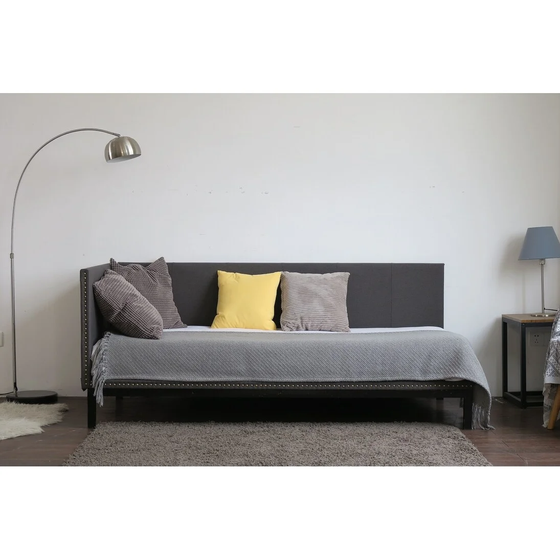 DG Casa Povel Upholstered Nailhead Trim Twin Platform Daybed Charcoal