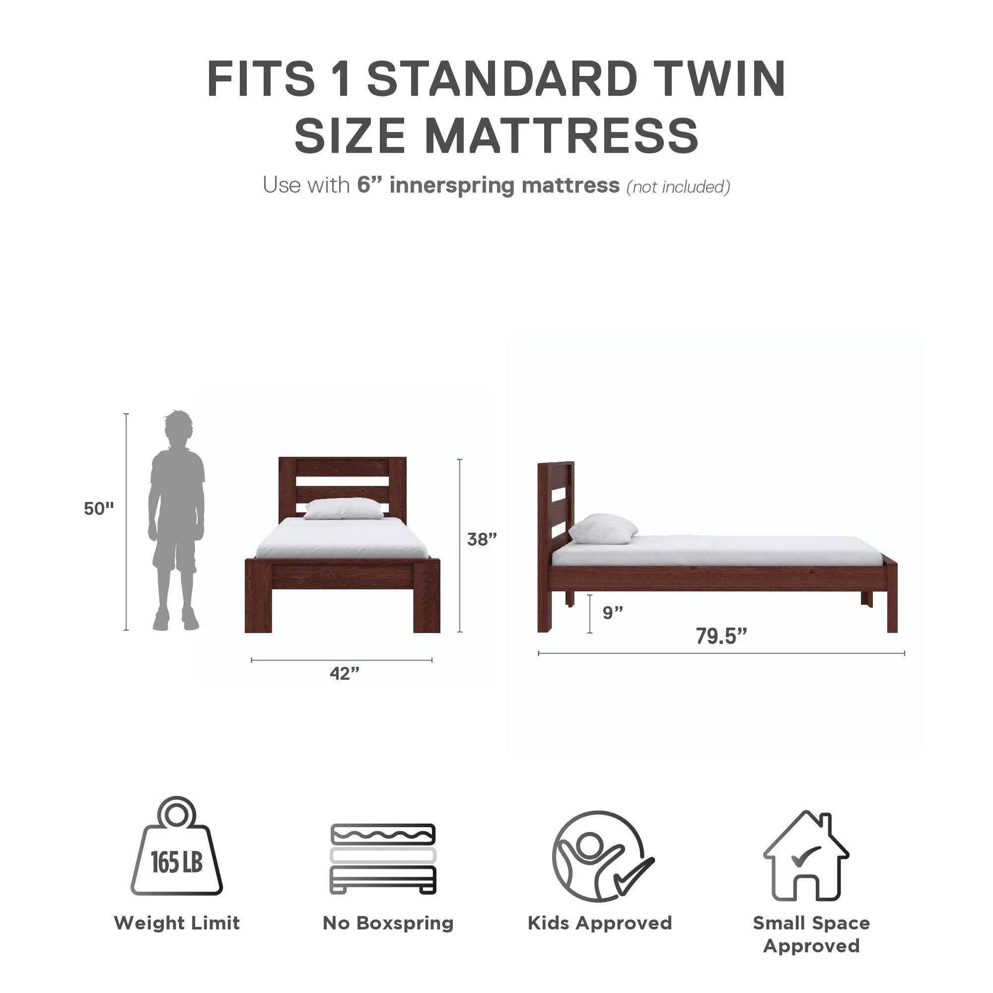 Full Size Daybed Wood Daybed Frame Wih rudle, For Kids ees Guess. o Box Sprig eeded, Bedroom Livig Room Furiure (Espresso)