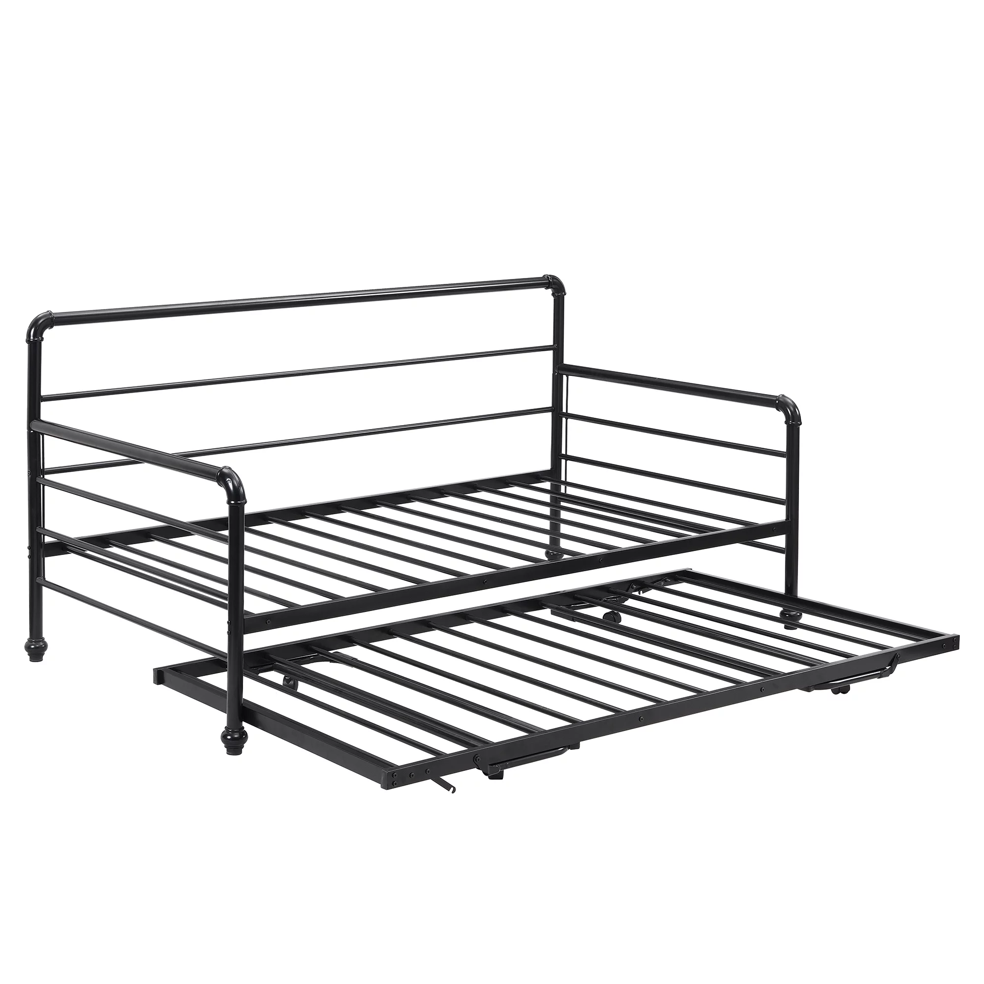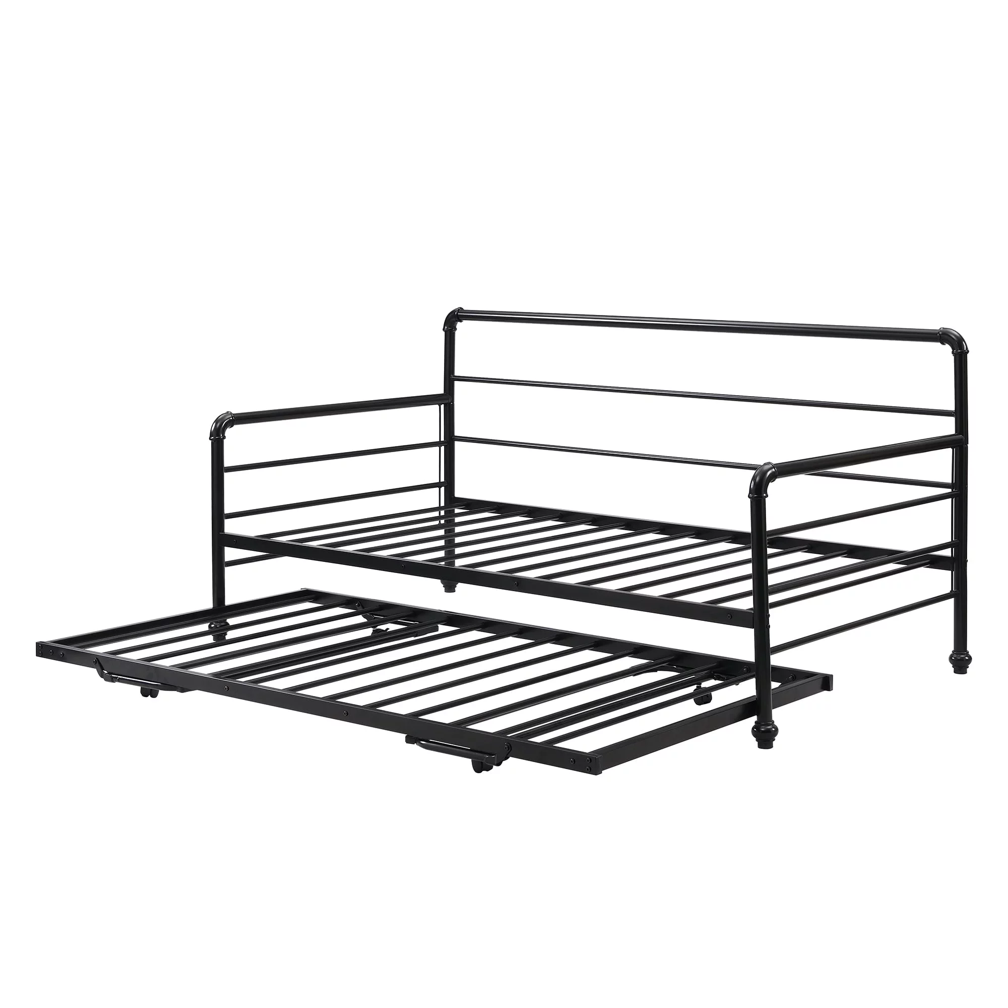 Maykoosh African Adventure Pop Up Trundle Bed, Rolling Wheels, Easily Adjustable Height, Black Finish