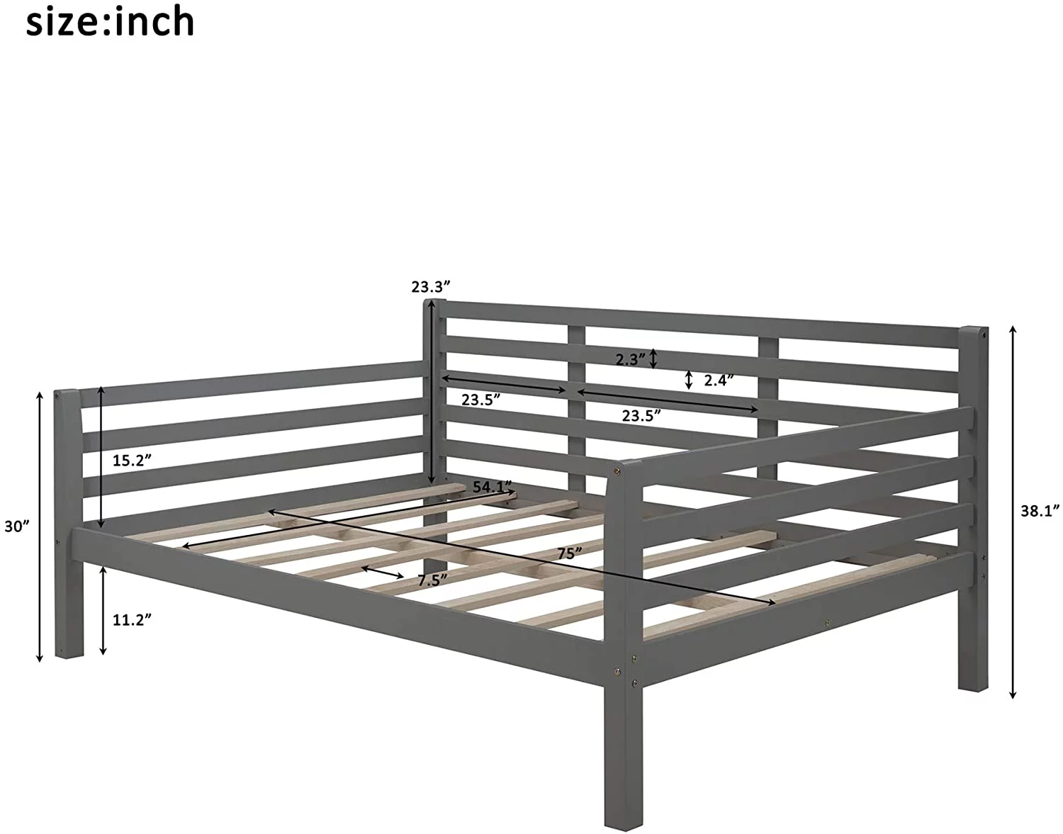 Full Size Daybed With Clean Lines,Wooden Daybed Frame (Full Size,Gray)