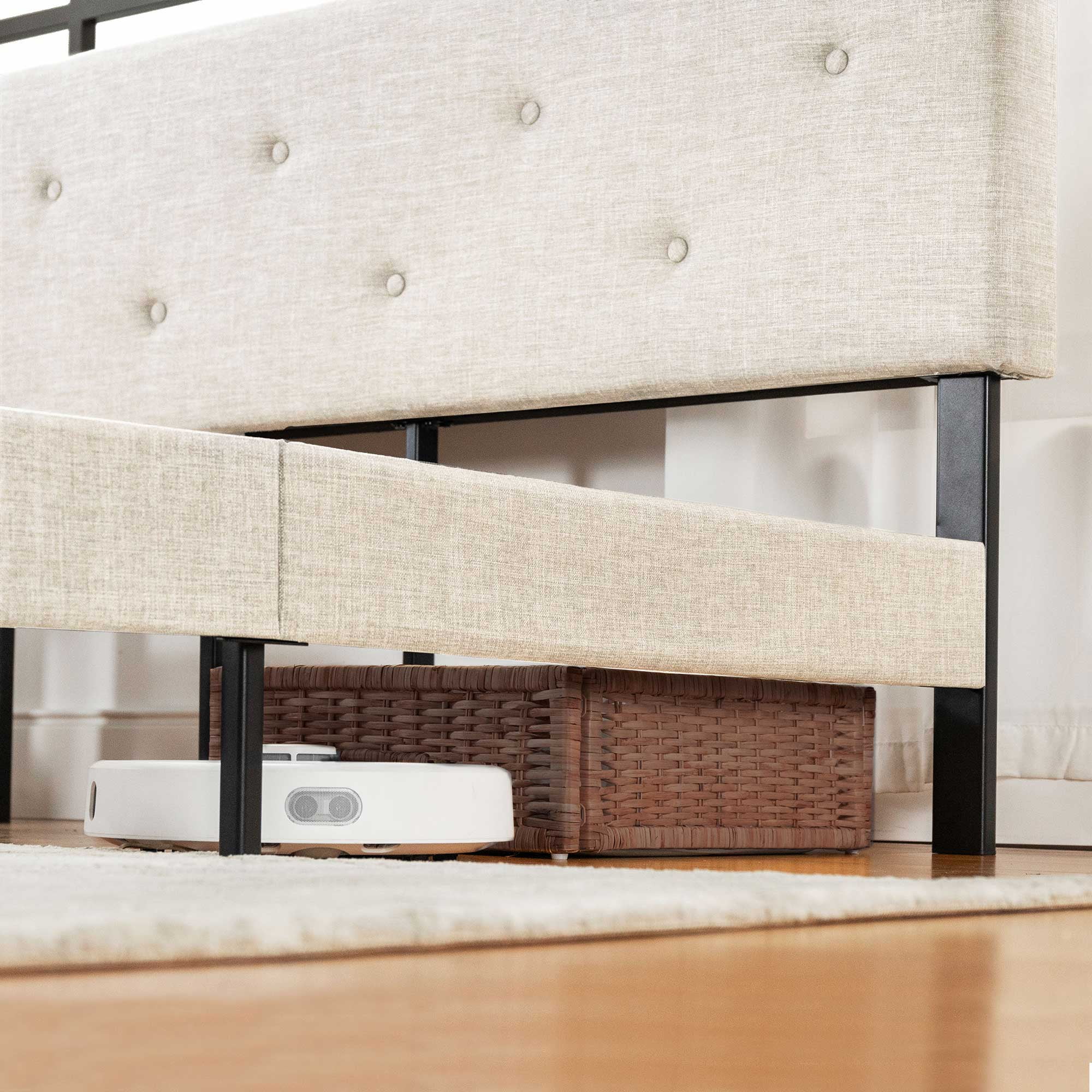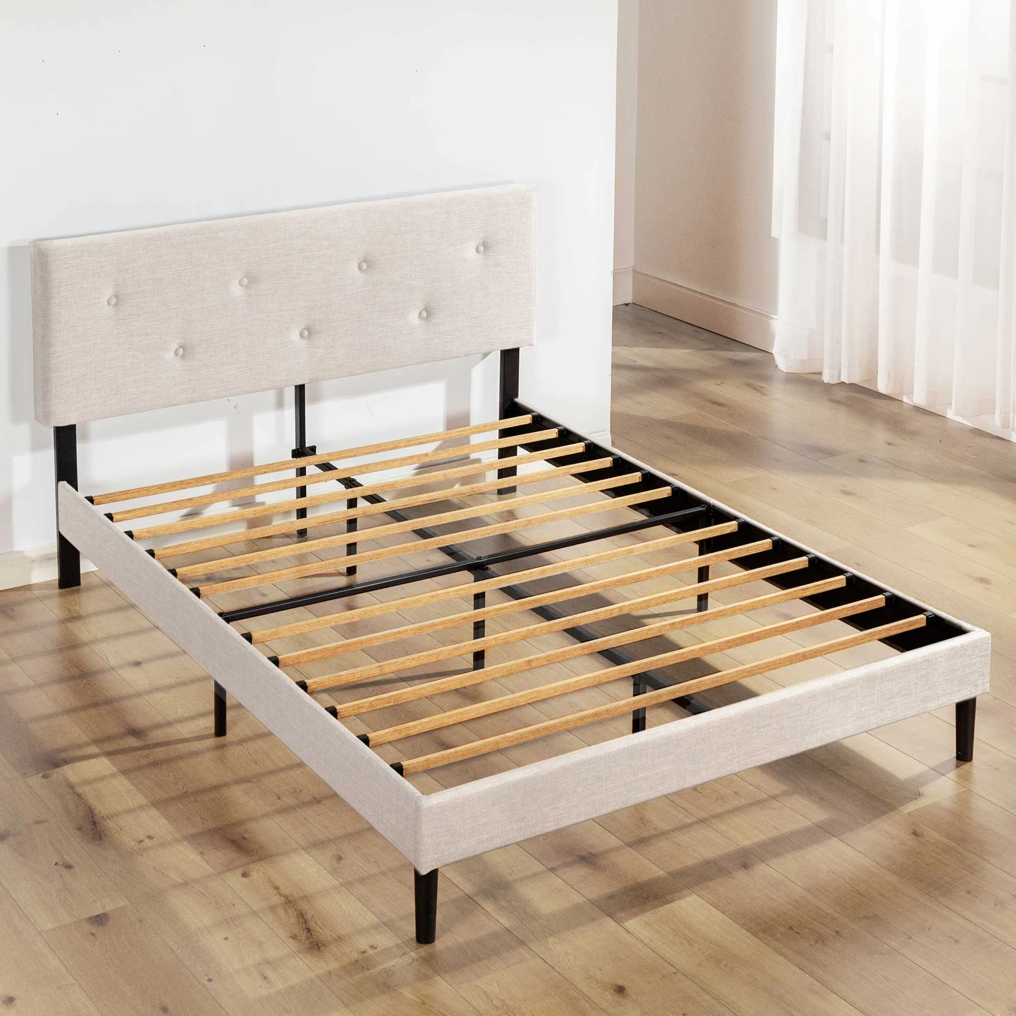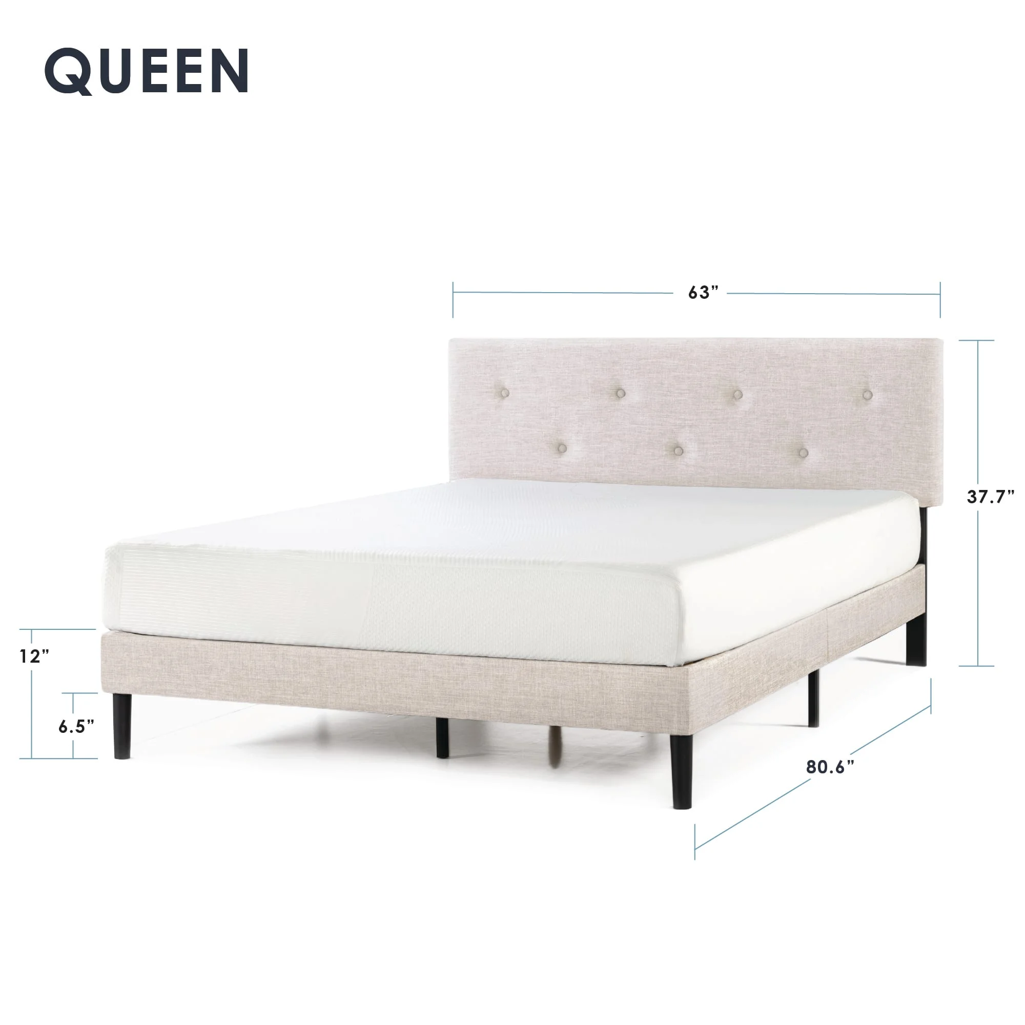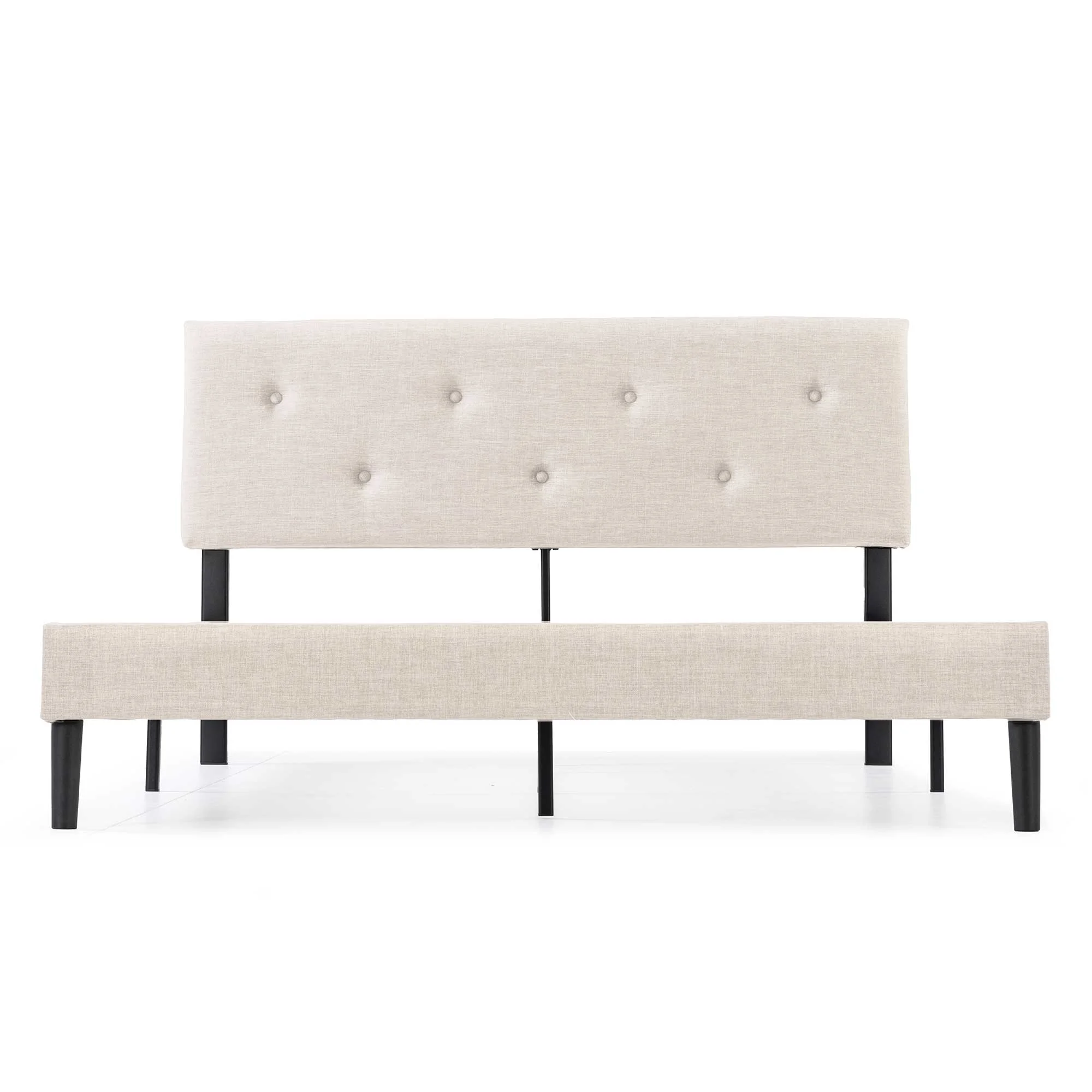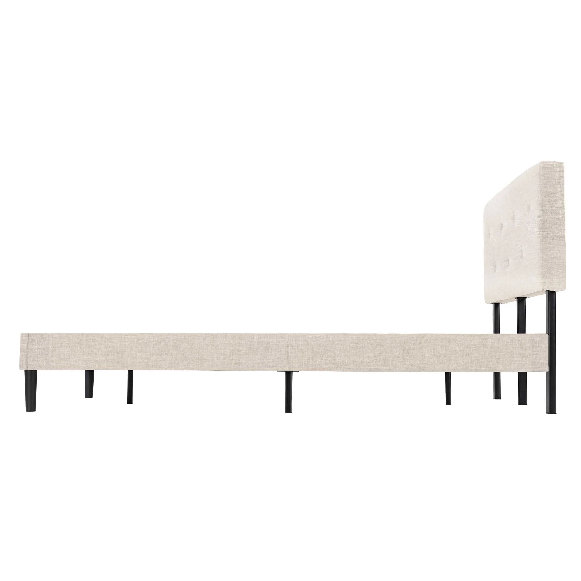 Mellow Alva Upholstered Platform Bed Frame with Headboard, Ivory, Queen