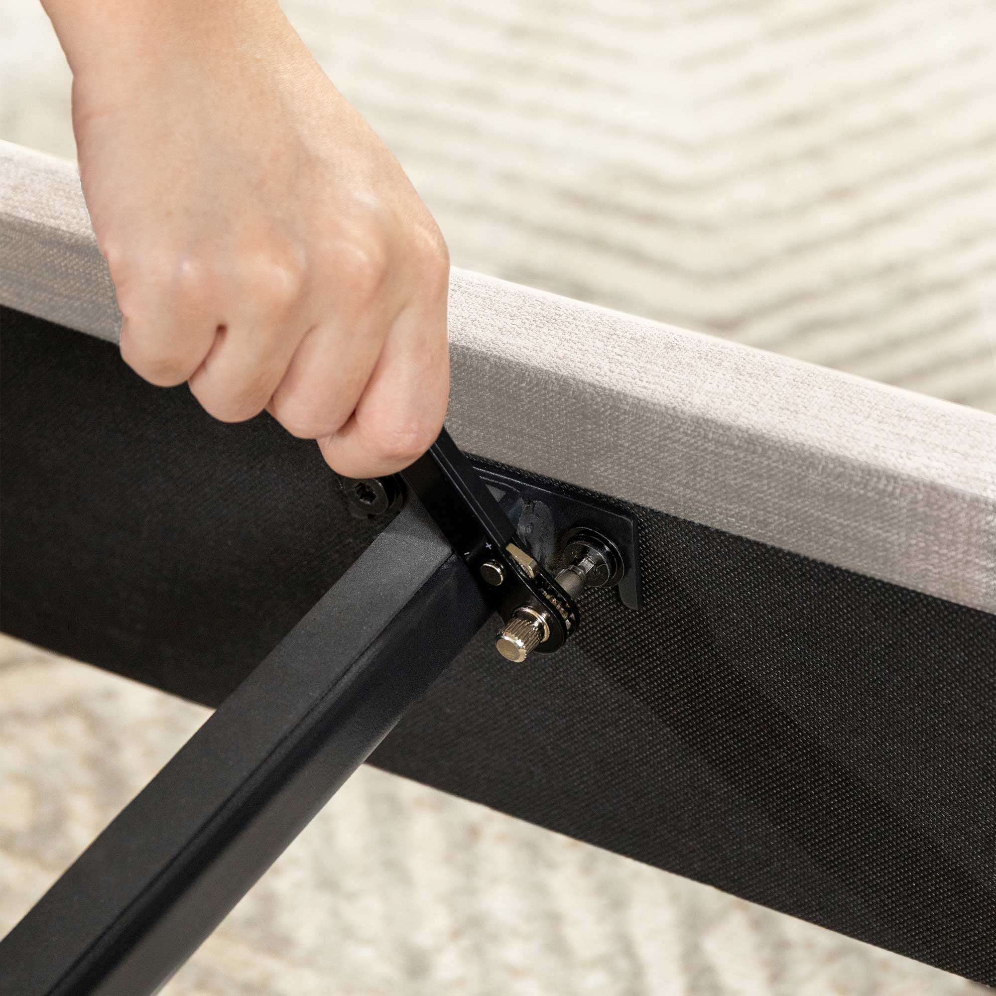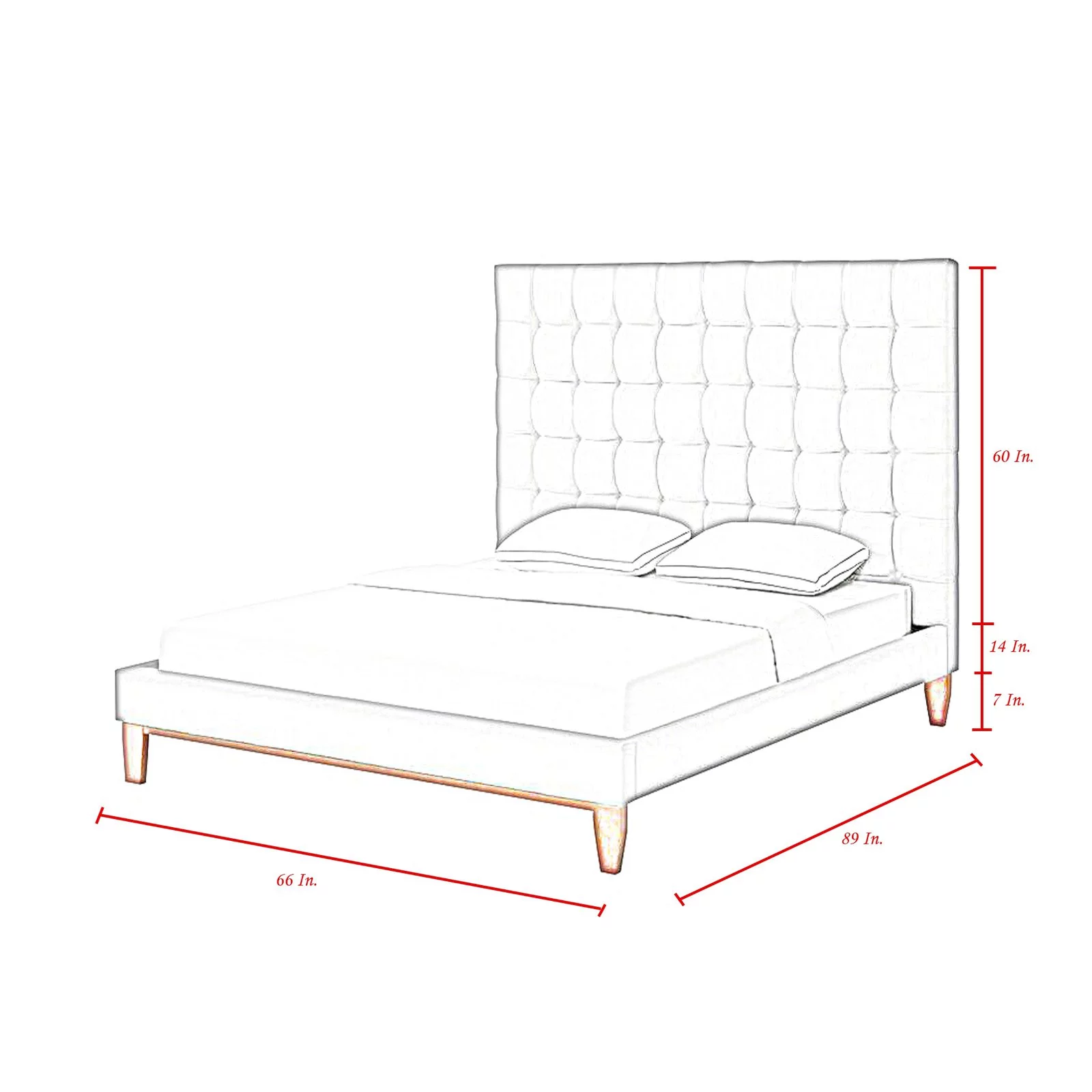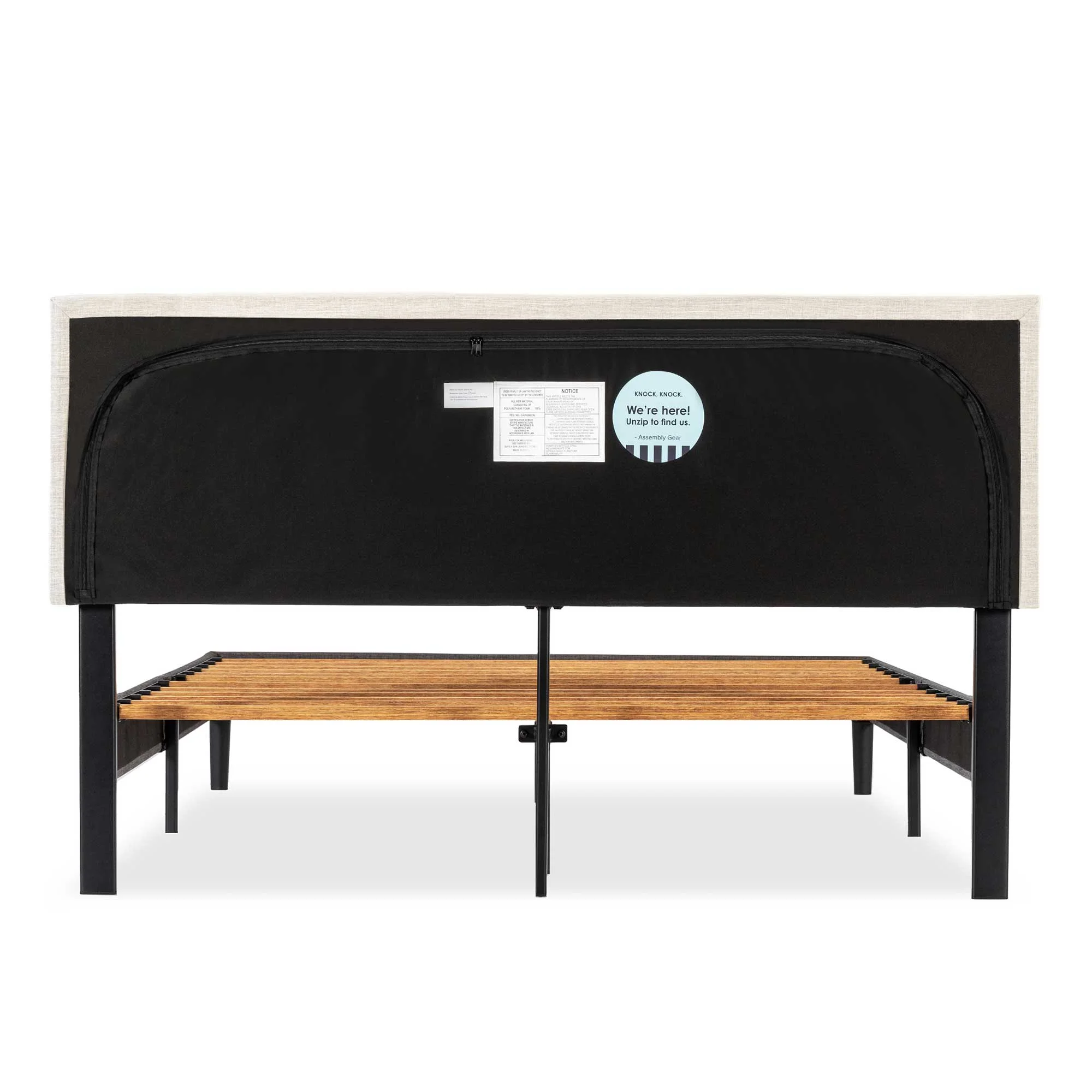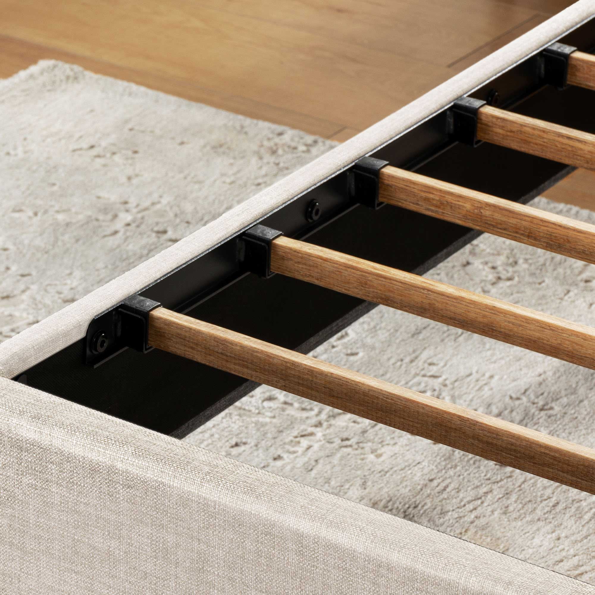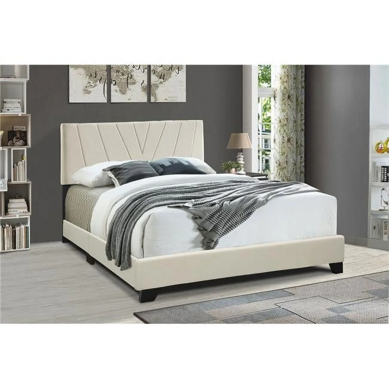 Mellow Alva Upholstered Platform Bed Frame with Headboard, Ivory, Queen