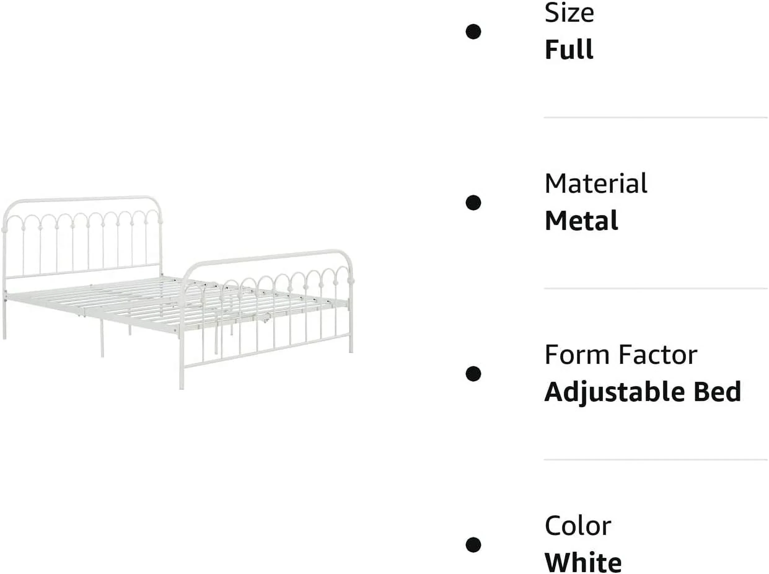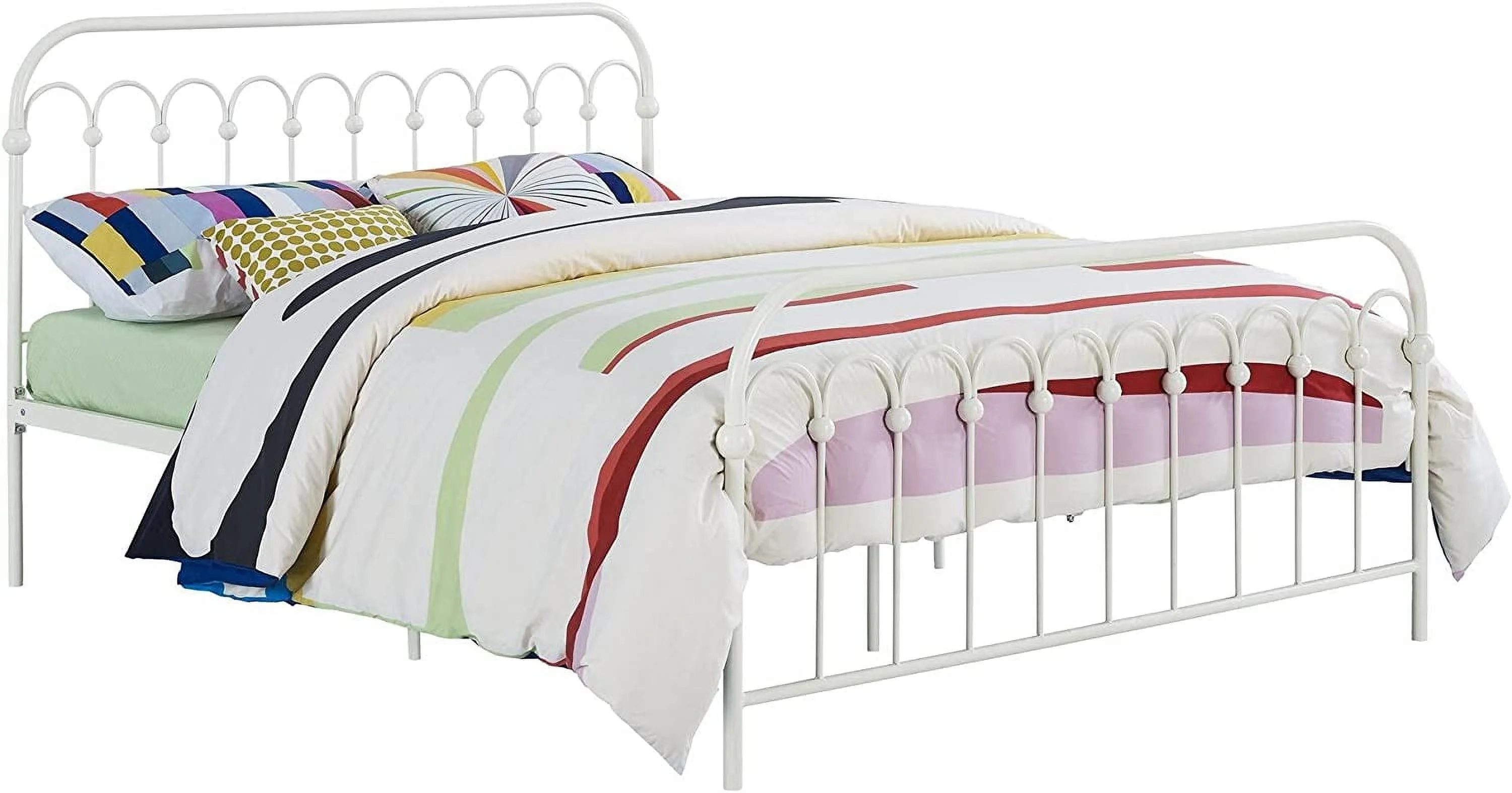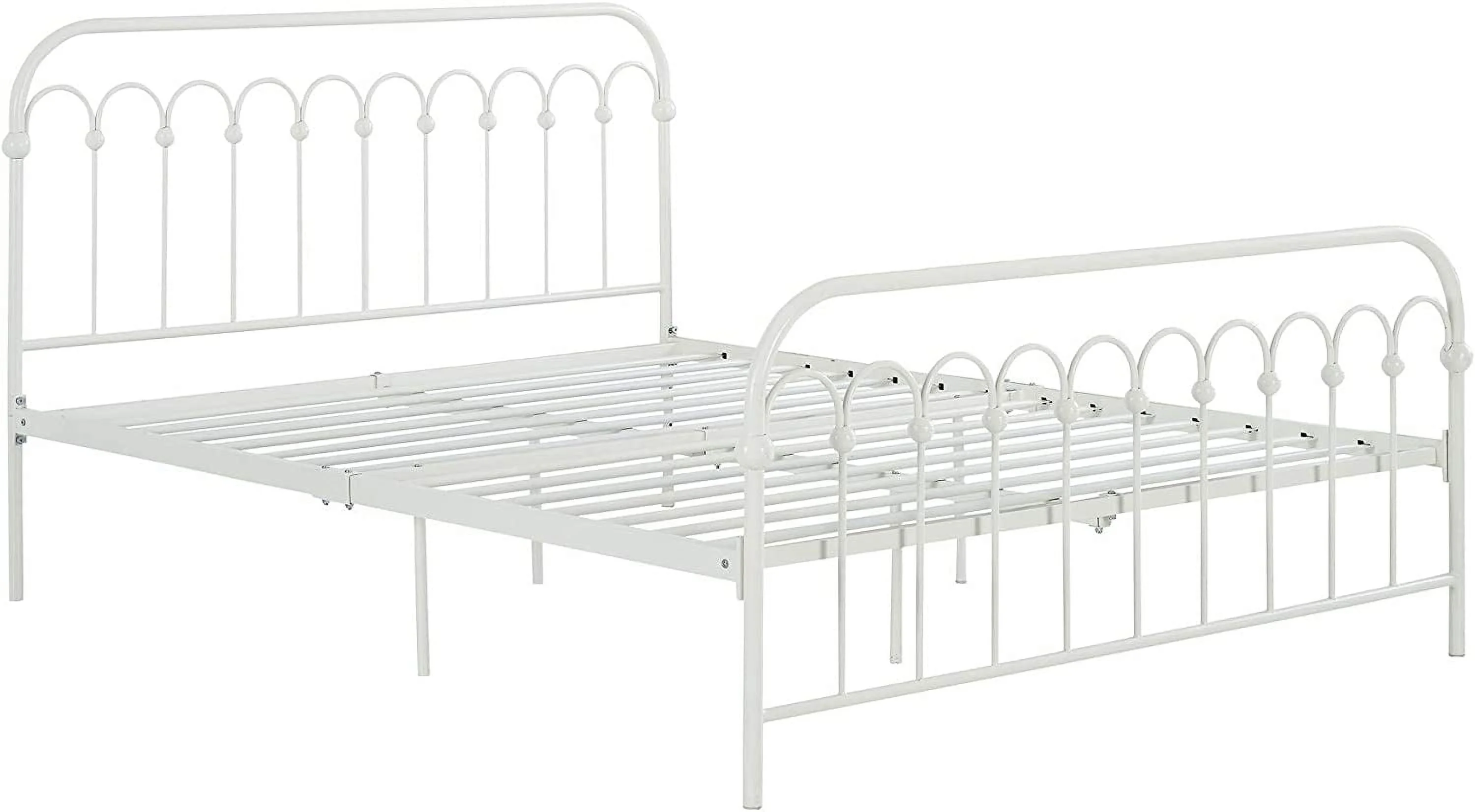 QCAI Bright Pop Metal Bed, Adjustable Height for Underbed Storage (6.5" or 11"), Metal Slats Included, Full, White