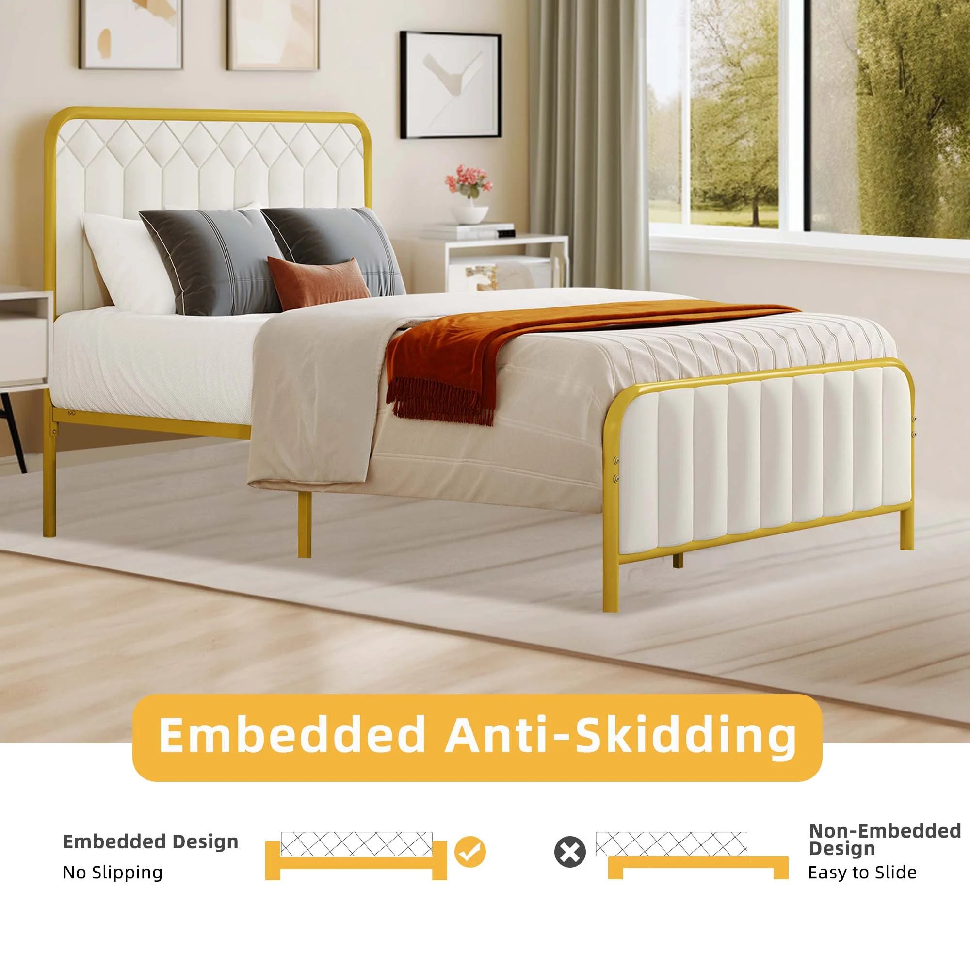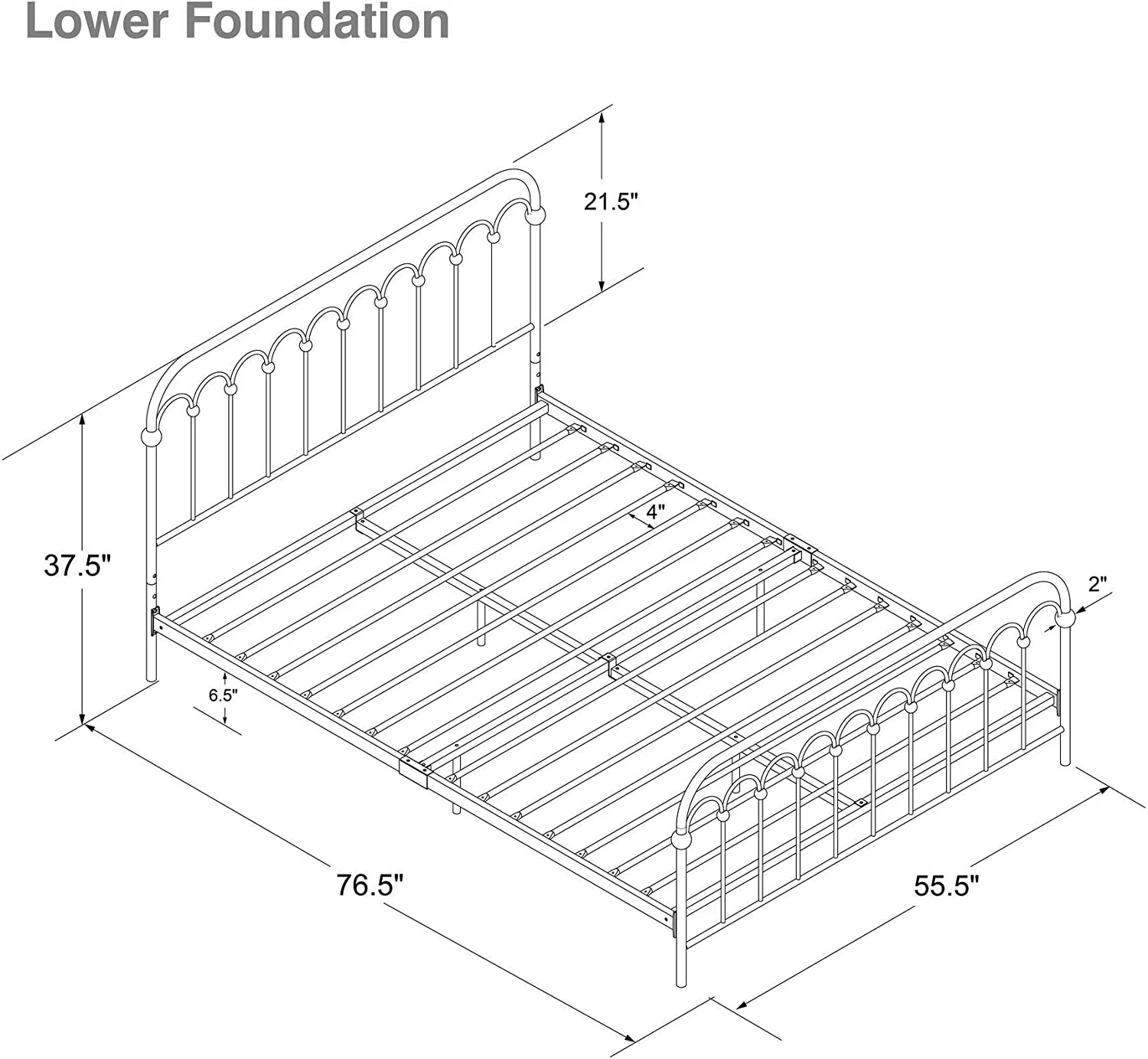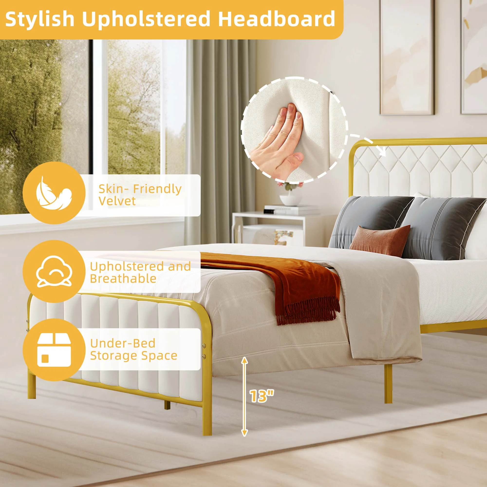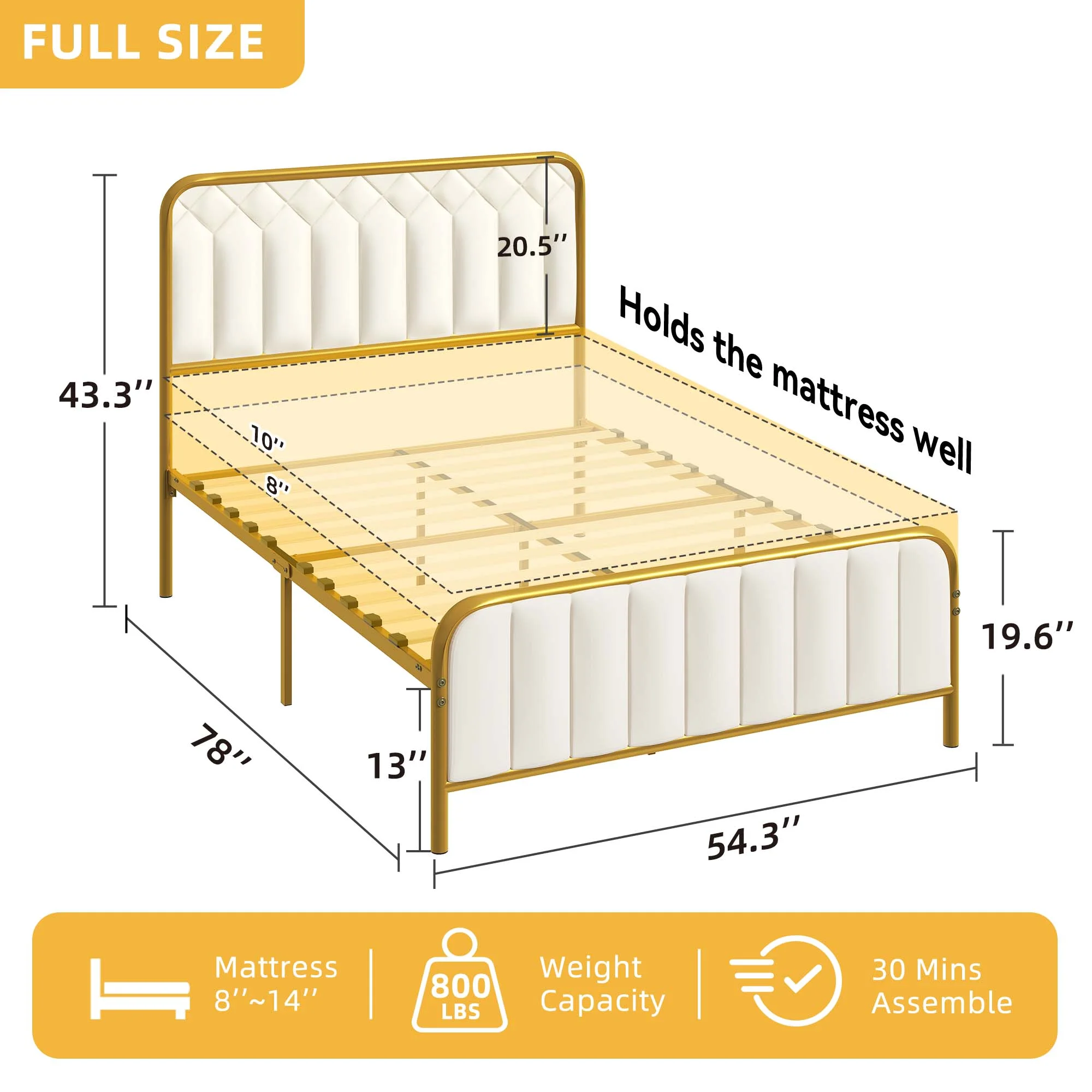 QCAI Bright Pop Metal Bed, Adjustable Height for Underbed Storage (6.5" or 11"), Metal Slats Included, Full, White