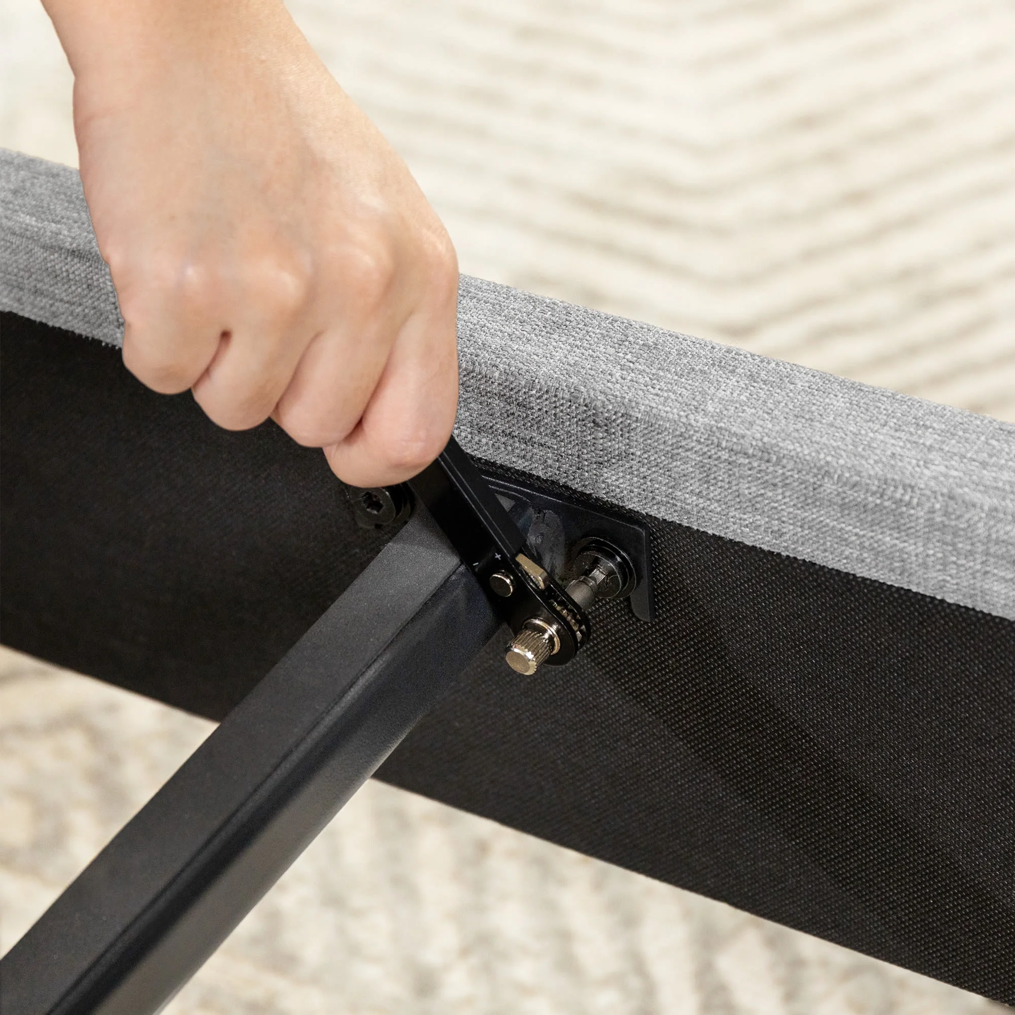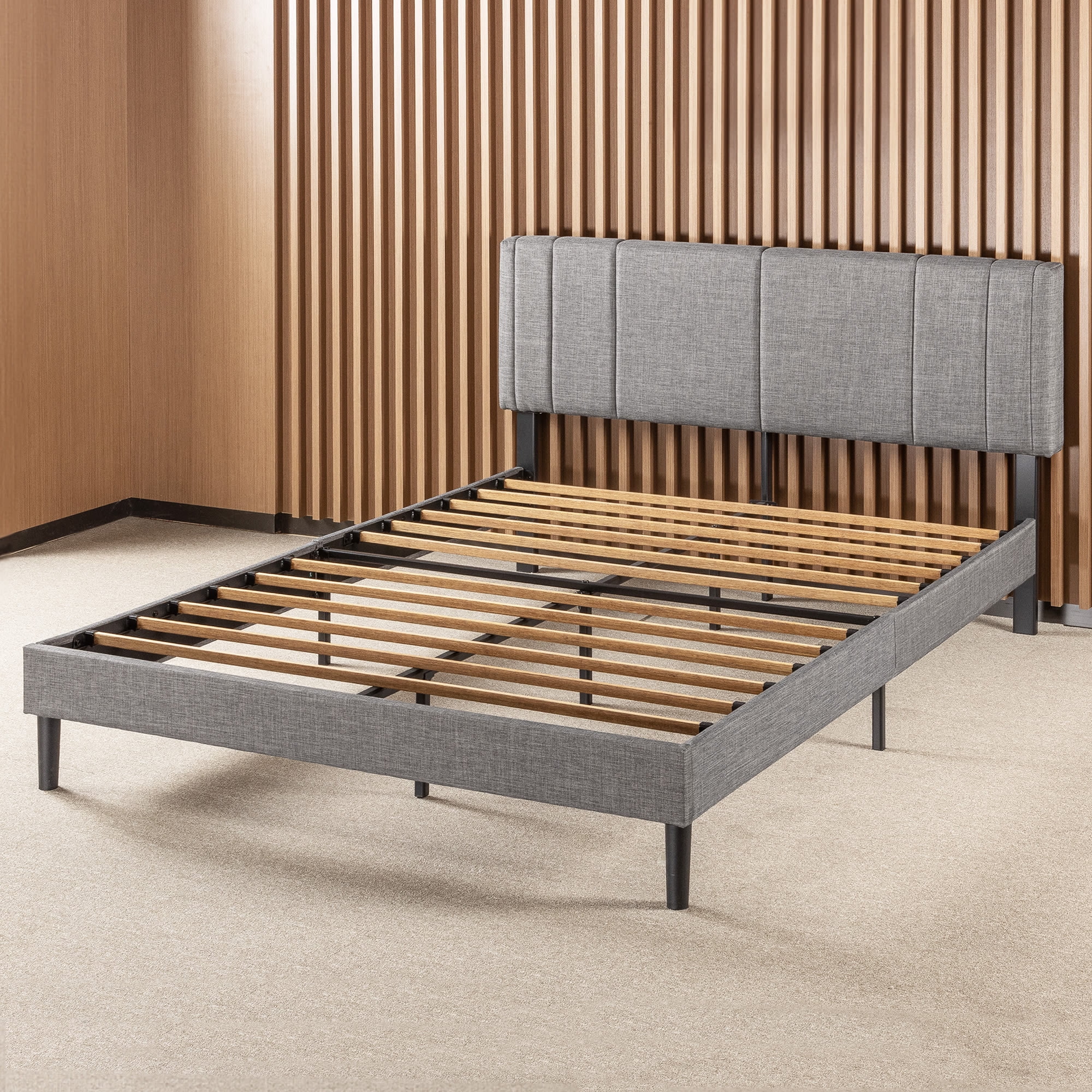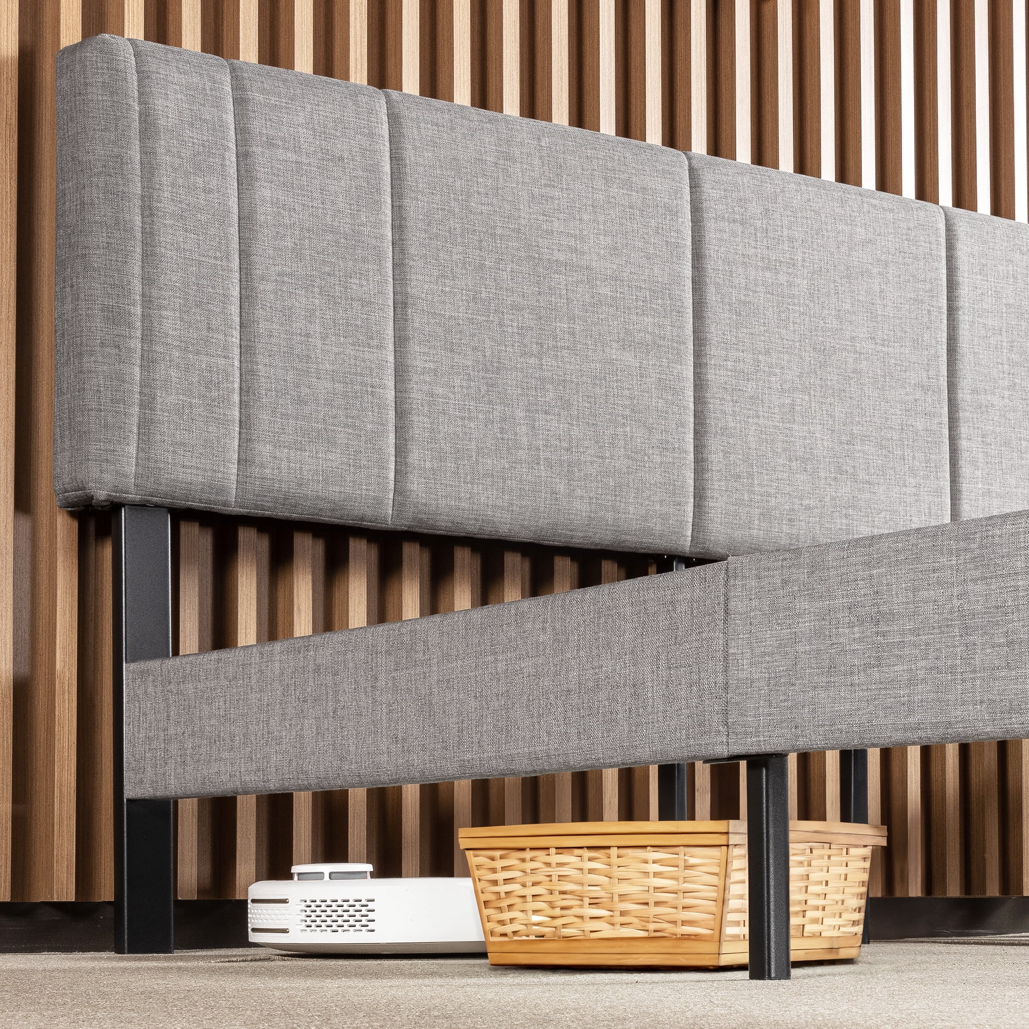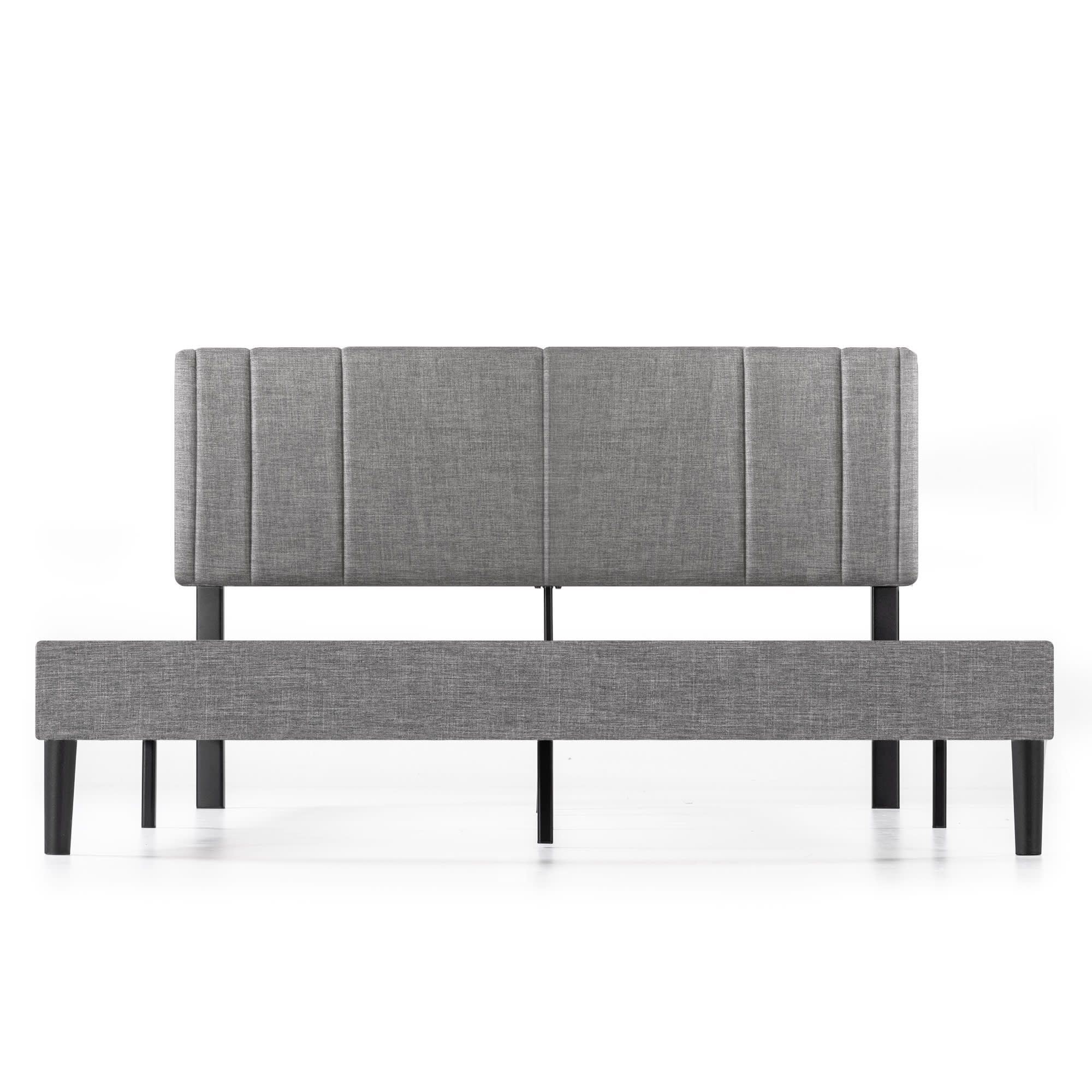 Mellow Soley Upholstered Platform Bed Frame with Headboard, Light Grey, Queen