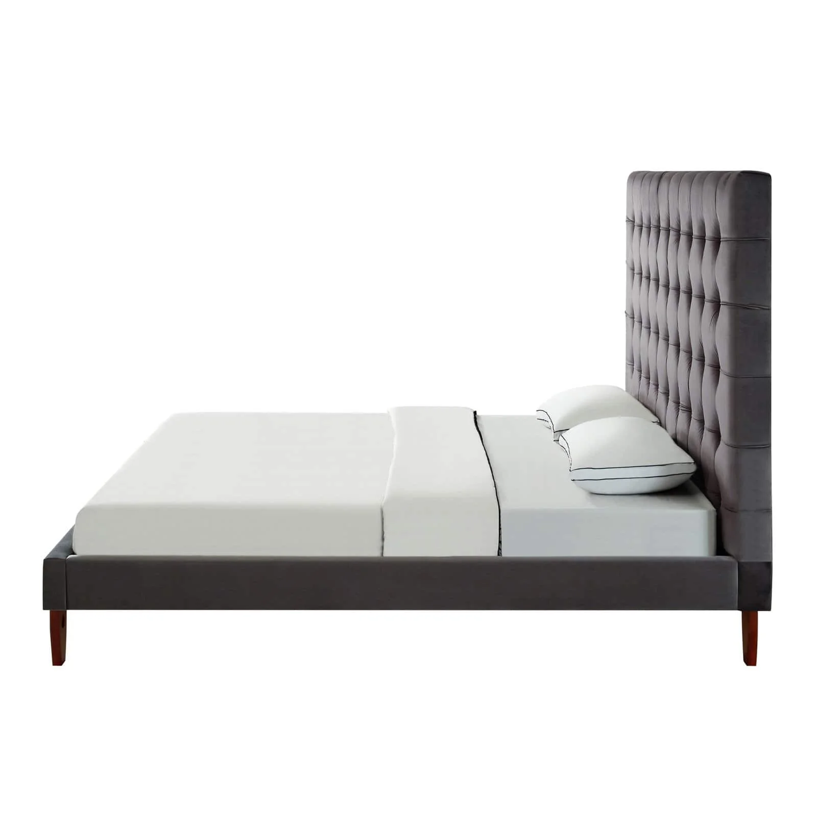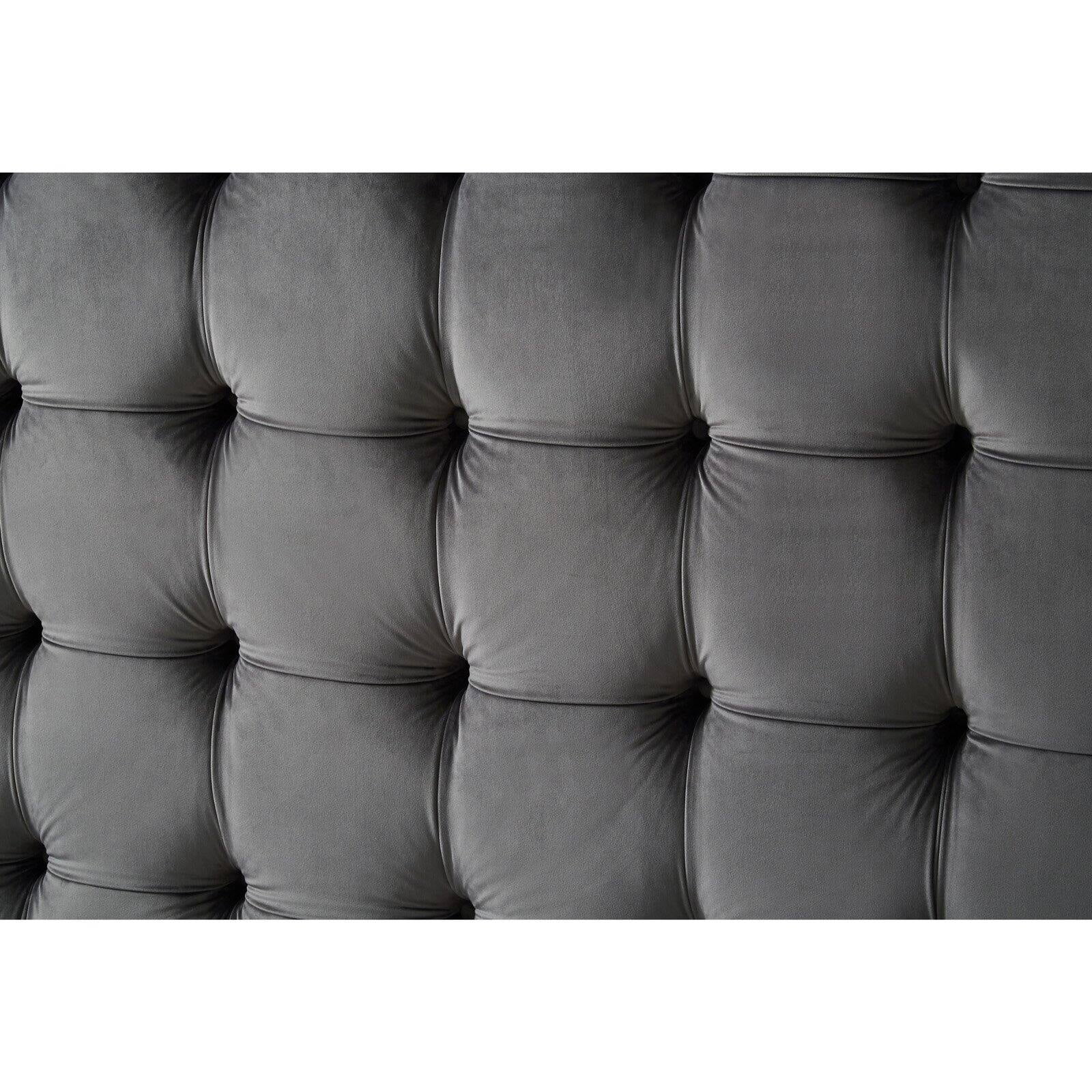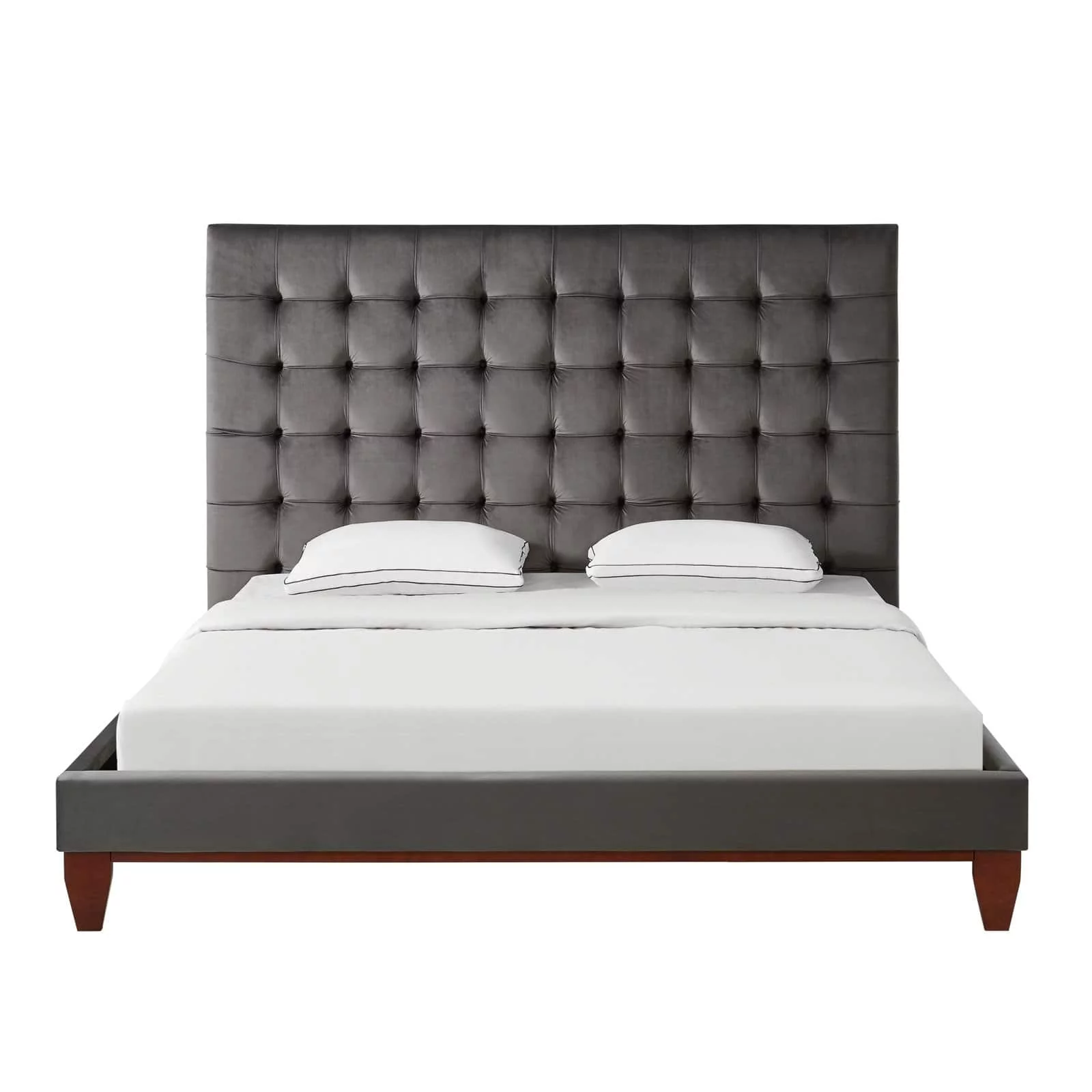 SMILE MART Full Size Metal Platform Bed with Velvet Upholstered Headboard,Dark Gray