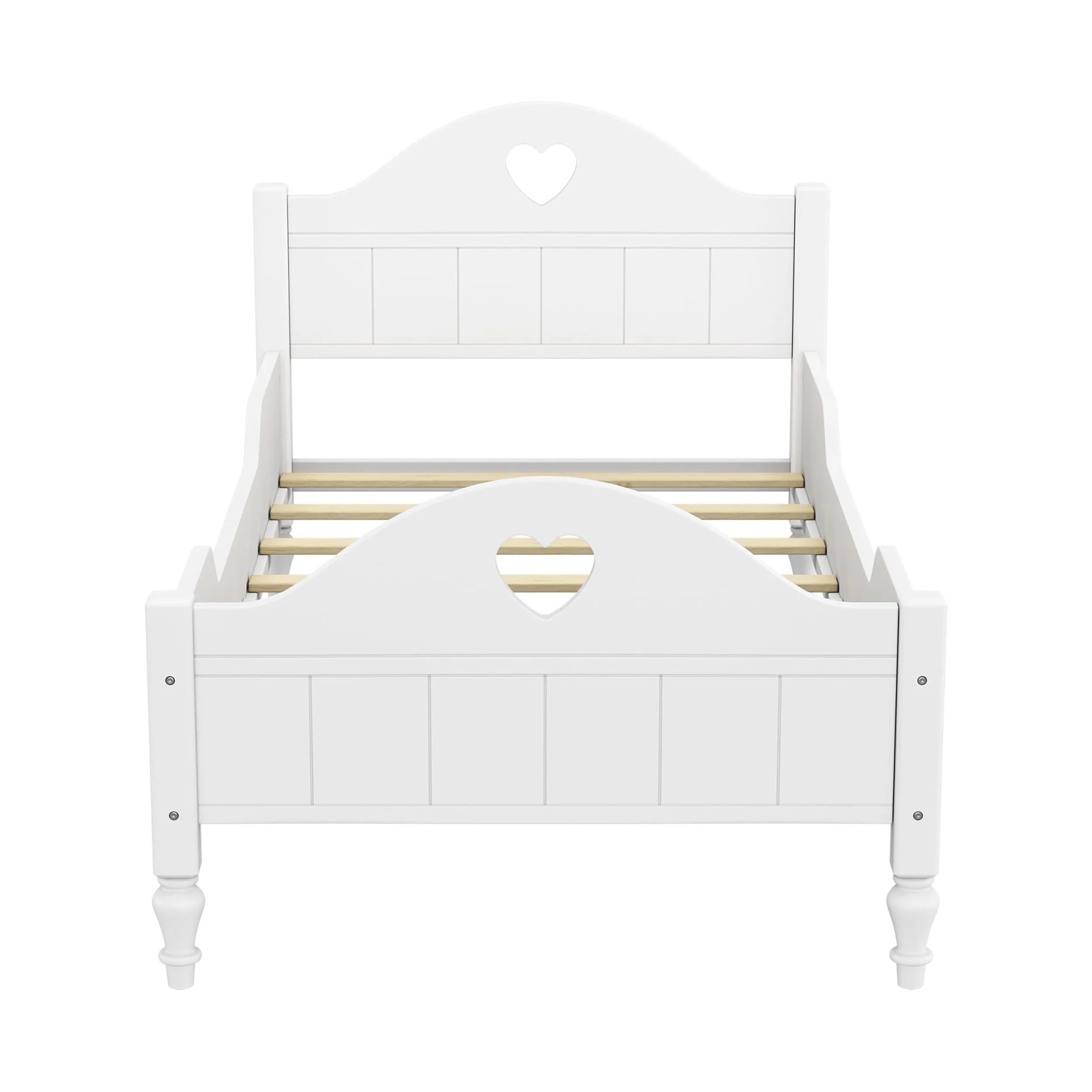 Twin Size Toddler Bed Safe and Stylish Toddler Bed Frame with Side Safety Rails, Headboard,and Footboard-White