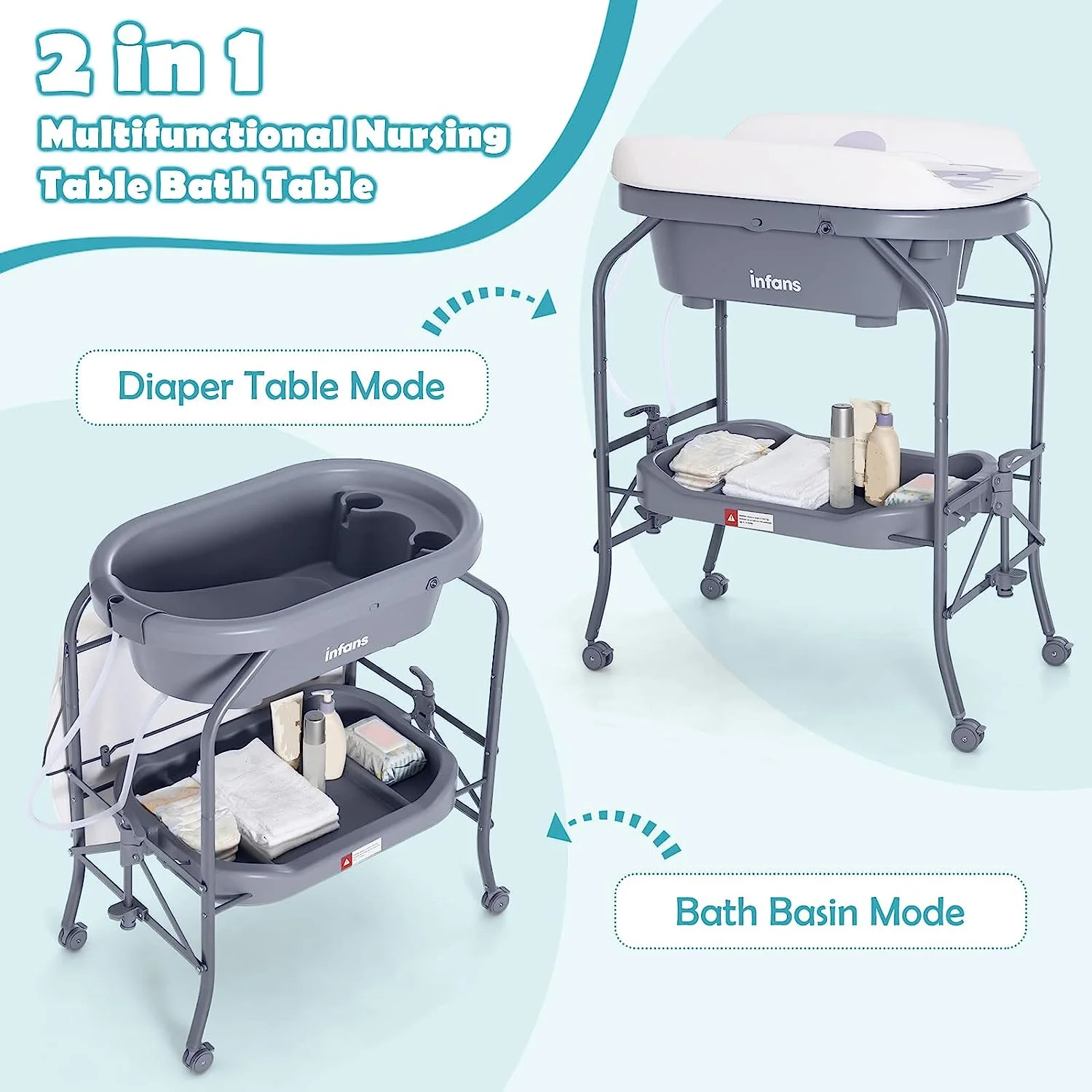 Progressive Furniture Jordan Powder All-In-One Upholstered Bed - Blue - Queen Size