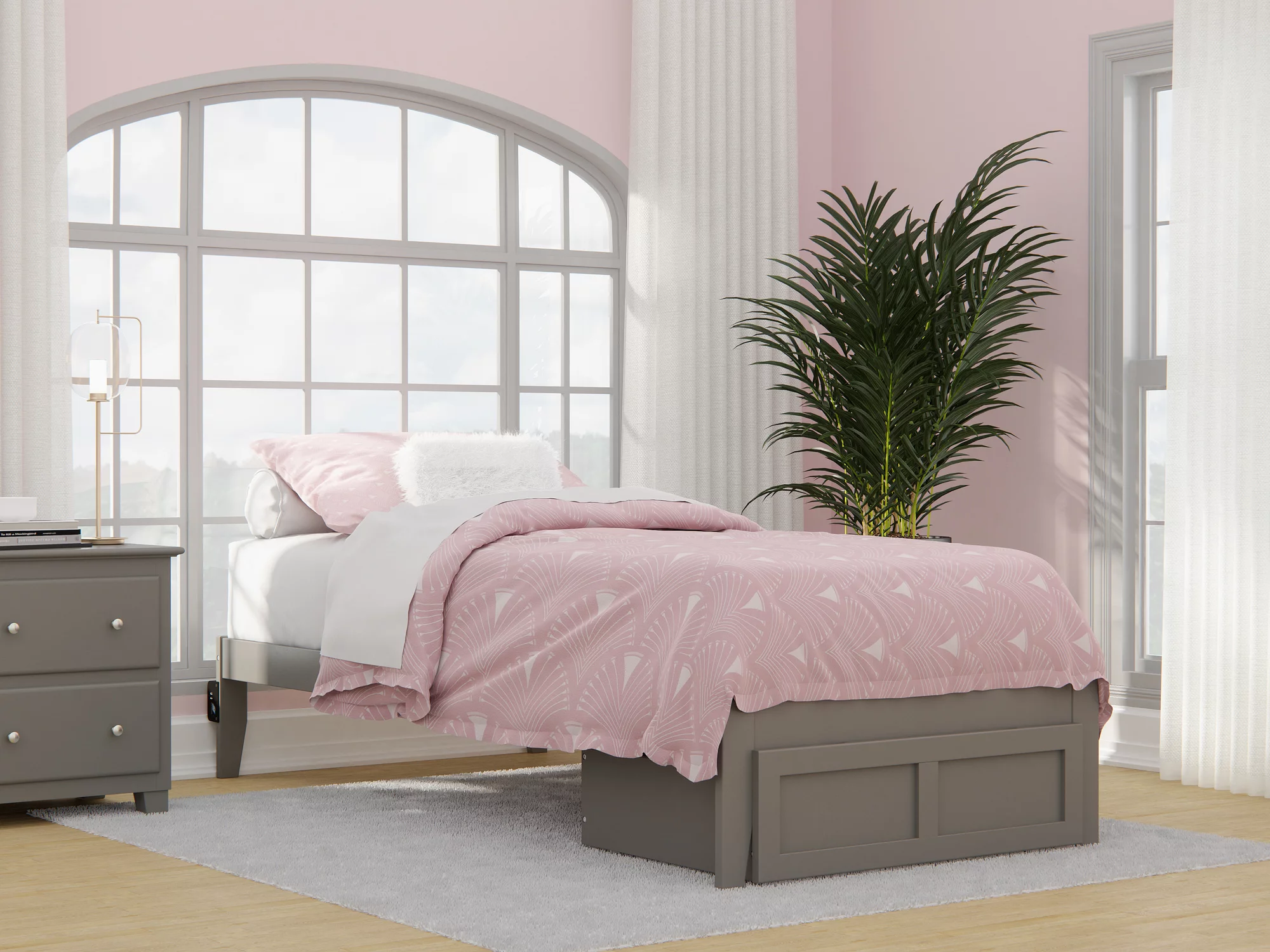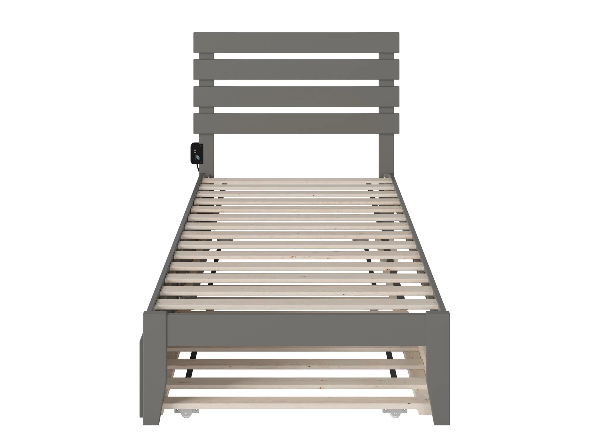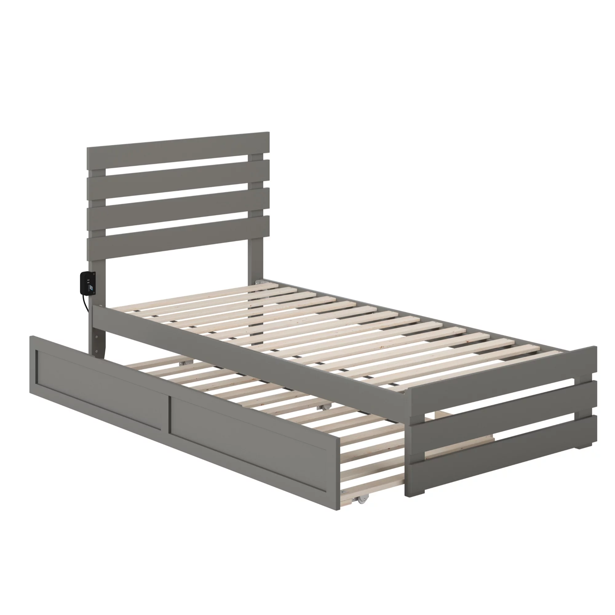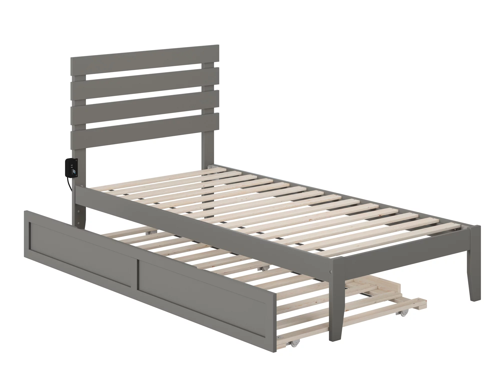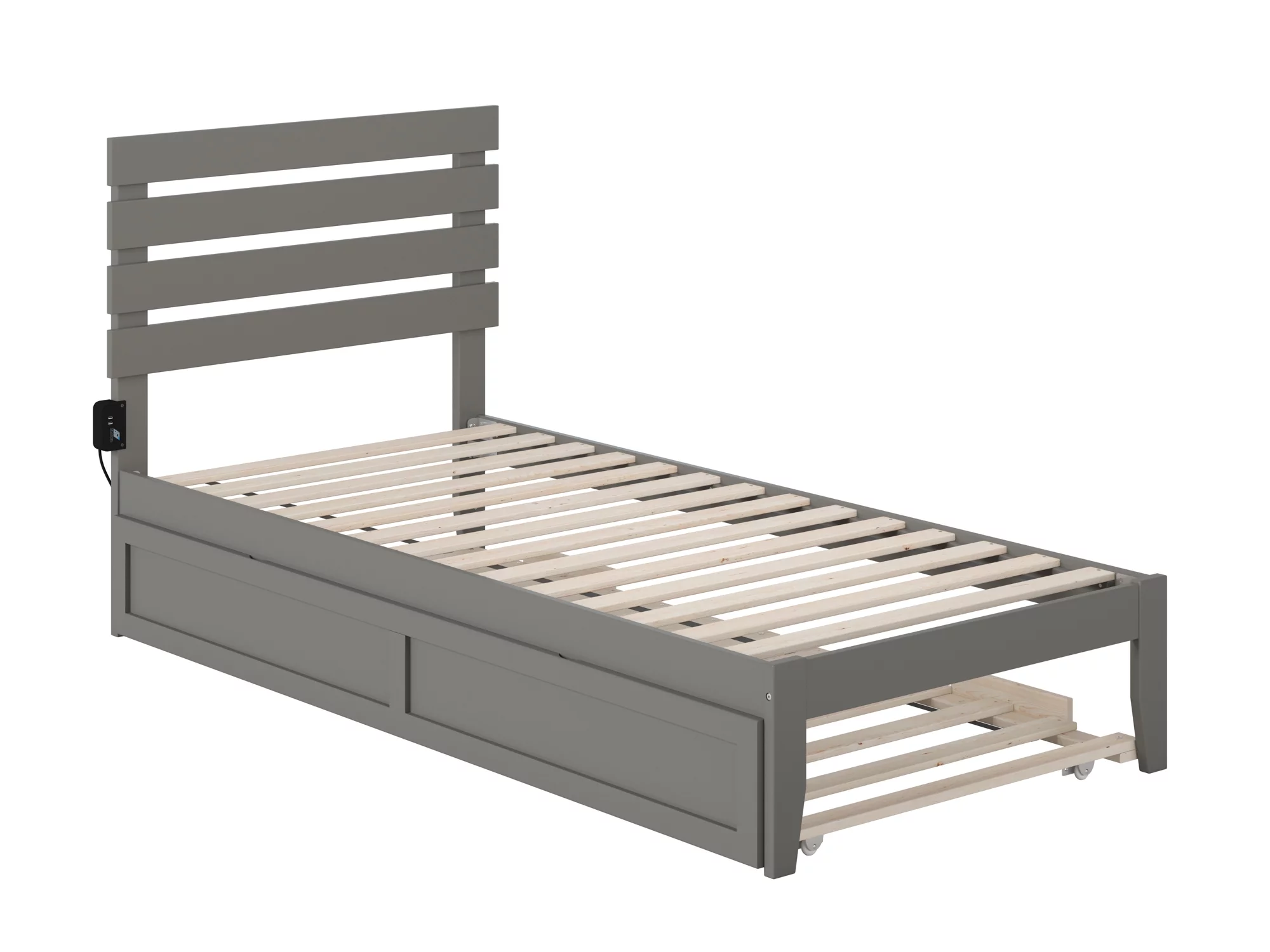 Oxford Twin Extra Long Bed with USB Turbo Charger and Twin Extra Long Trundle in Grey