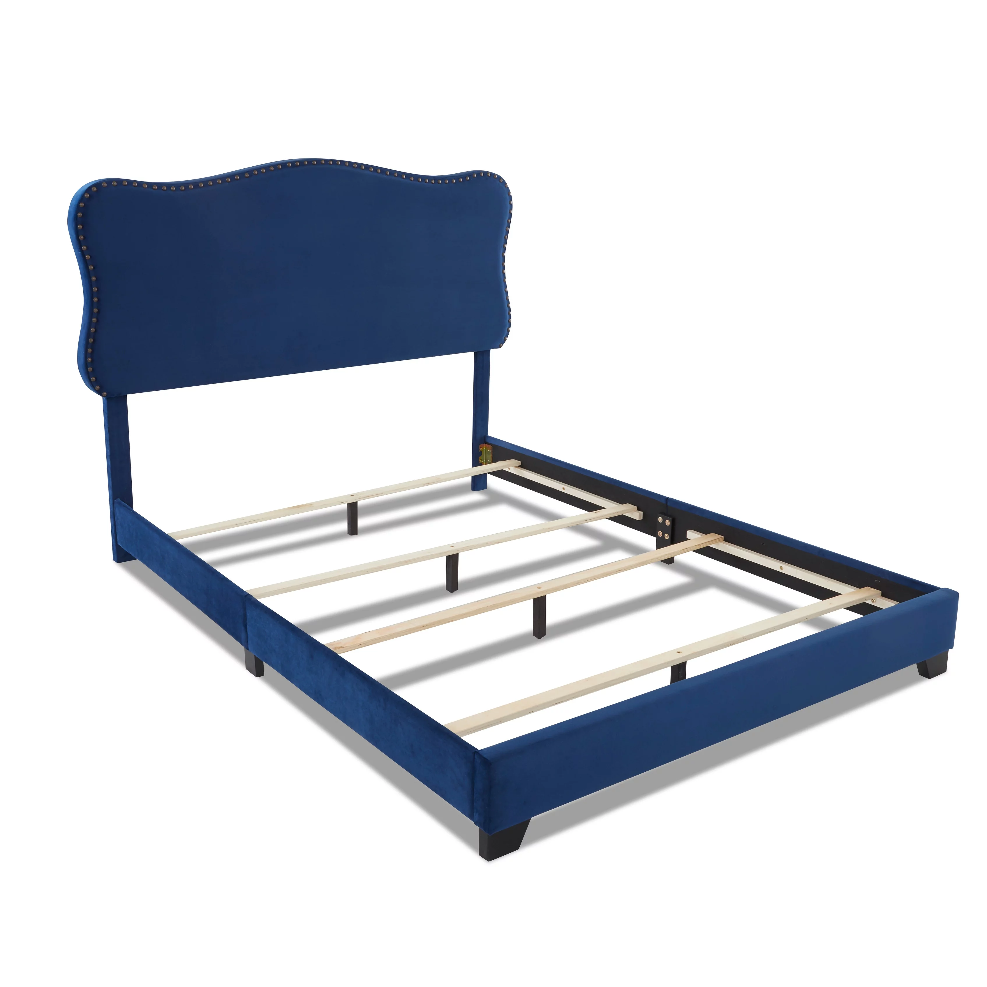 Avenue 405 York Transitional Blue Velvet Upholstered Bed with Scalloped Headboard Queen