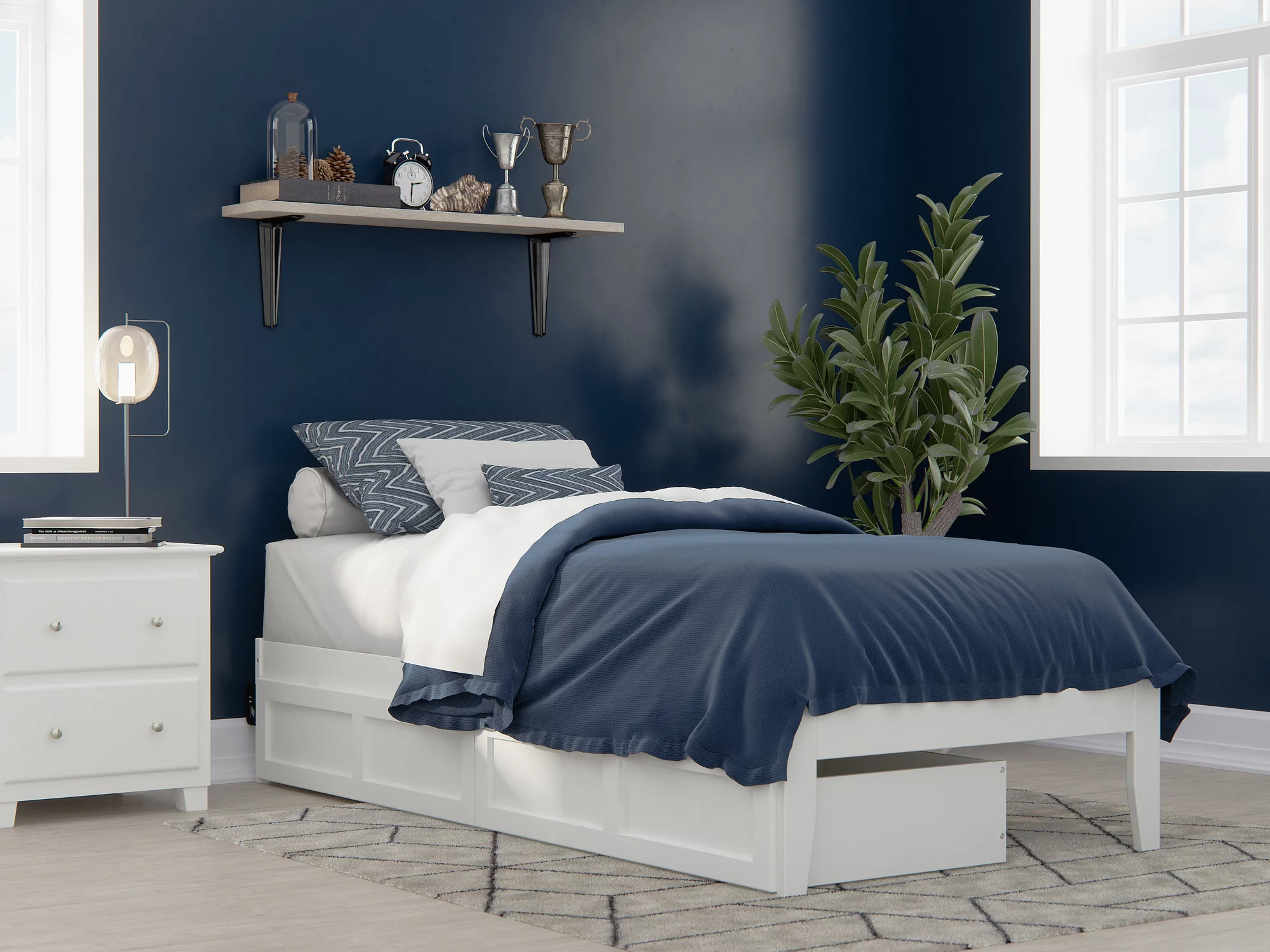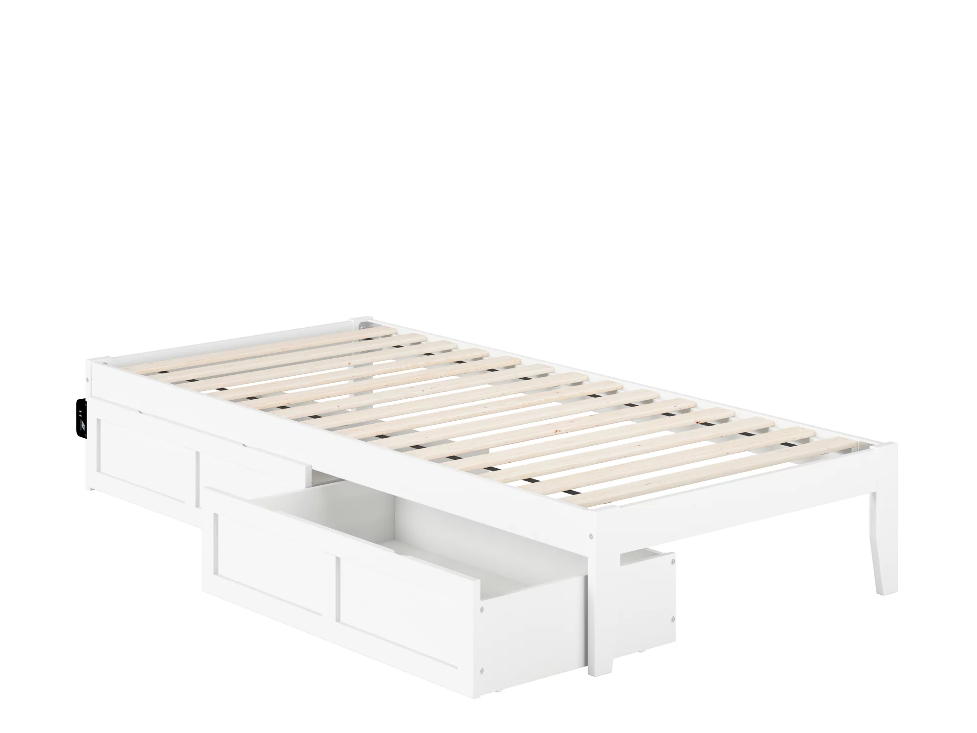 Colorado Twin Extra Long Bed with USB Turbo Charger and 2 Extra Long Drawers in White