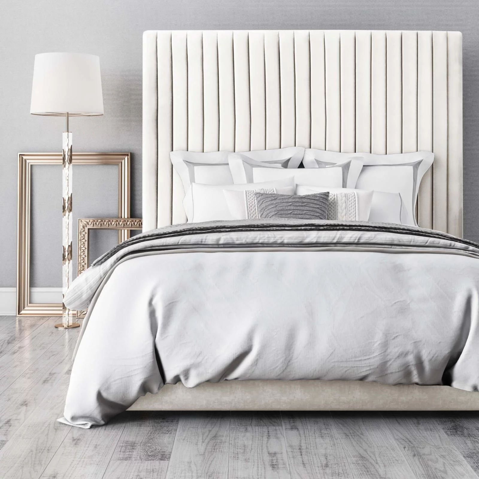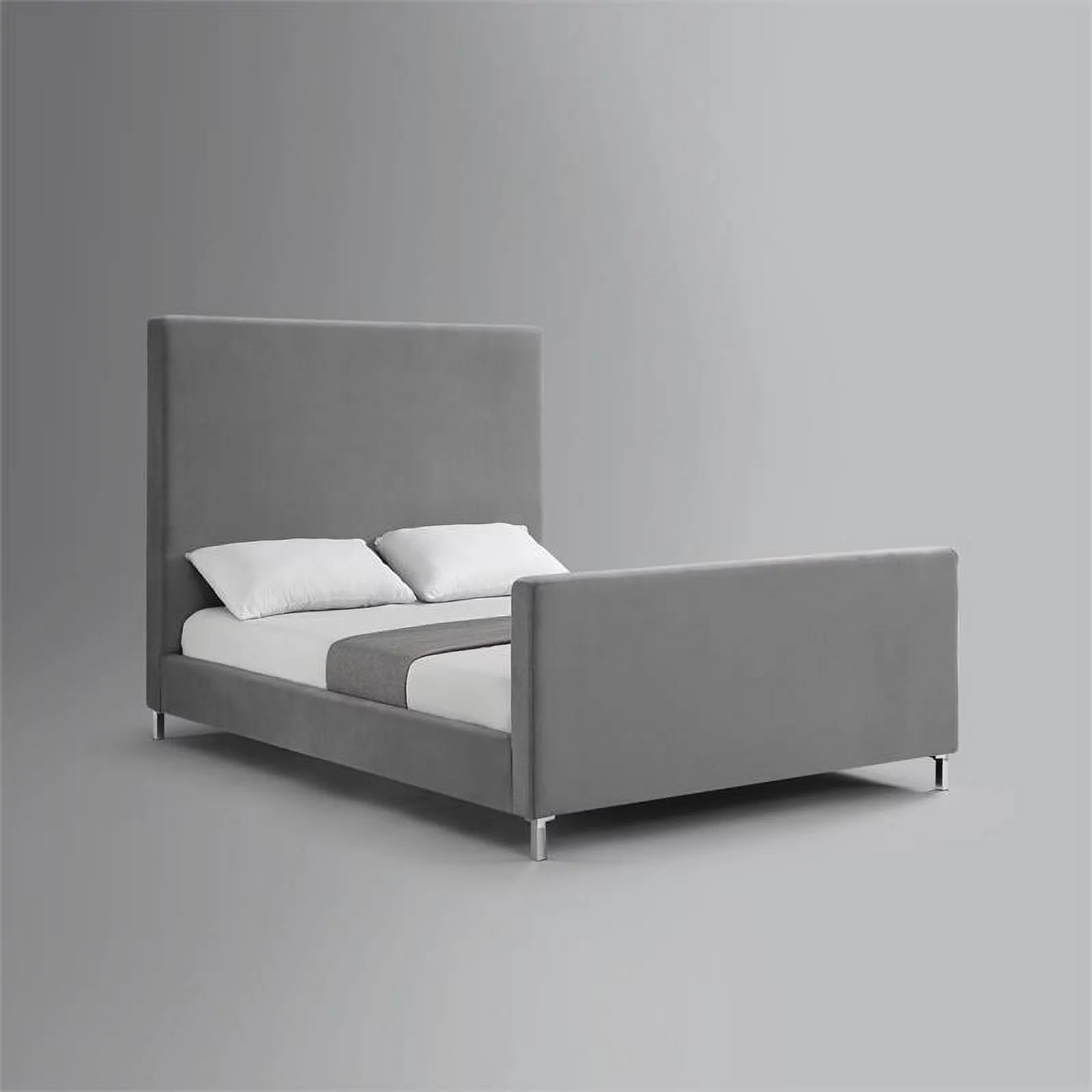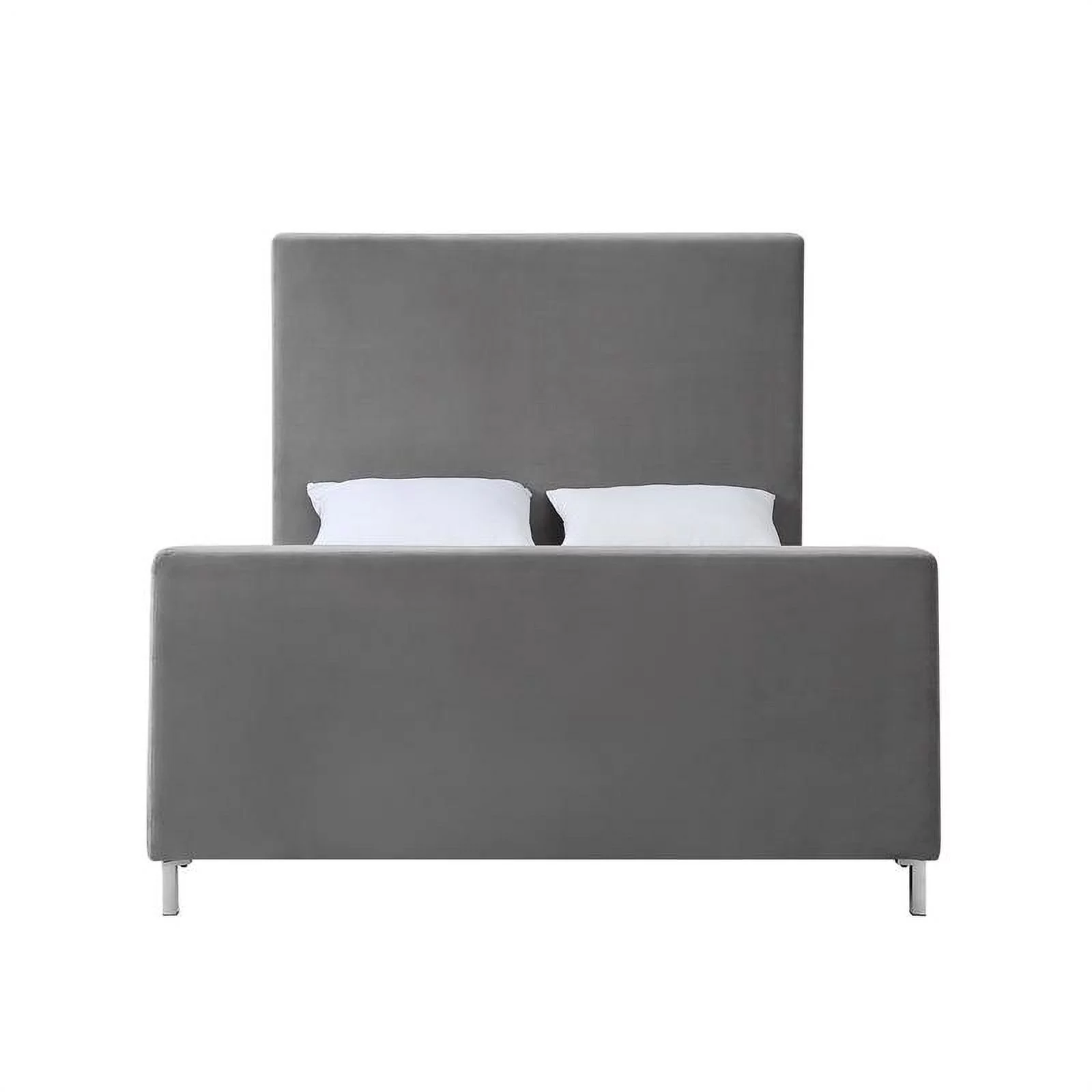 Bed Queen Size Platform Bedroom Frame Upholstered Velvet Wood Legs Grey