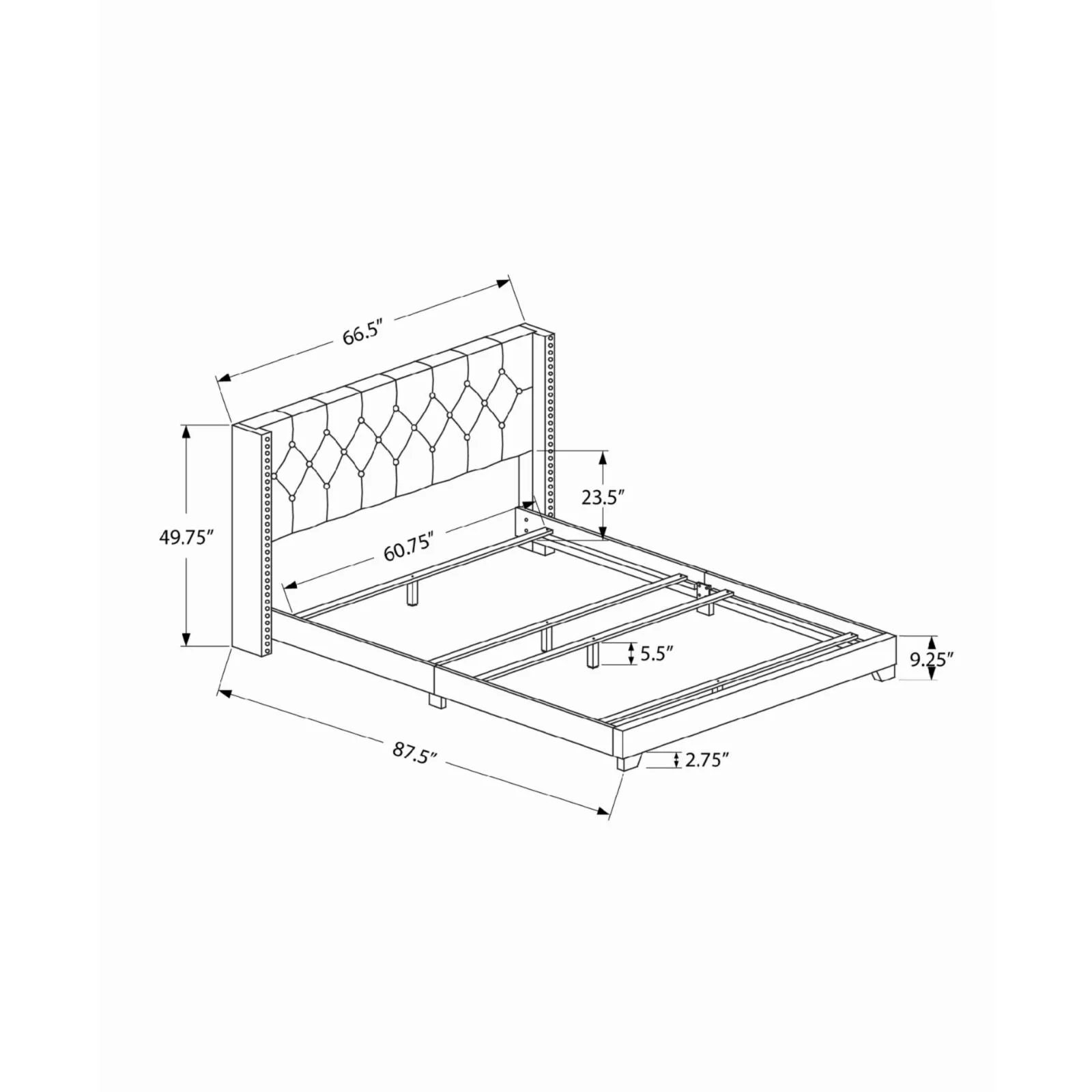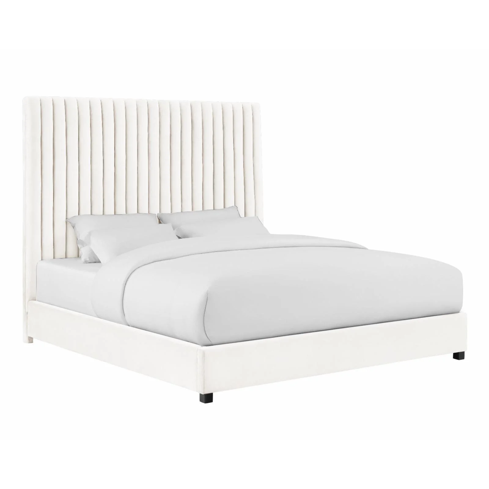 Diamond Sofa 54 in. Vogue Eastern King Size Bed with Headboard, Light Cream Velvet