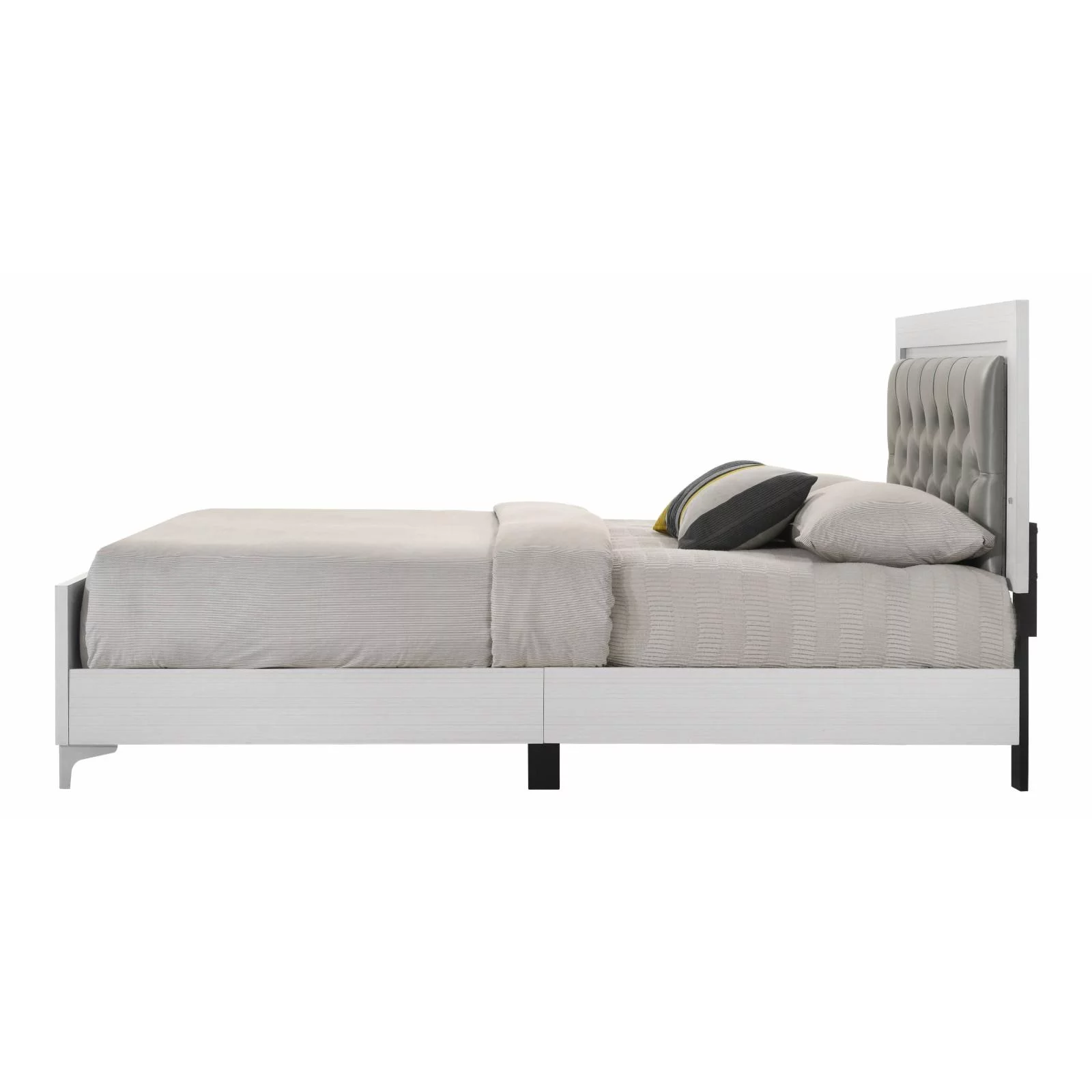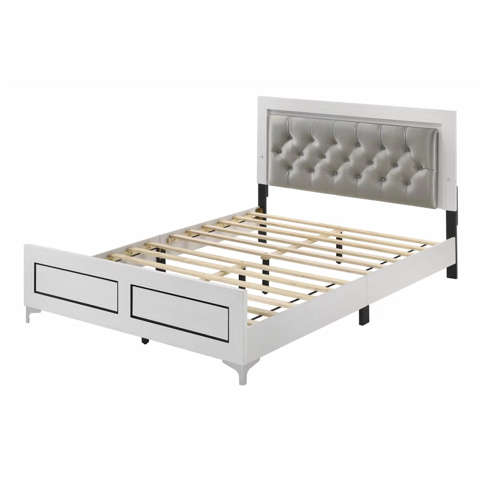 ACME Casilda Faux Leather Tufted Eastern King Bed with LED in Gray and White