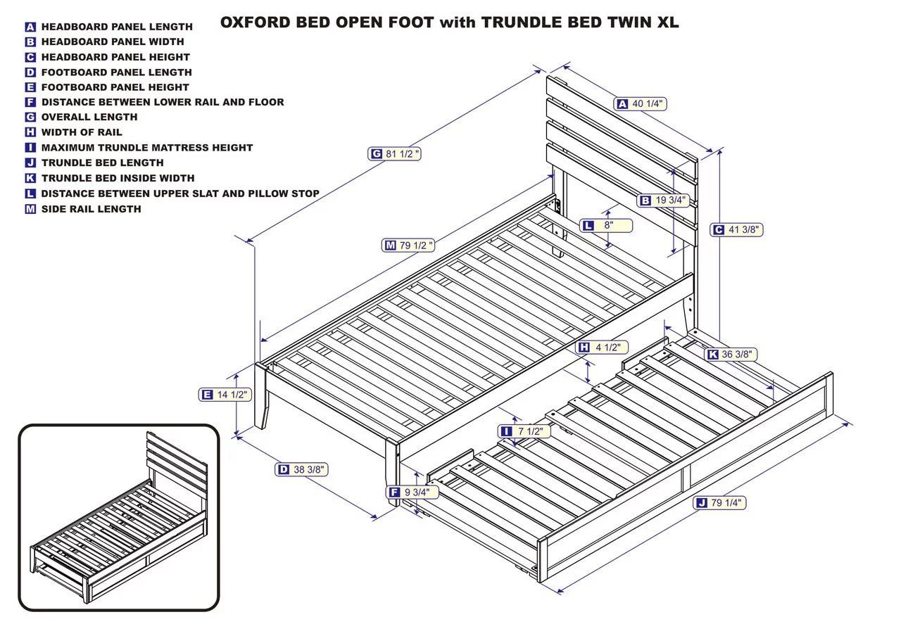 Oxford Twin Extra Long Bed with Footboard and USB Turbo Charger with Twin Extra Long Trundle in Grey