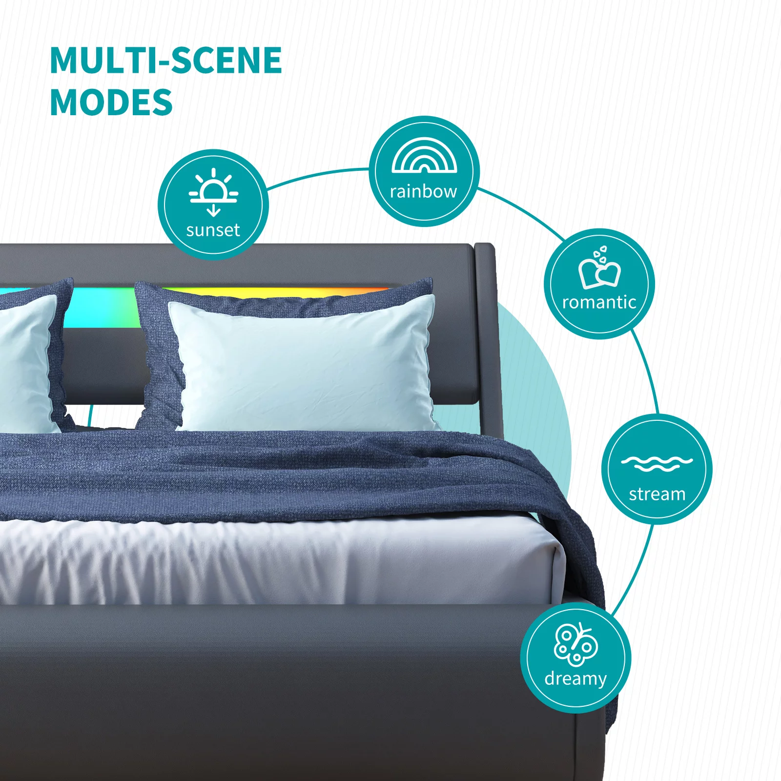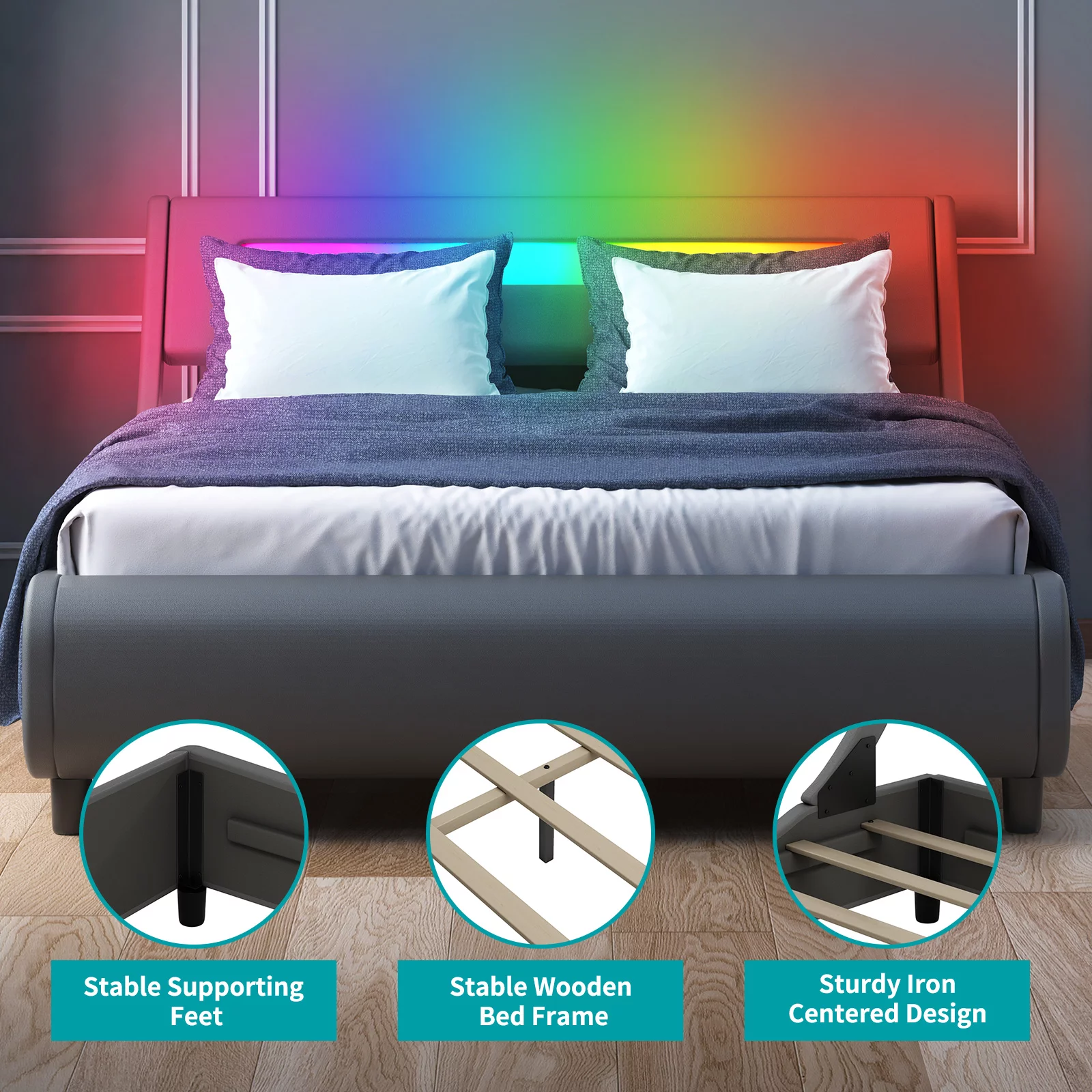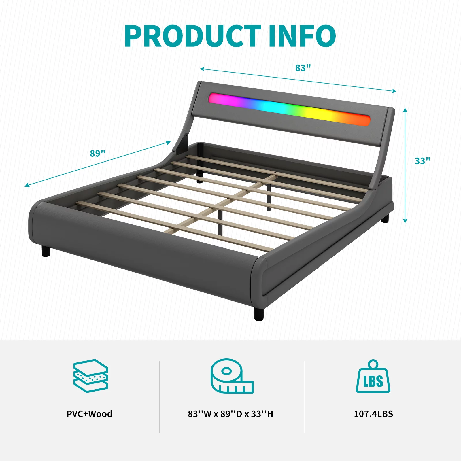 BALUS King Bed Frame with Alexa Voice Control, Music Sync Color Changing RGB LED Headboard, PU Leather Covered, Gray