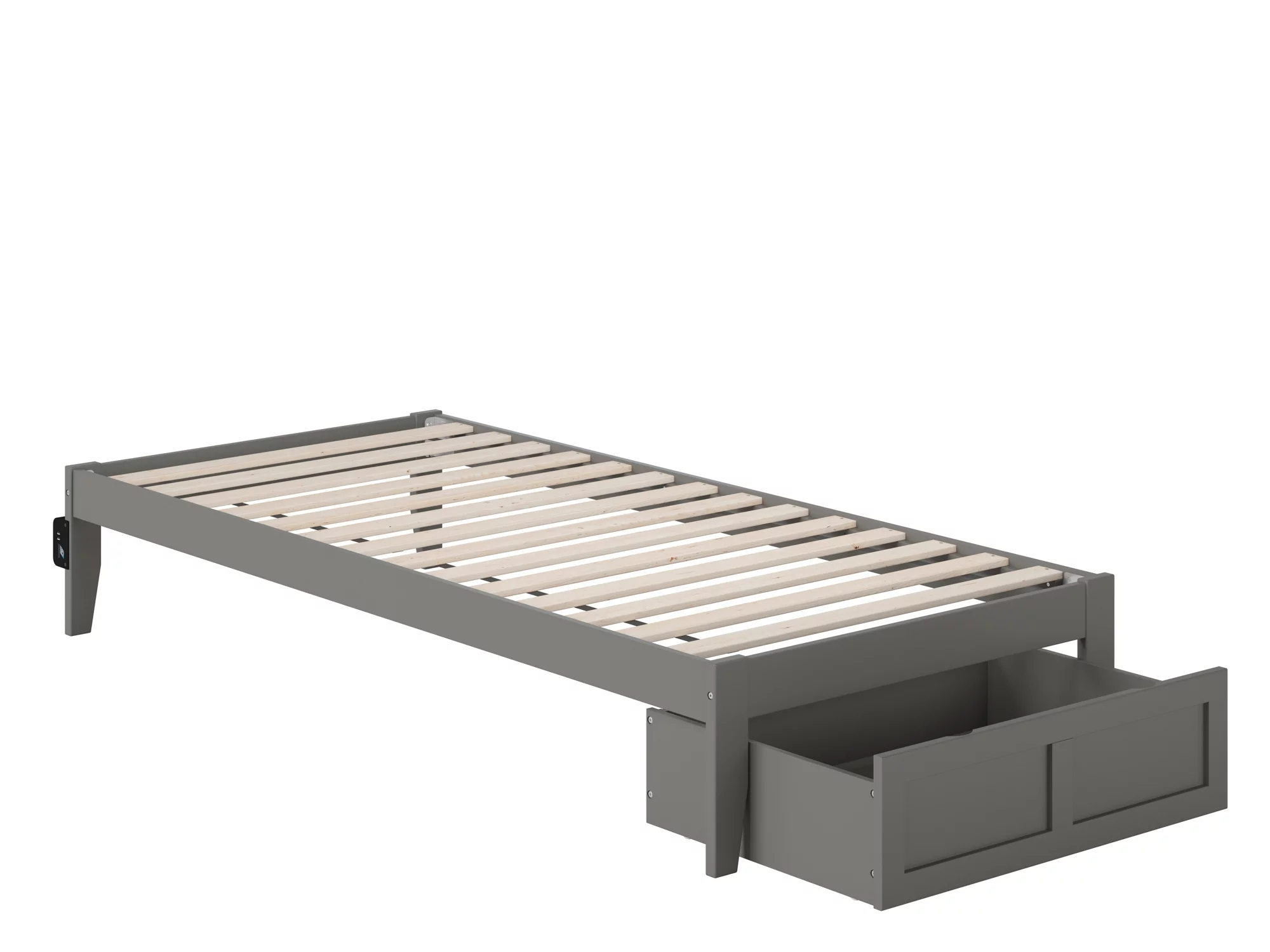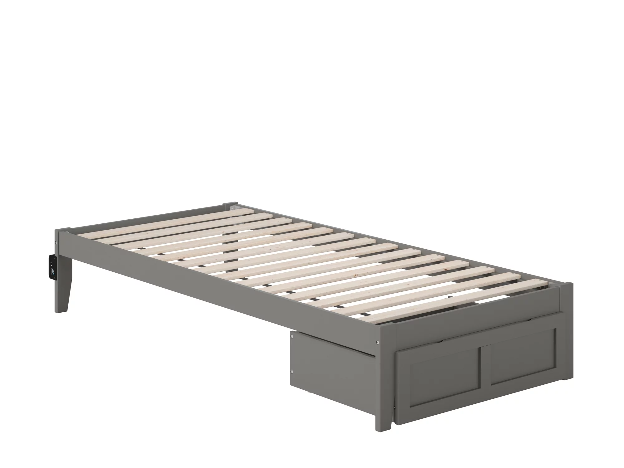 Colorado Twin Extra Long Bed with Foot Drawer and USB Turbo Charger in Grey
