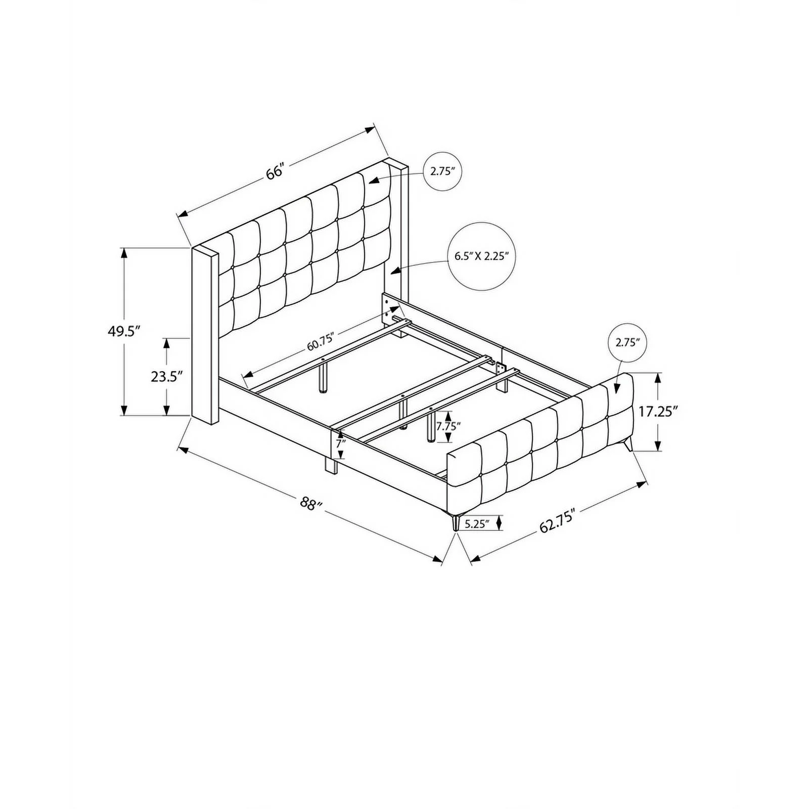 Diamond Sofa 54 in. Vogue Queen Size Bed with Headboard, Light Cream Velvet