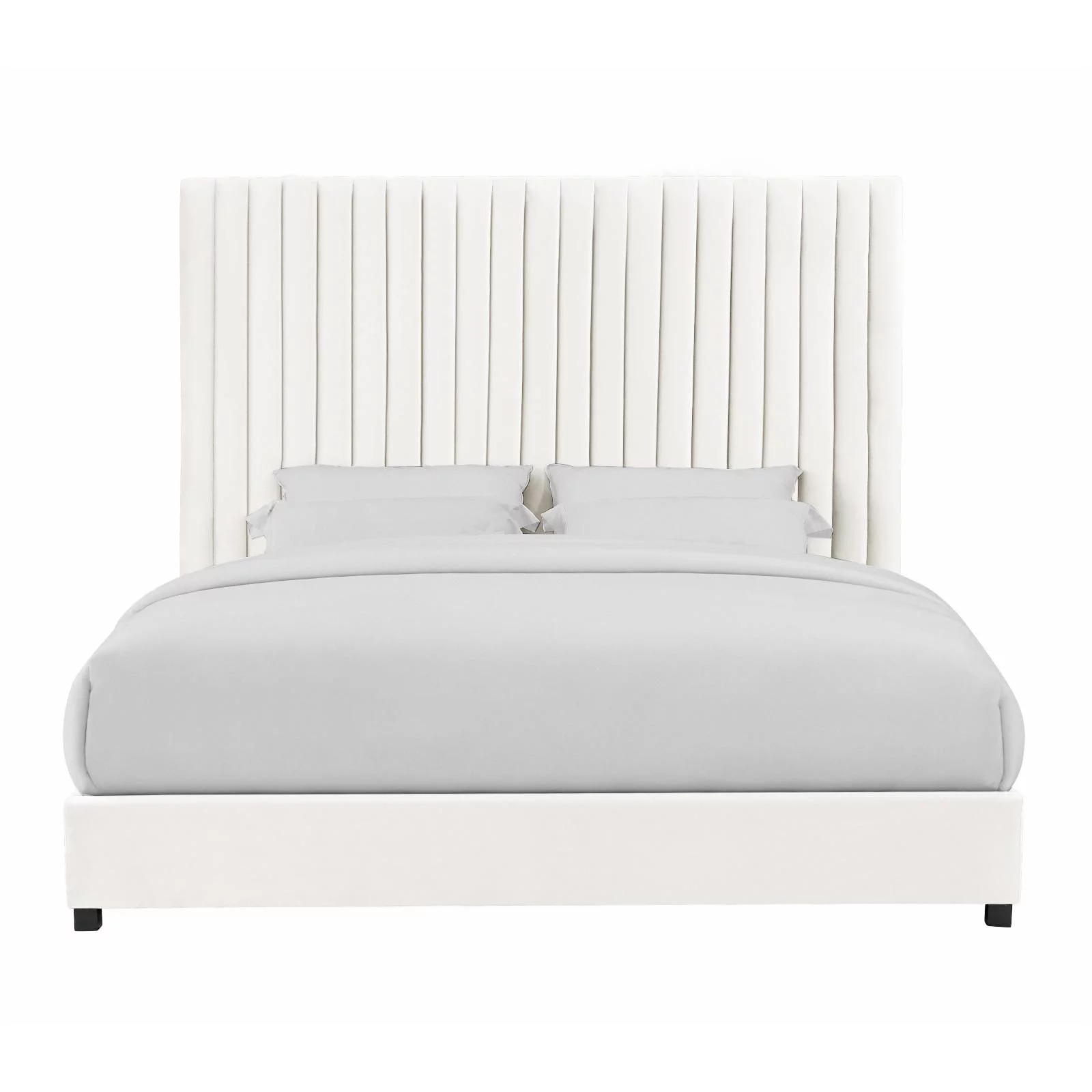 Queen Size Platform Bed Frame, Velvet Upholstered Bed with Vertical Channel Tufted Headboard