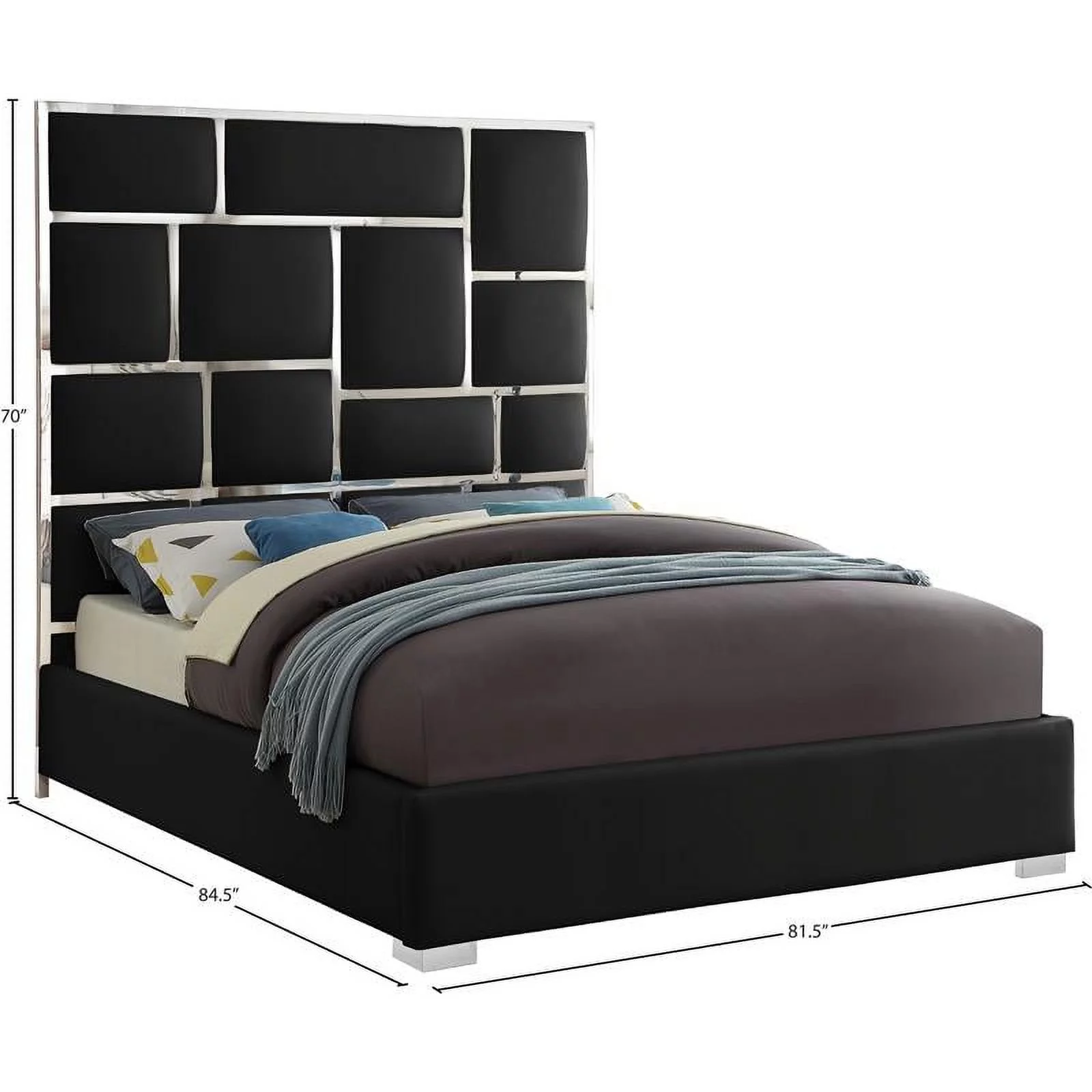 Meridian Furniture Milan Solid Wood and Vegan Leather King Bed in Black