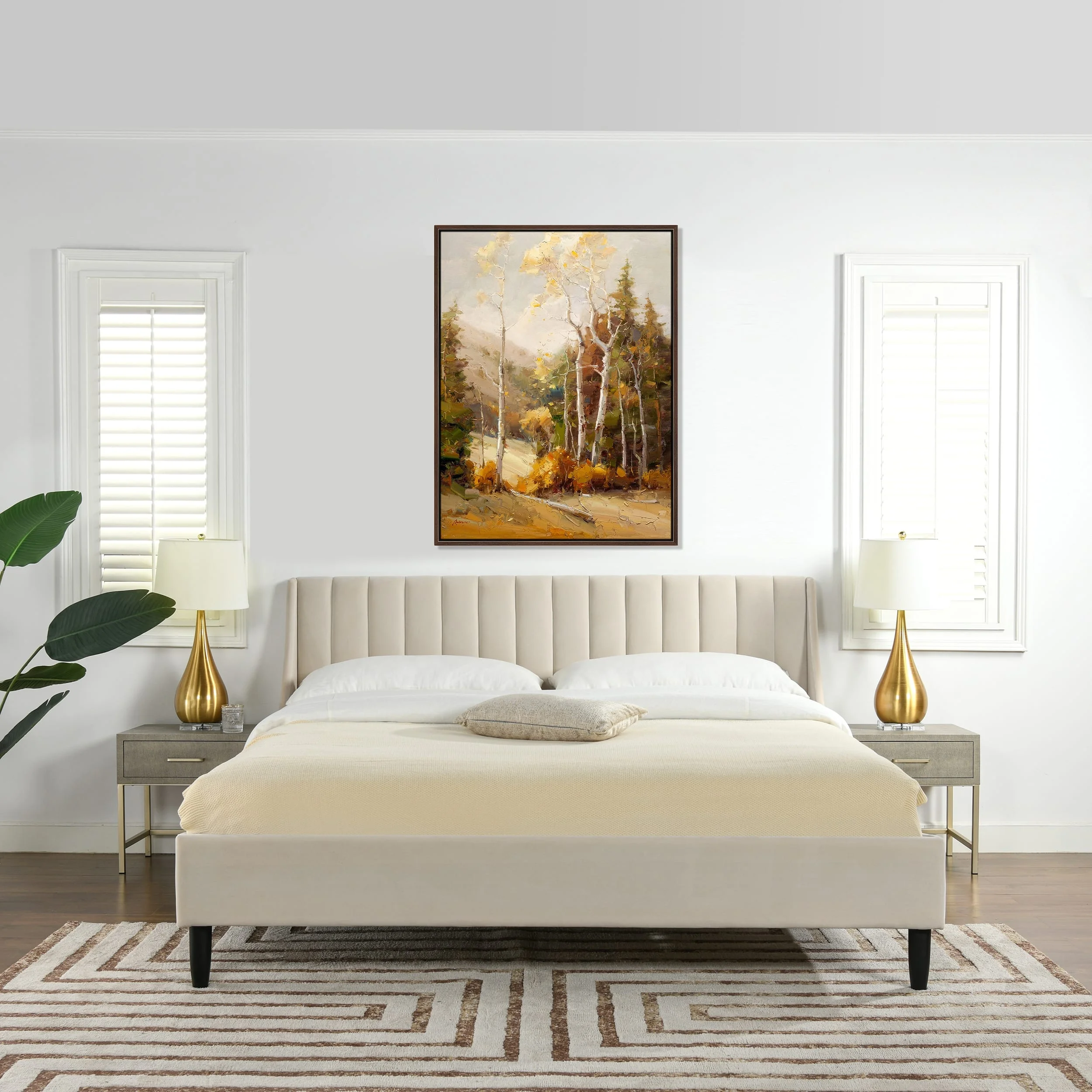 Bella Mid-Century Modern Velvet Upholstered Queen Platform Bed in Tan