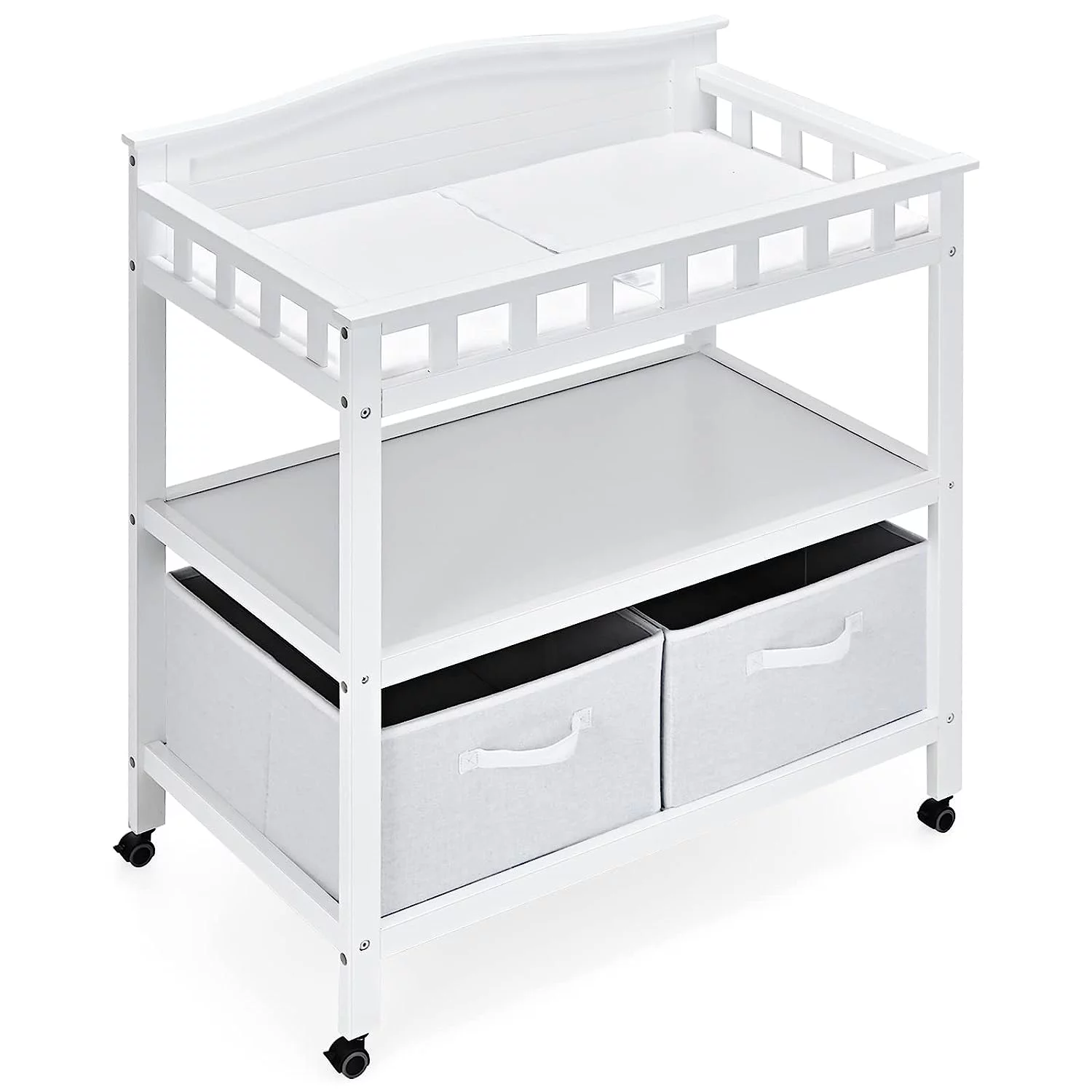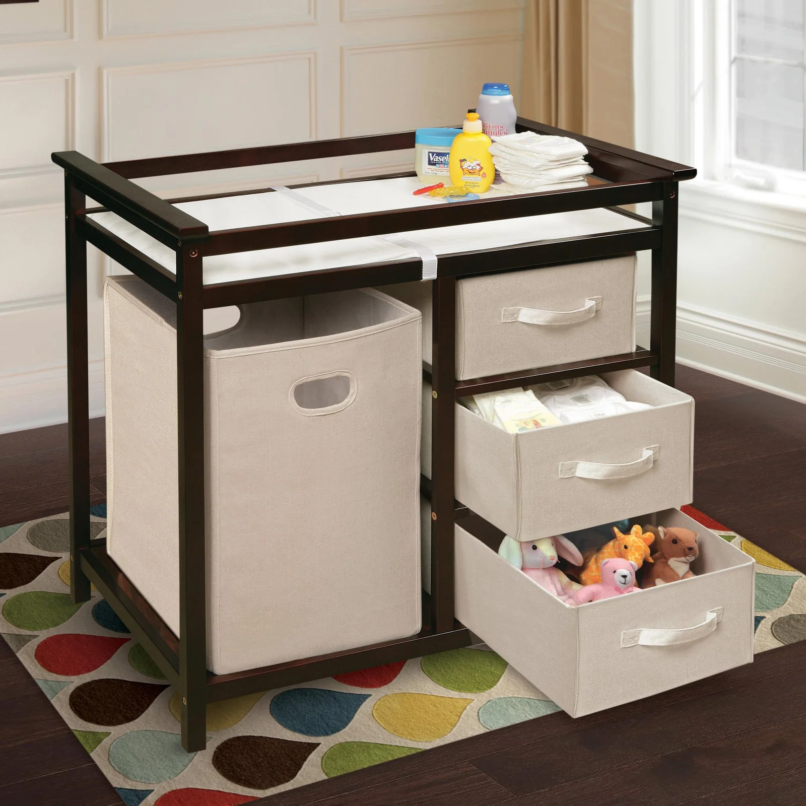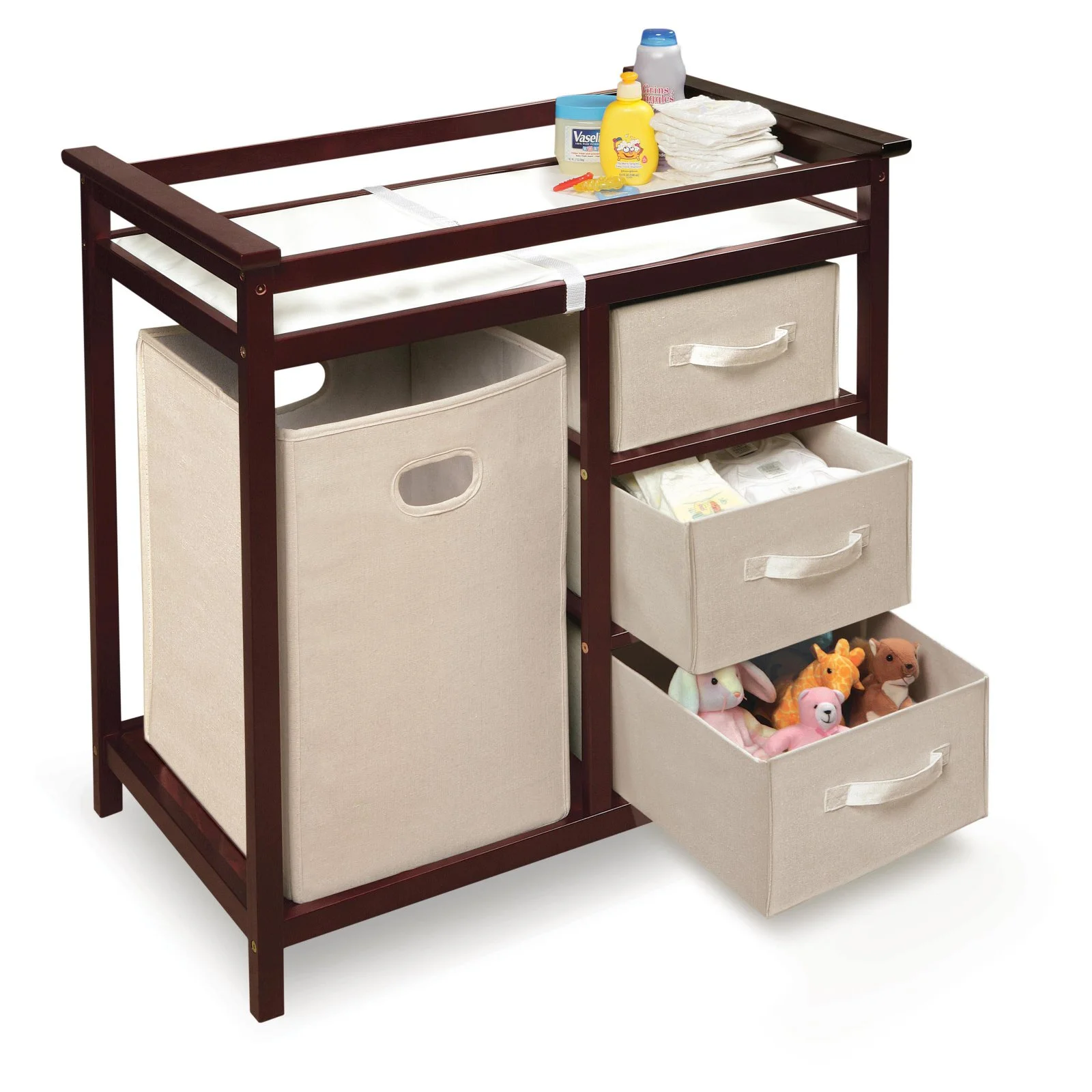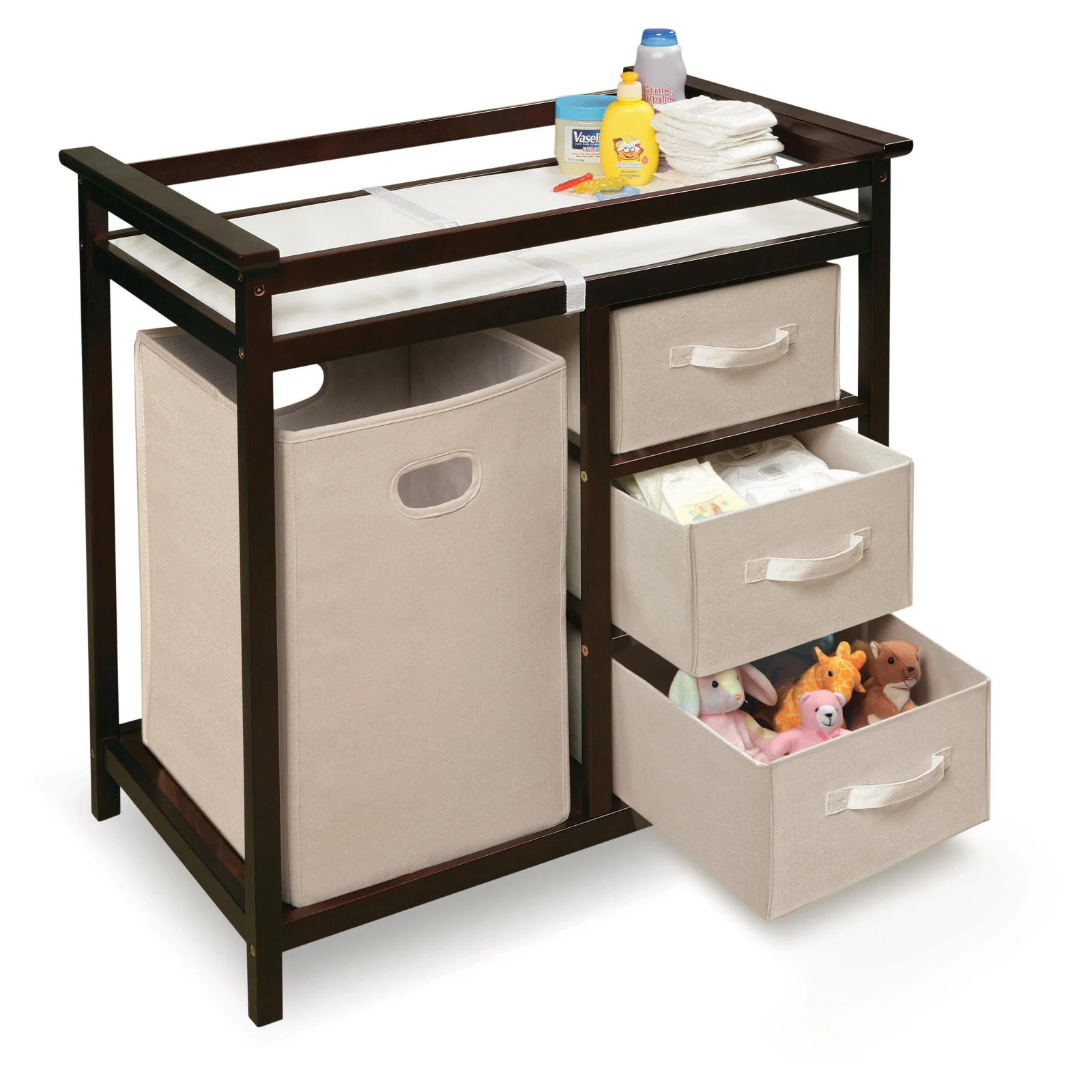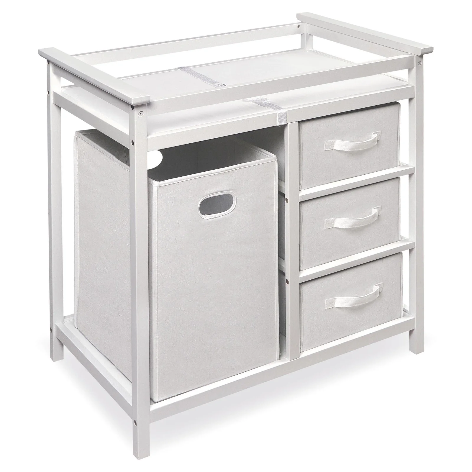 Badger Basket Modern Baby Changing Table with Hamper and 3 Baskets, White, Includes Pad