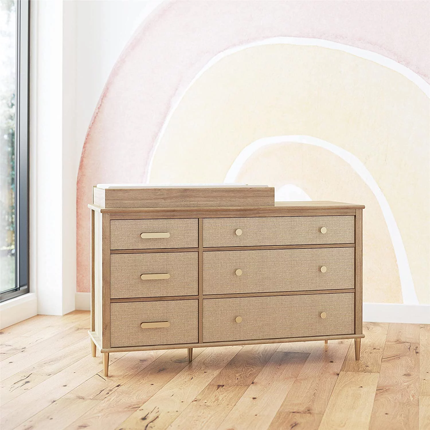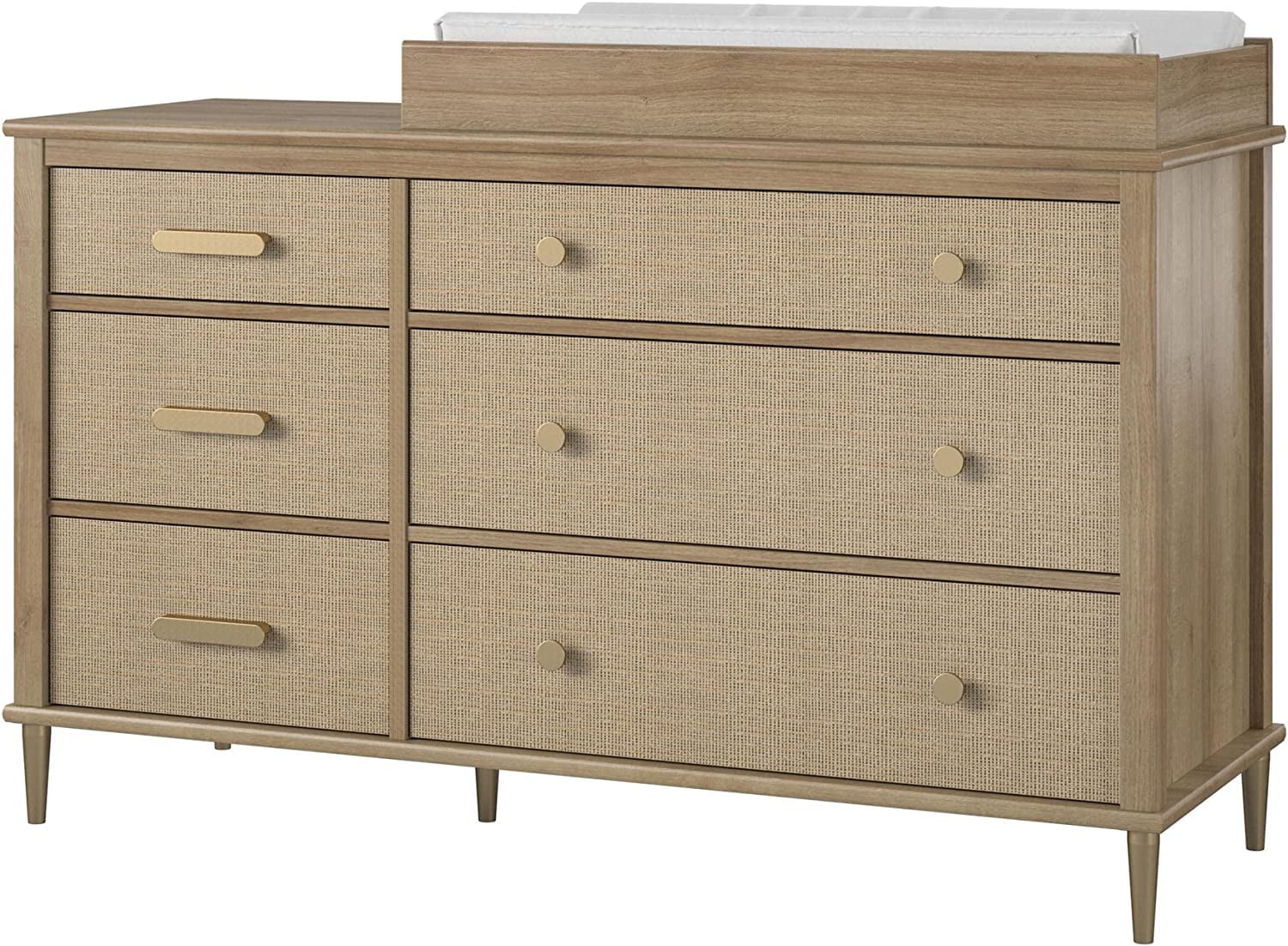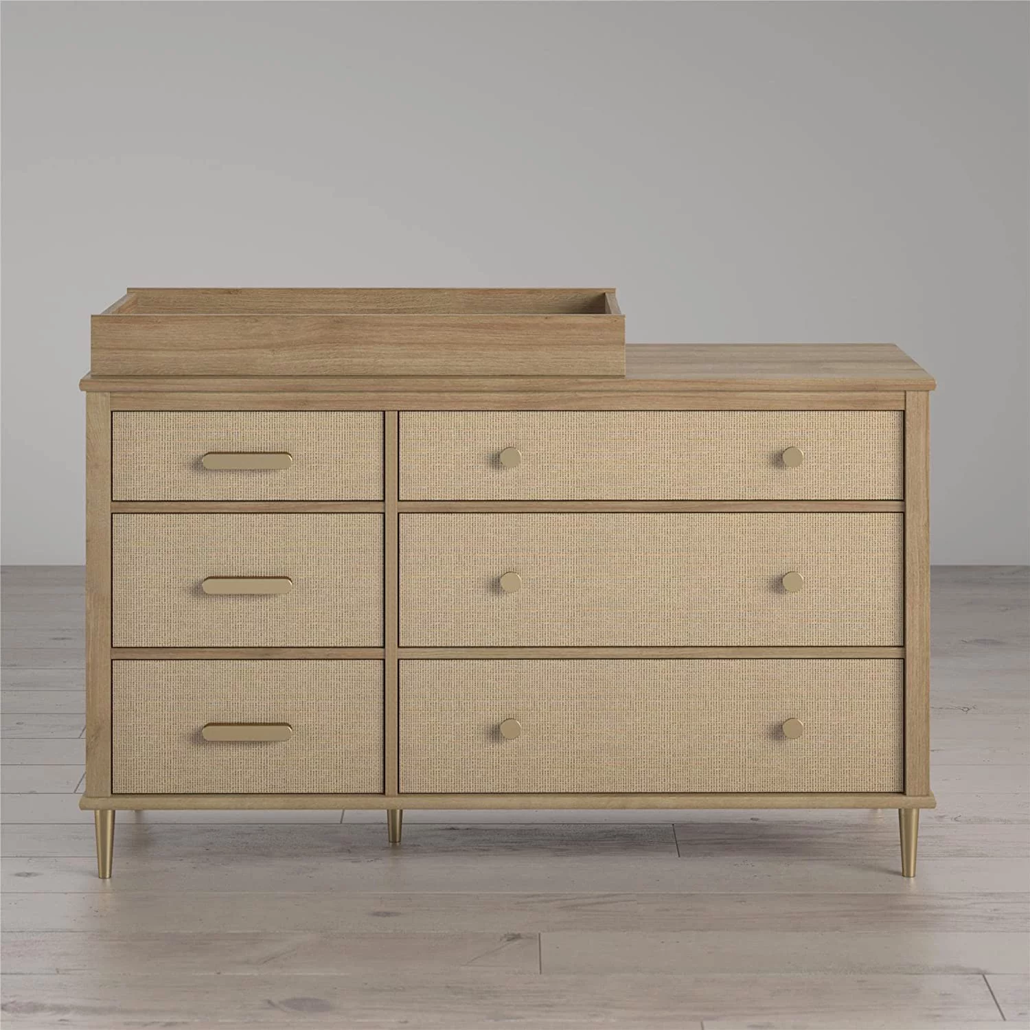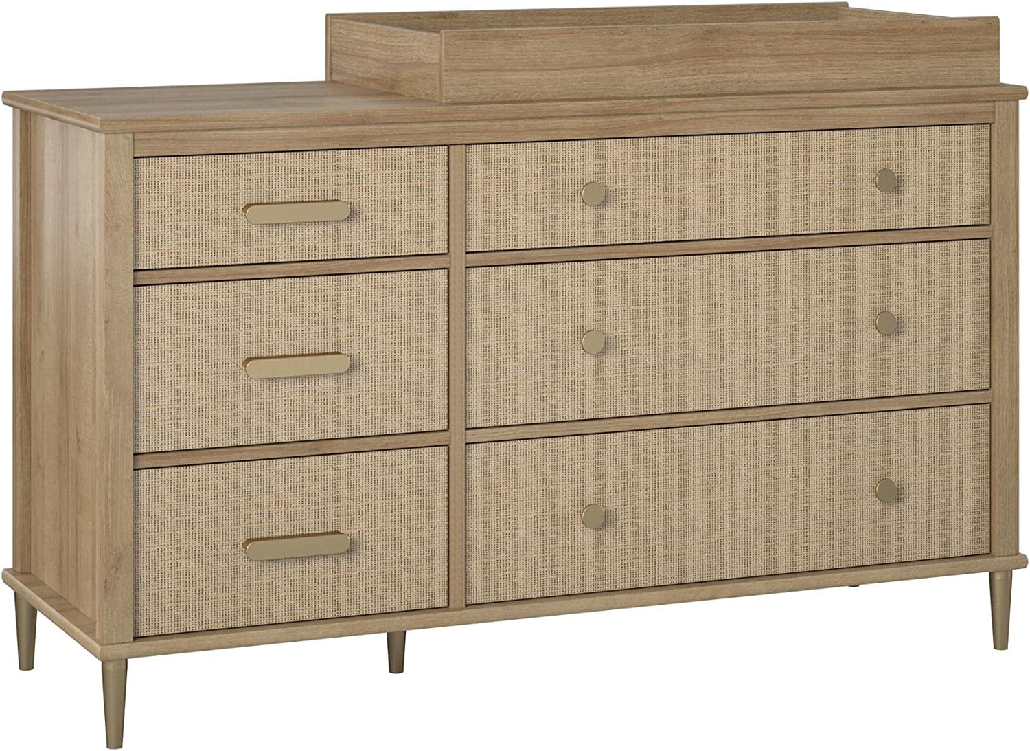 Little Seeds Shiloh Wide 6 Drawer Convertible Dresser & Changing Table, Natural and Faux Rattan