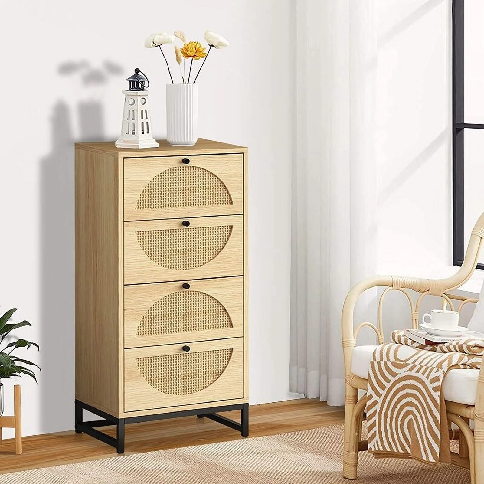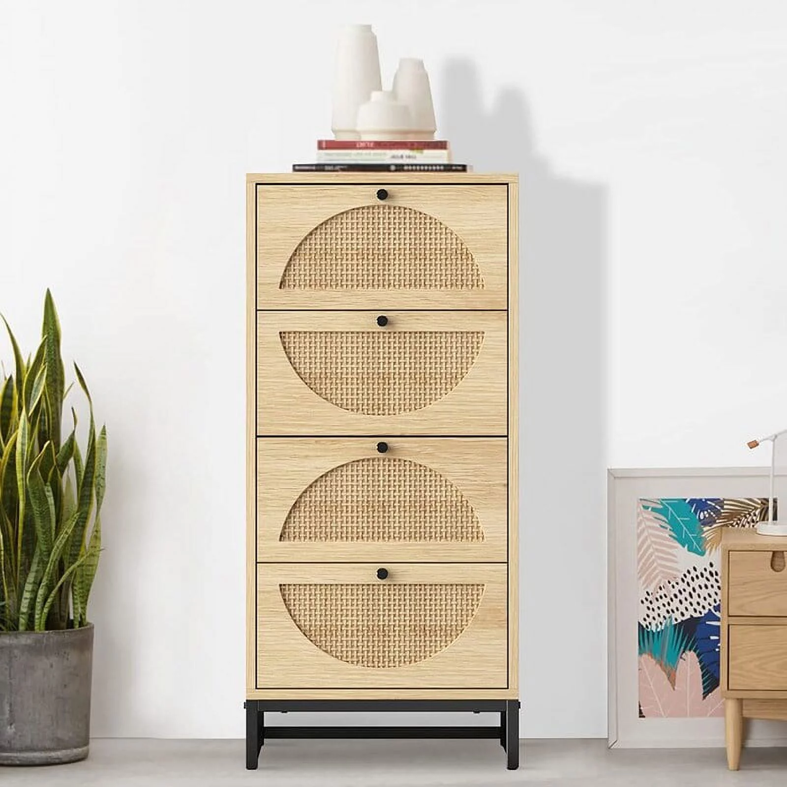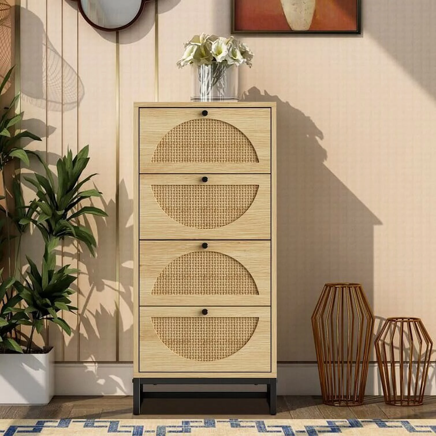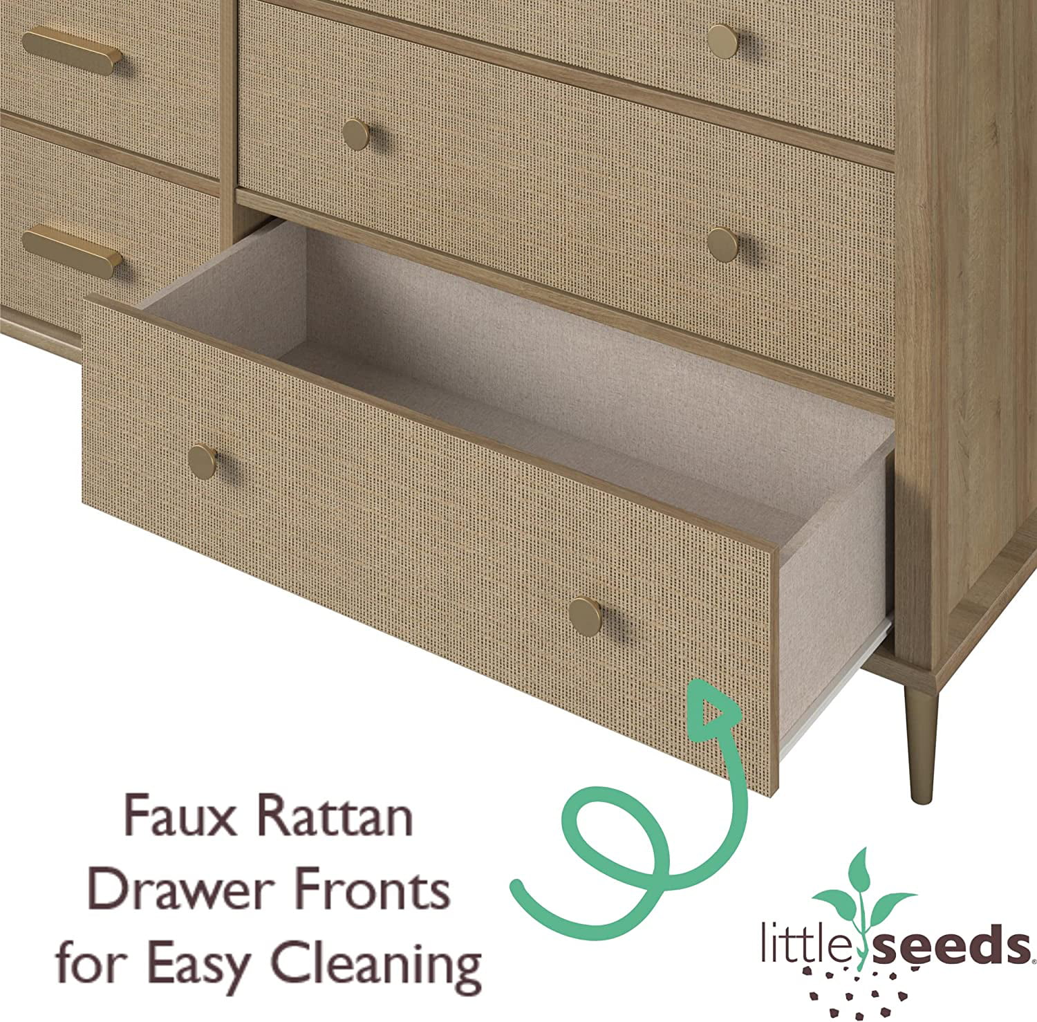 Little Seeds Shiloh Wide 6 Drawer Convertible Dresser & Changing Table, Natural and Faux Rattan