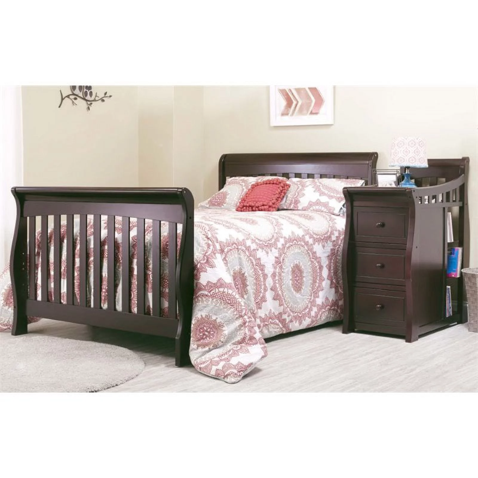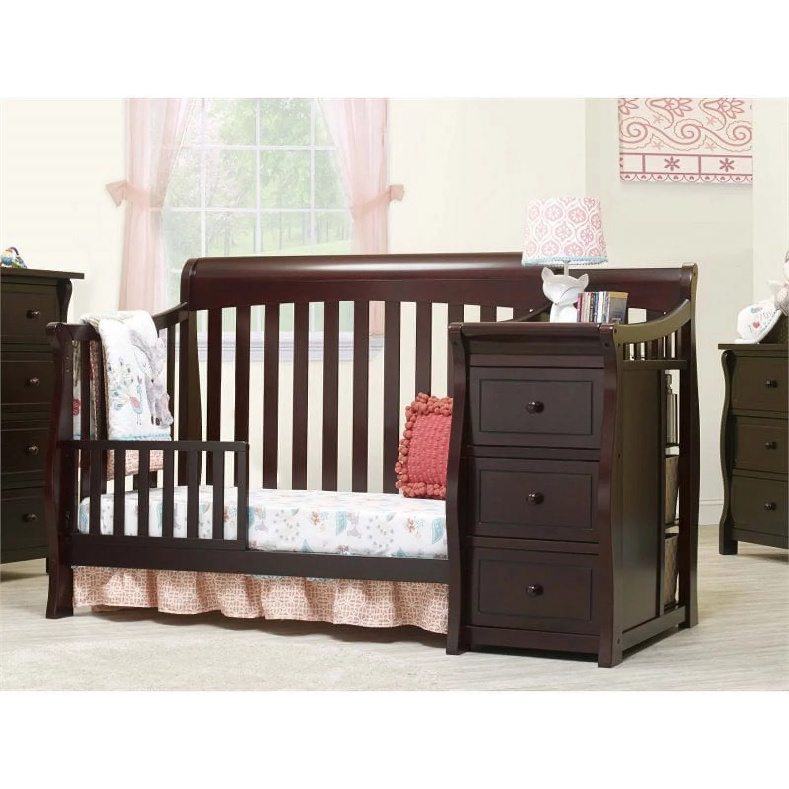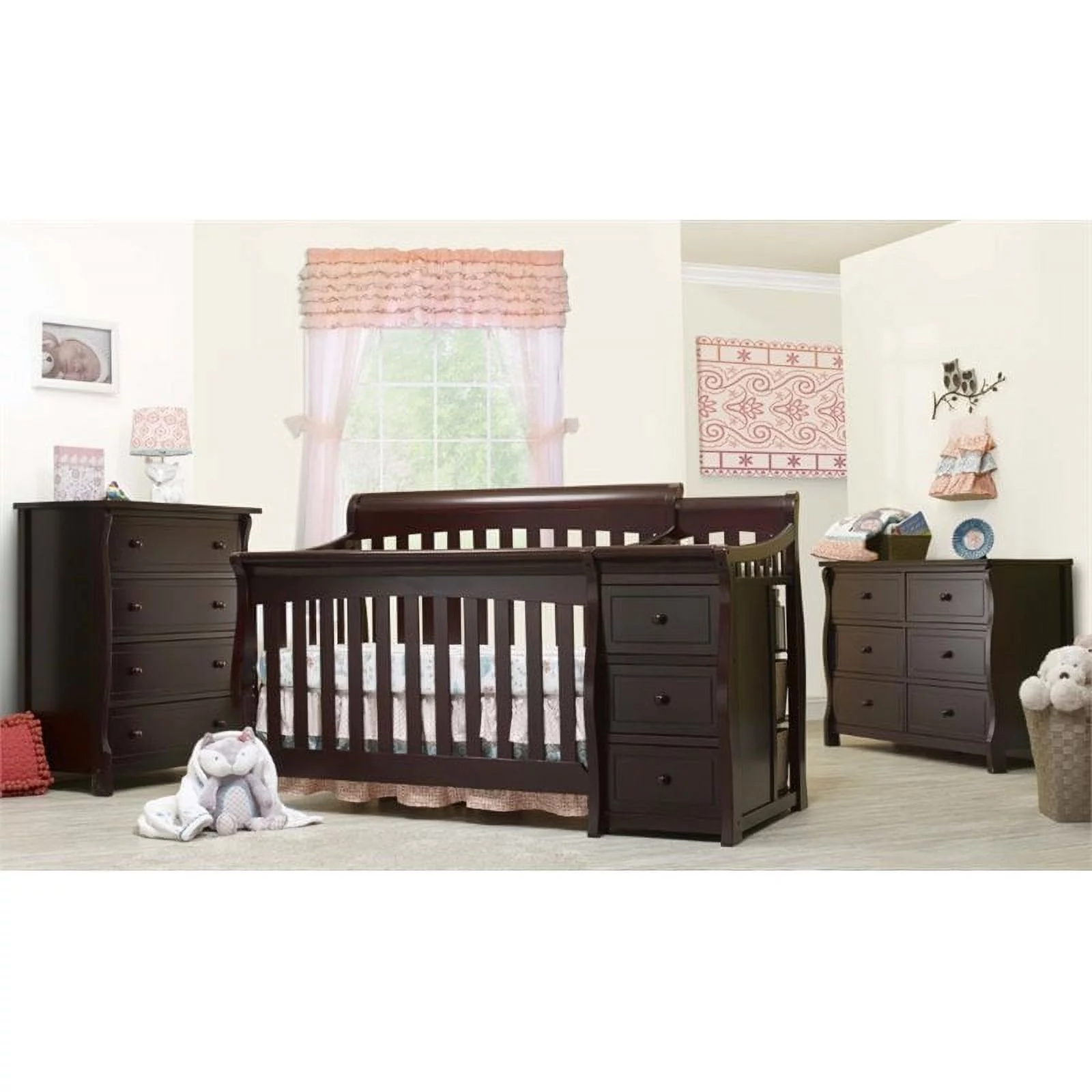 Baby Crib with Changing Table and 4 Drawer Dresser Chest Set in Espresso