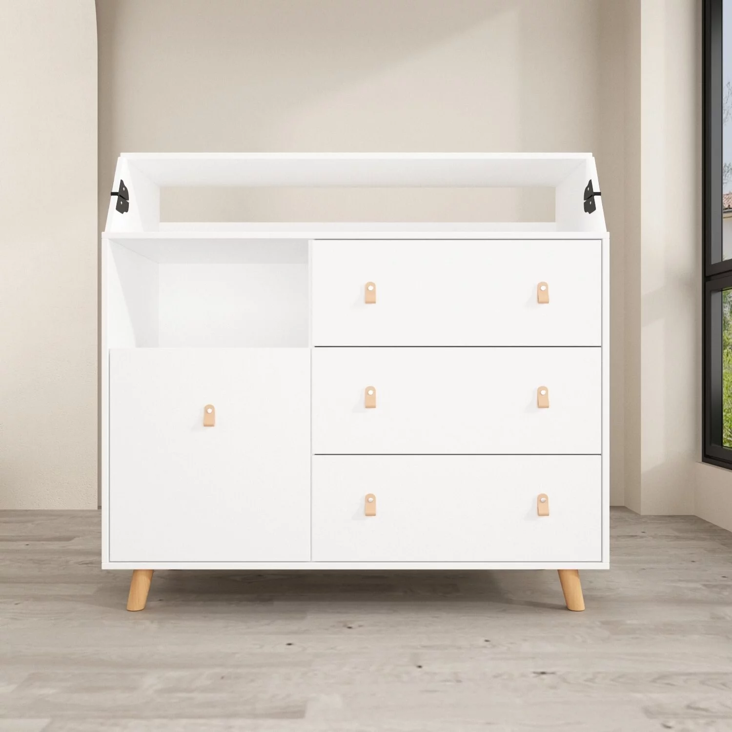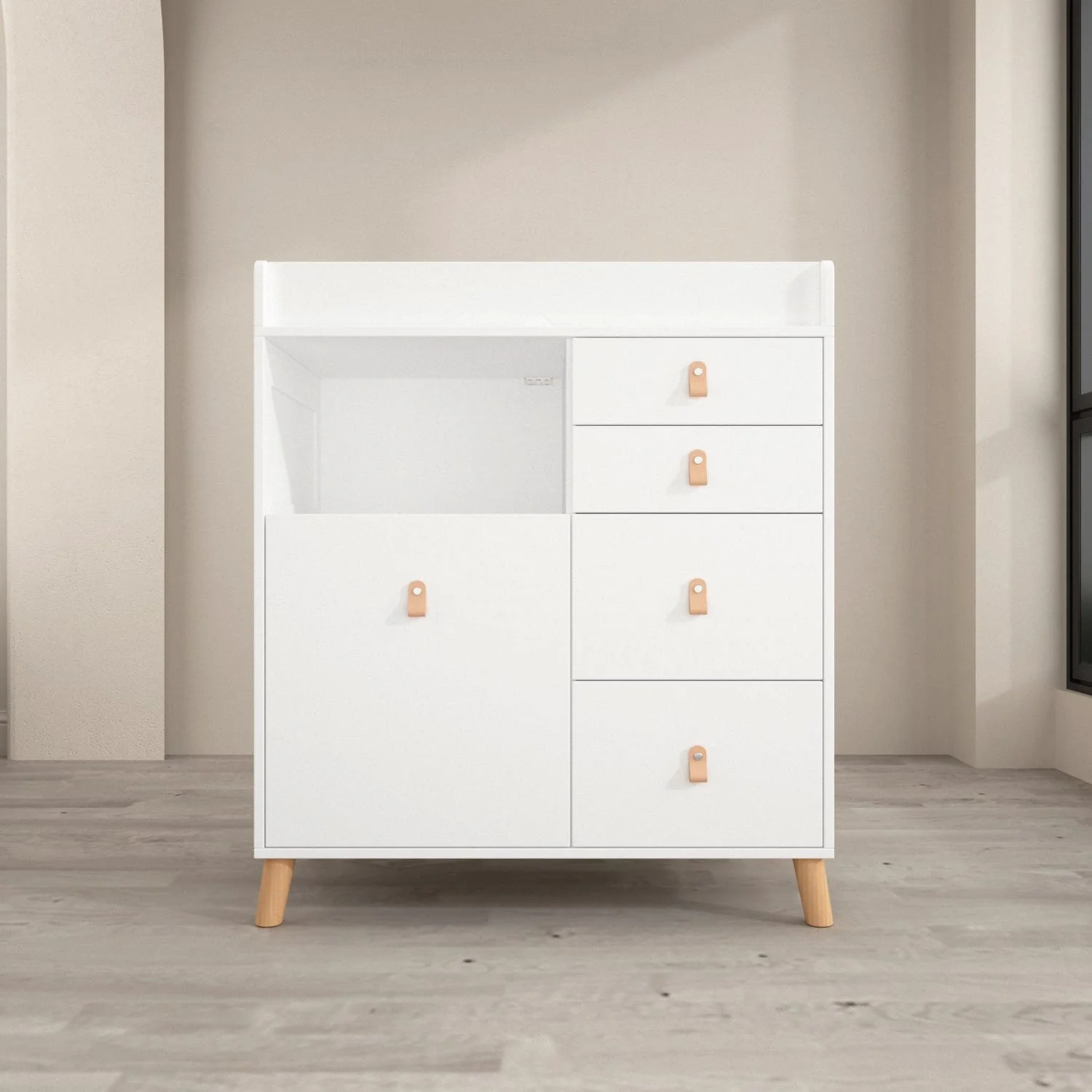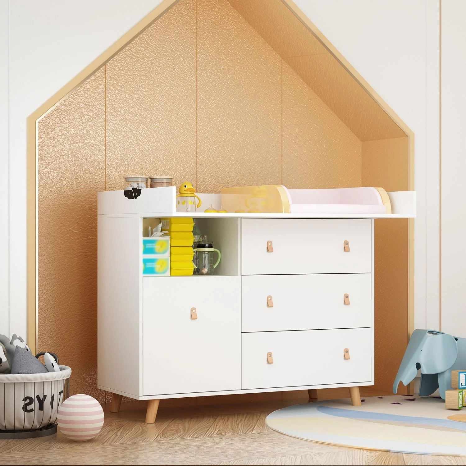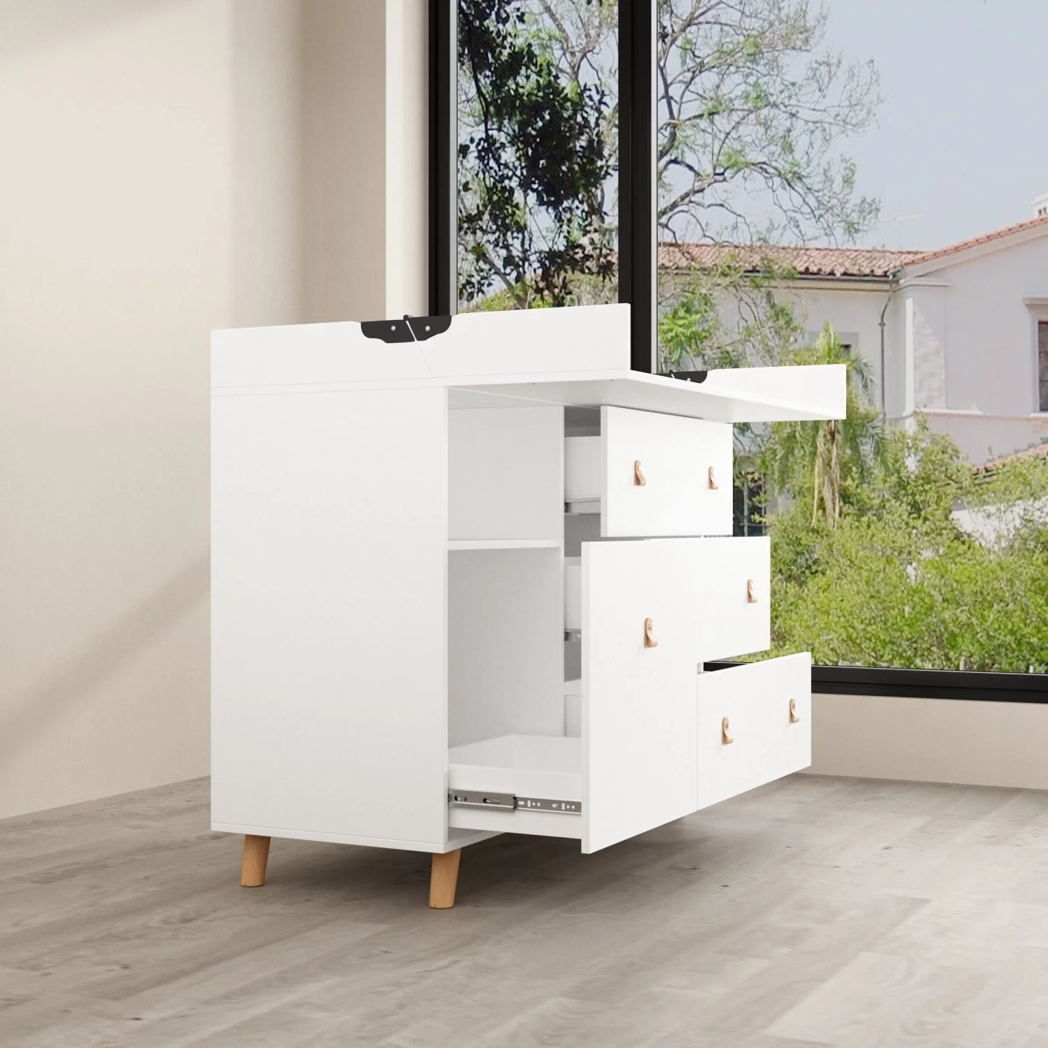 Versatile Nursery Changing Station with Ample Storage - White Dresser Oak - 5-drawer
