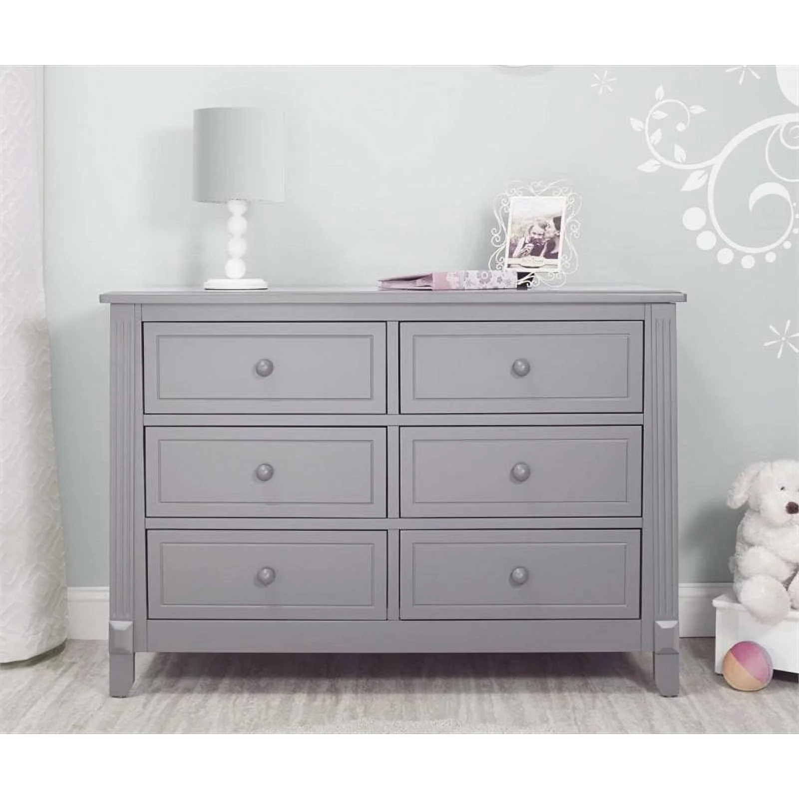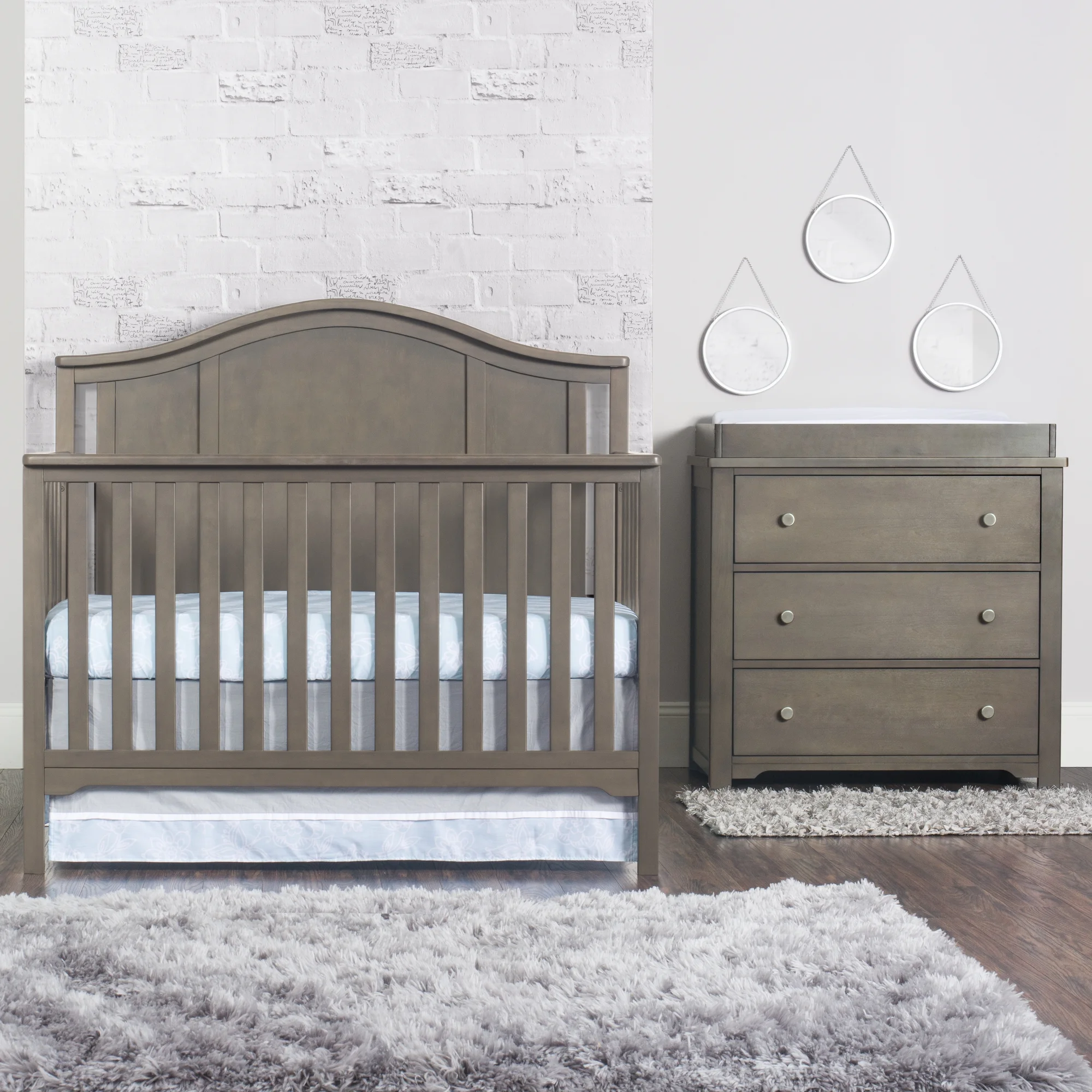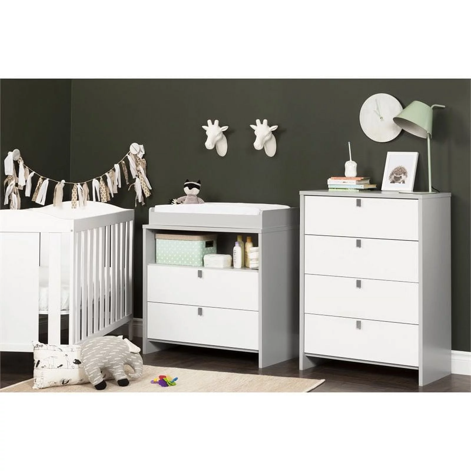 6-Drawer Double Dresser with Baby Crib and Changing Table Set in Slate Gray