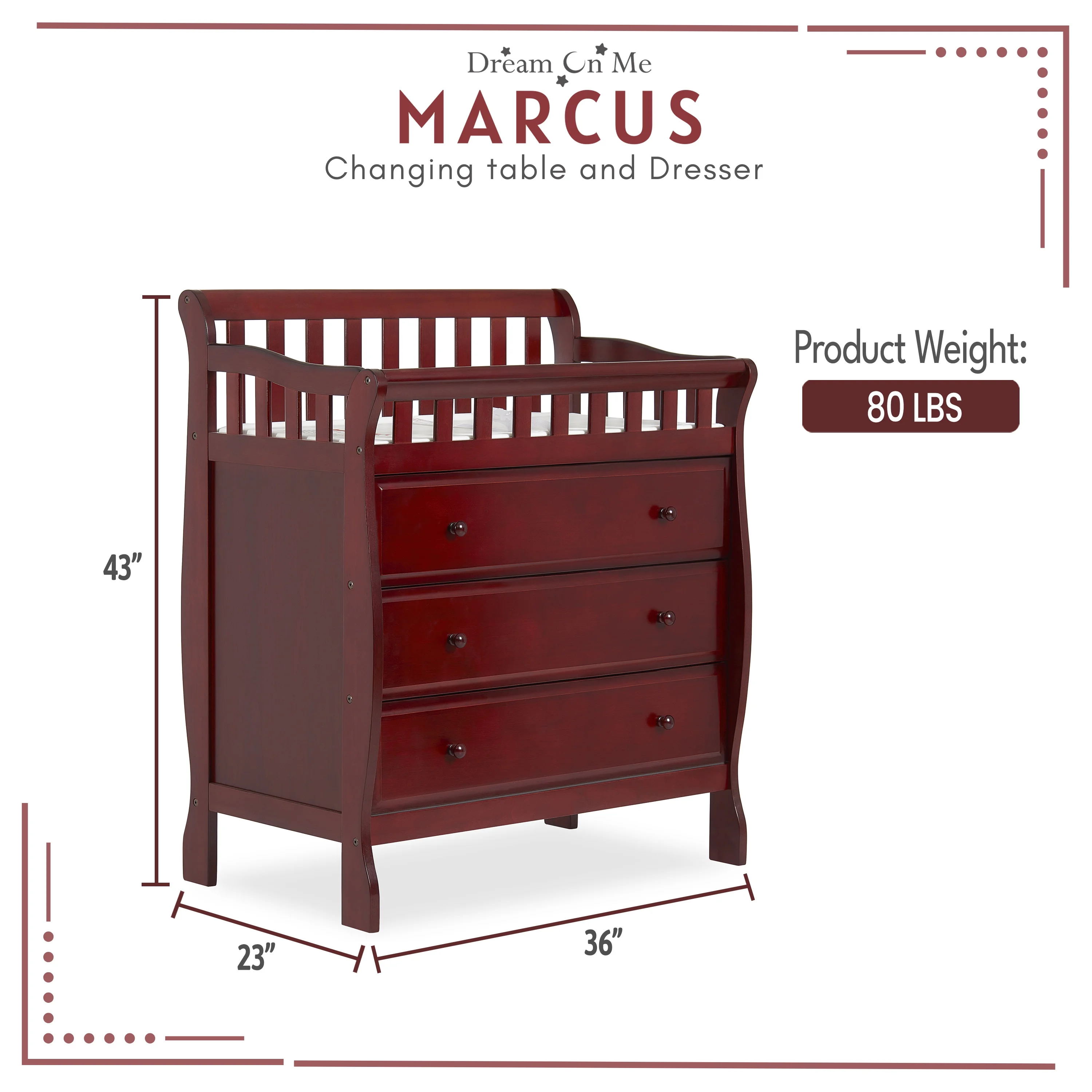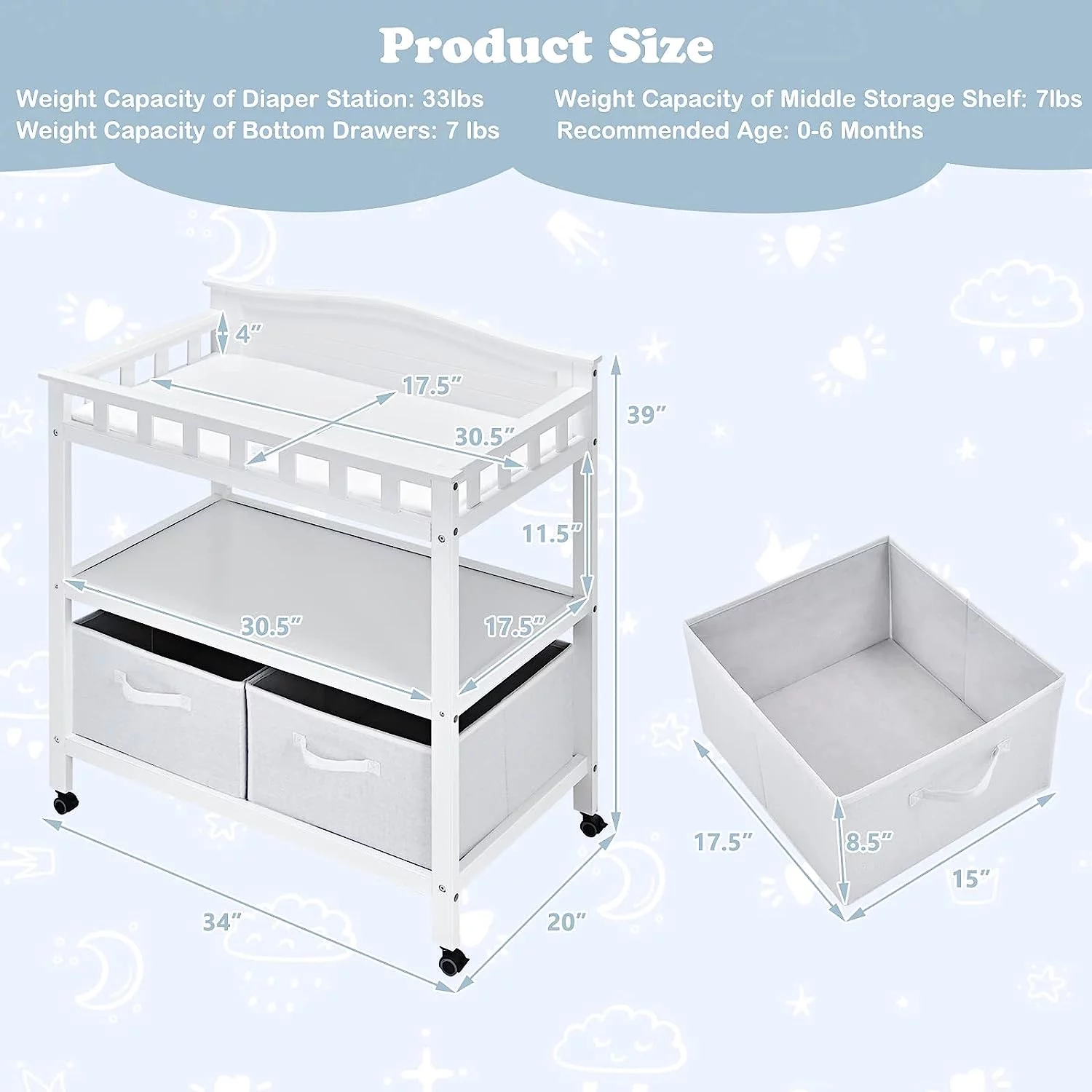 FUFU&GAGA 45" Dresser Baby Changing Table Safe and Comfortable Diaper Changes