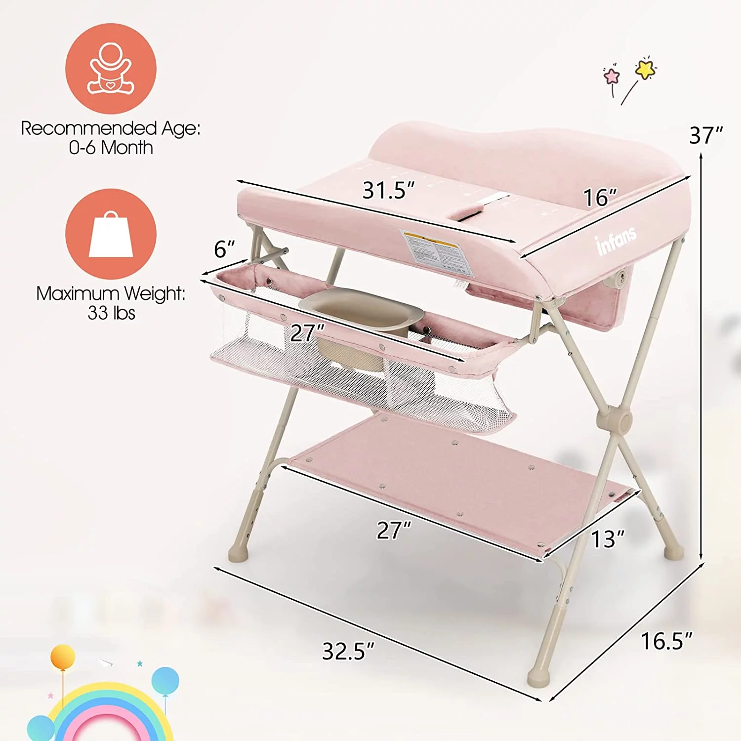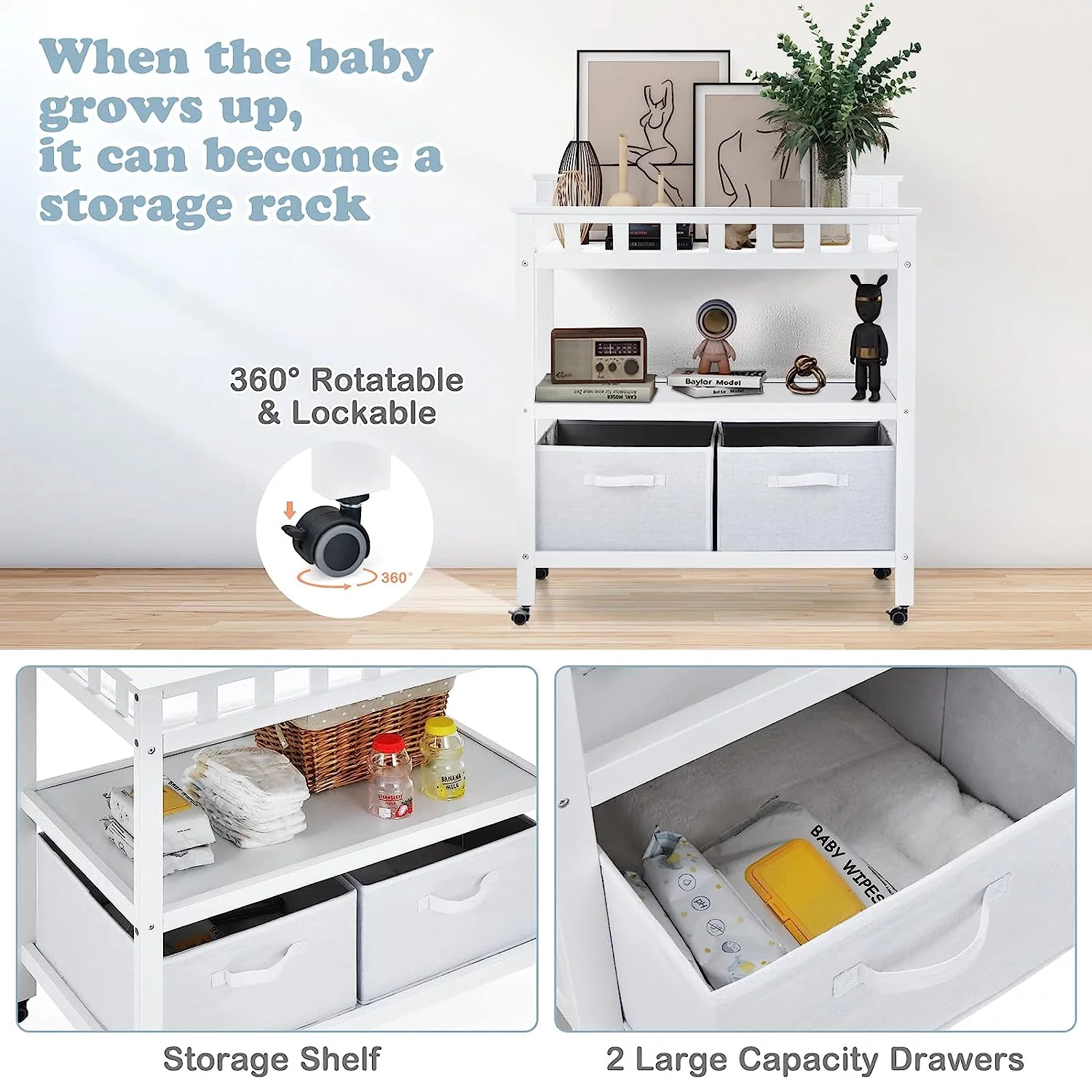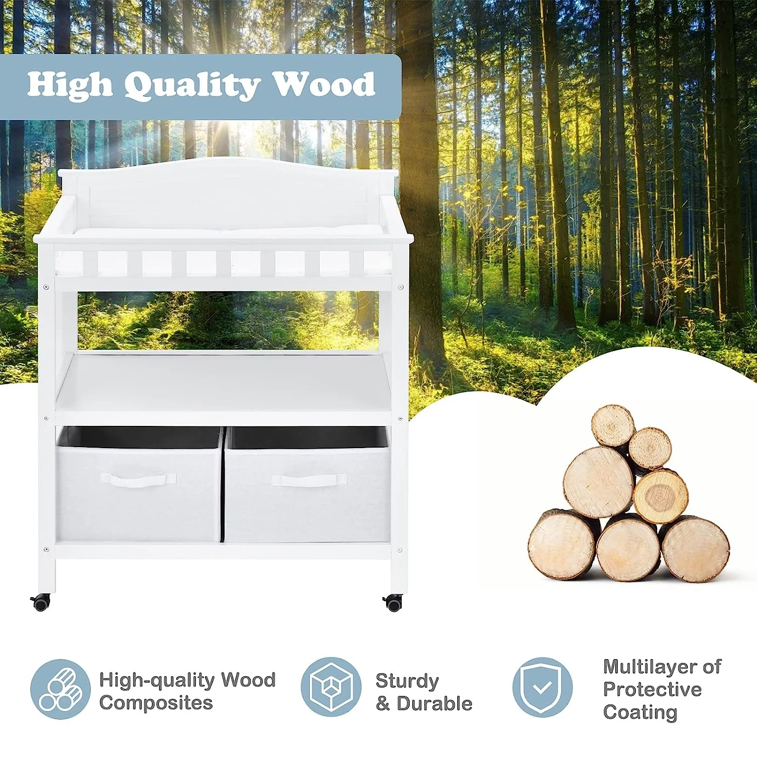 INFANS Baby Changing Table, Wood Diaper Dresser Station, Nursery Organizer Stand
