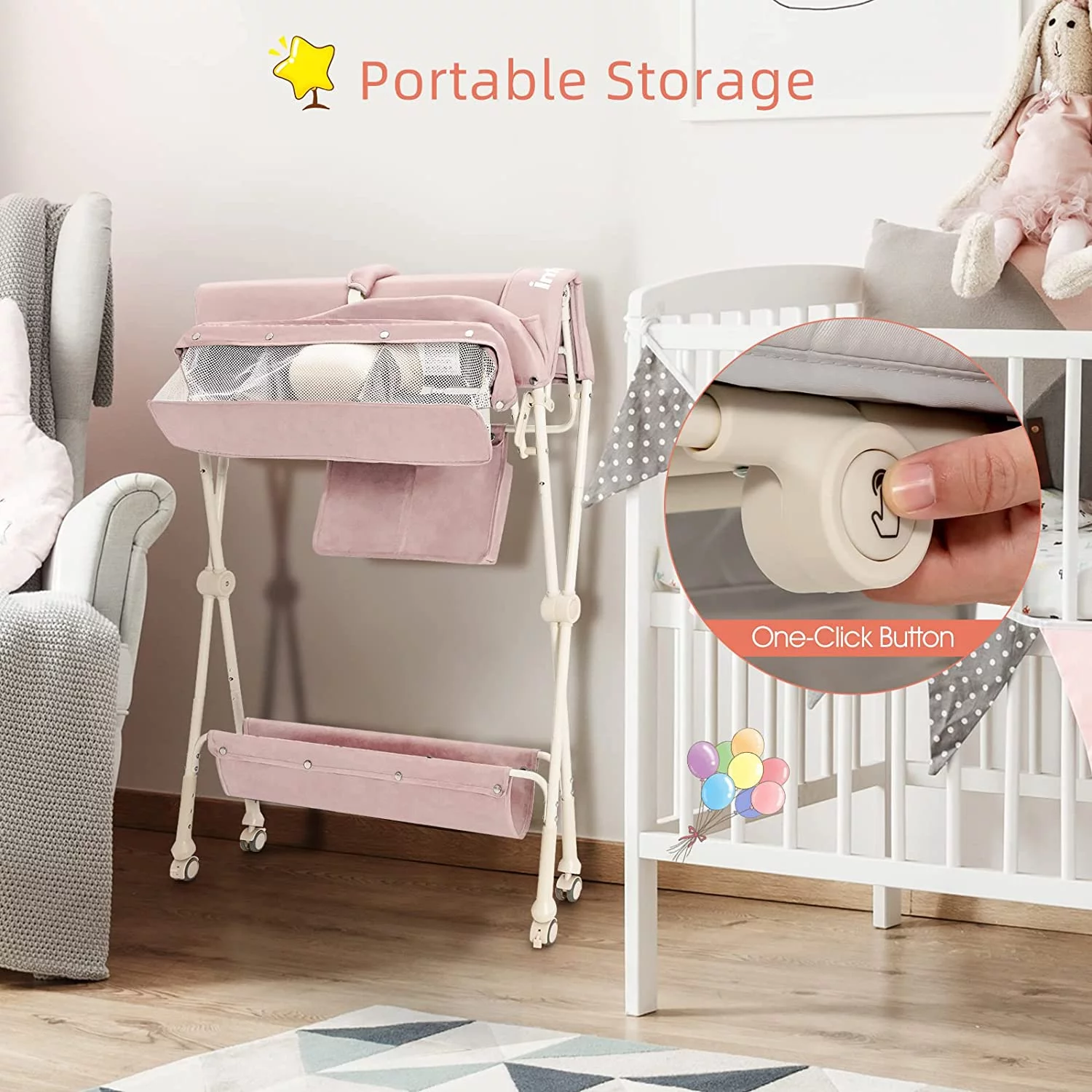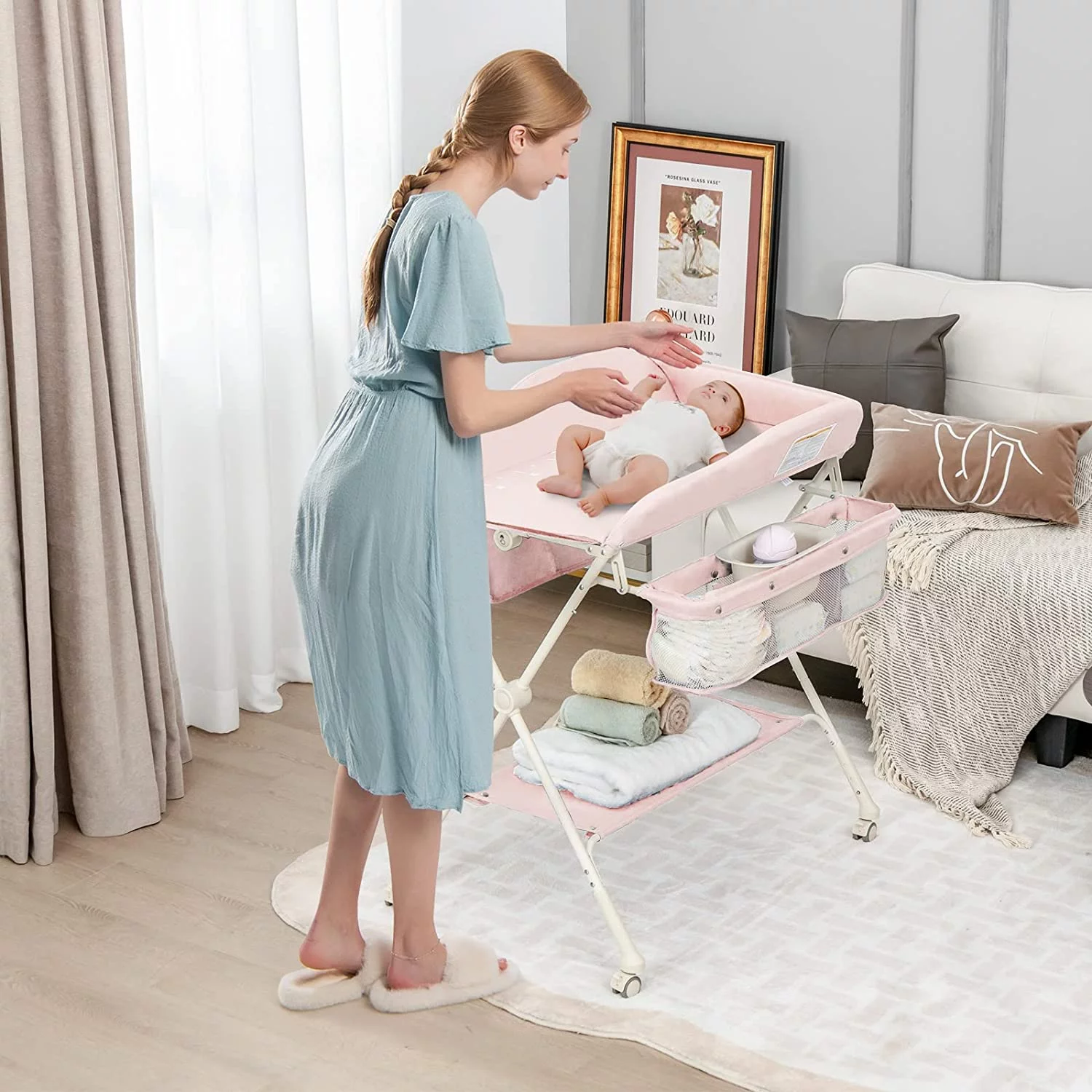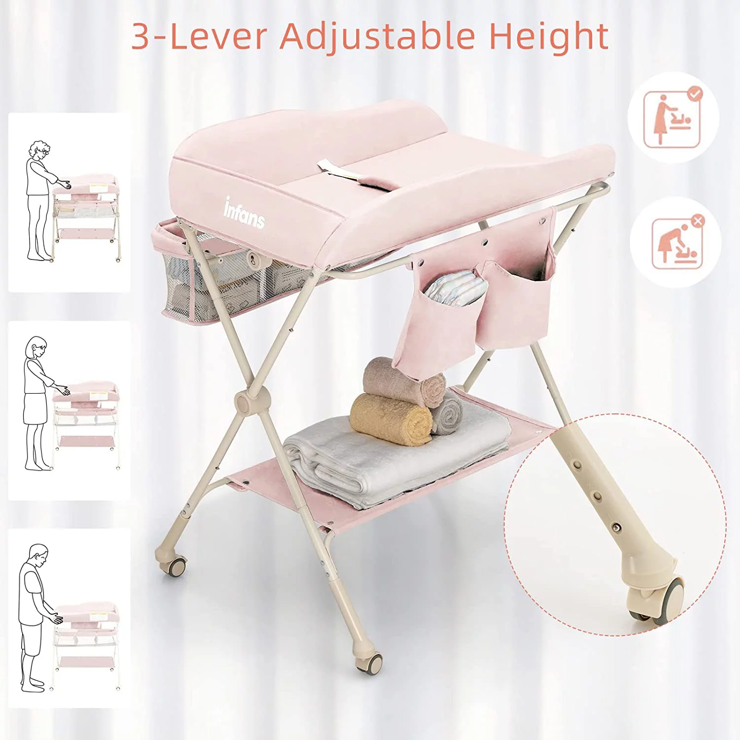 INFANS Baby Changing Table, Wood Diaper Dresser Station, Nursery Organizer Stand
