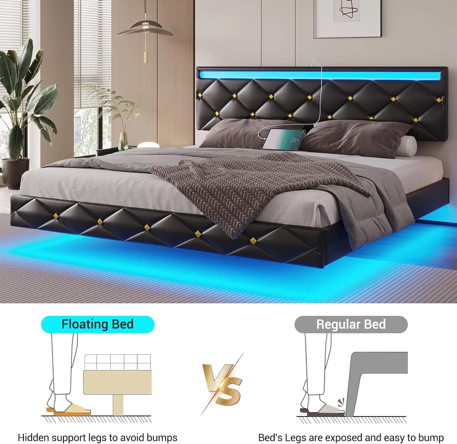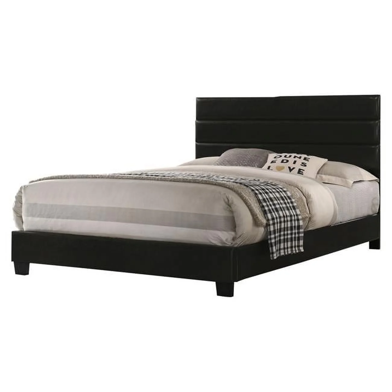 Bowery Hill Transitional Faux Leather Fabric Platform King Bed in Black