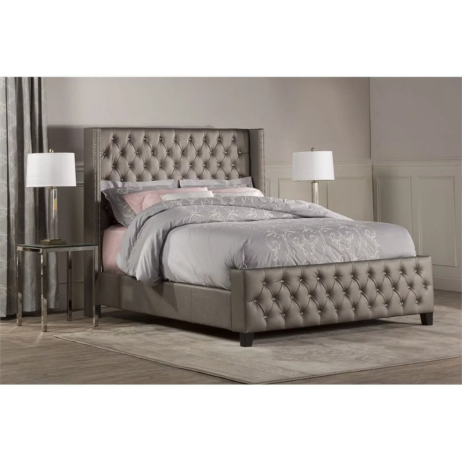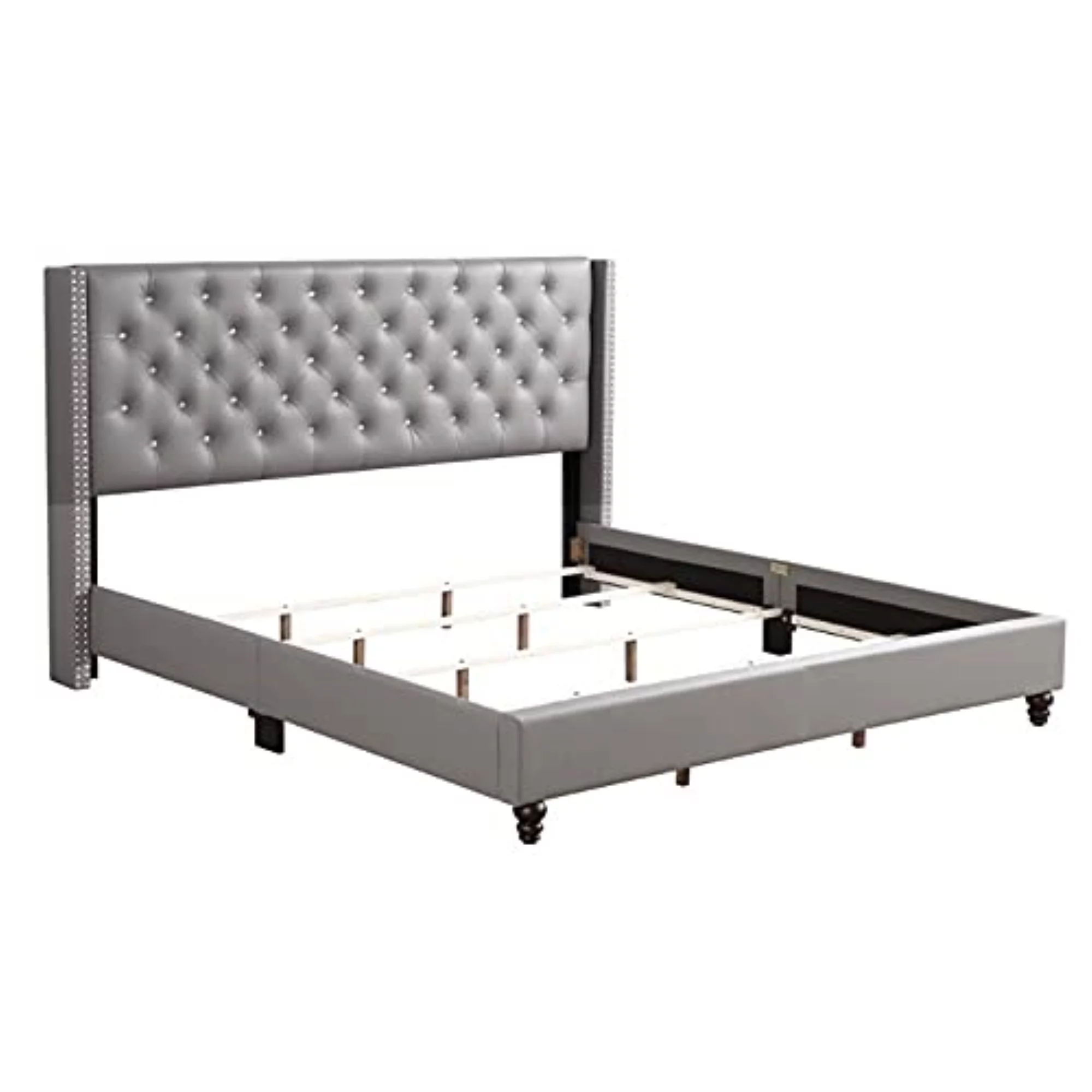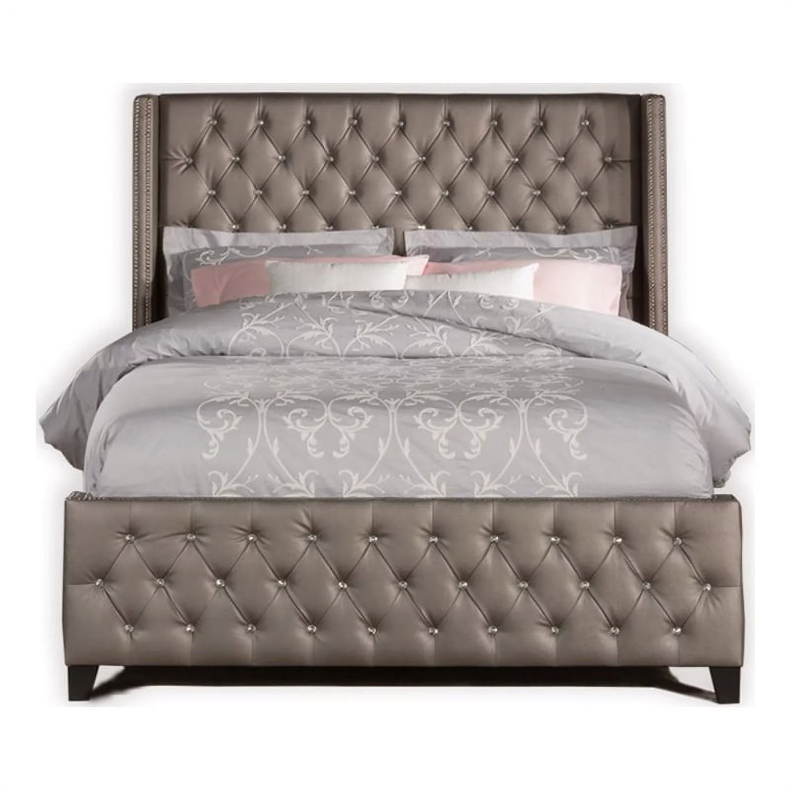 Glory Furniture Julie Faux Leather Upholstered King Bed in Light Gray