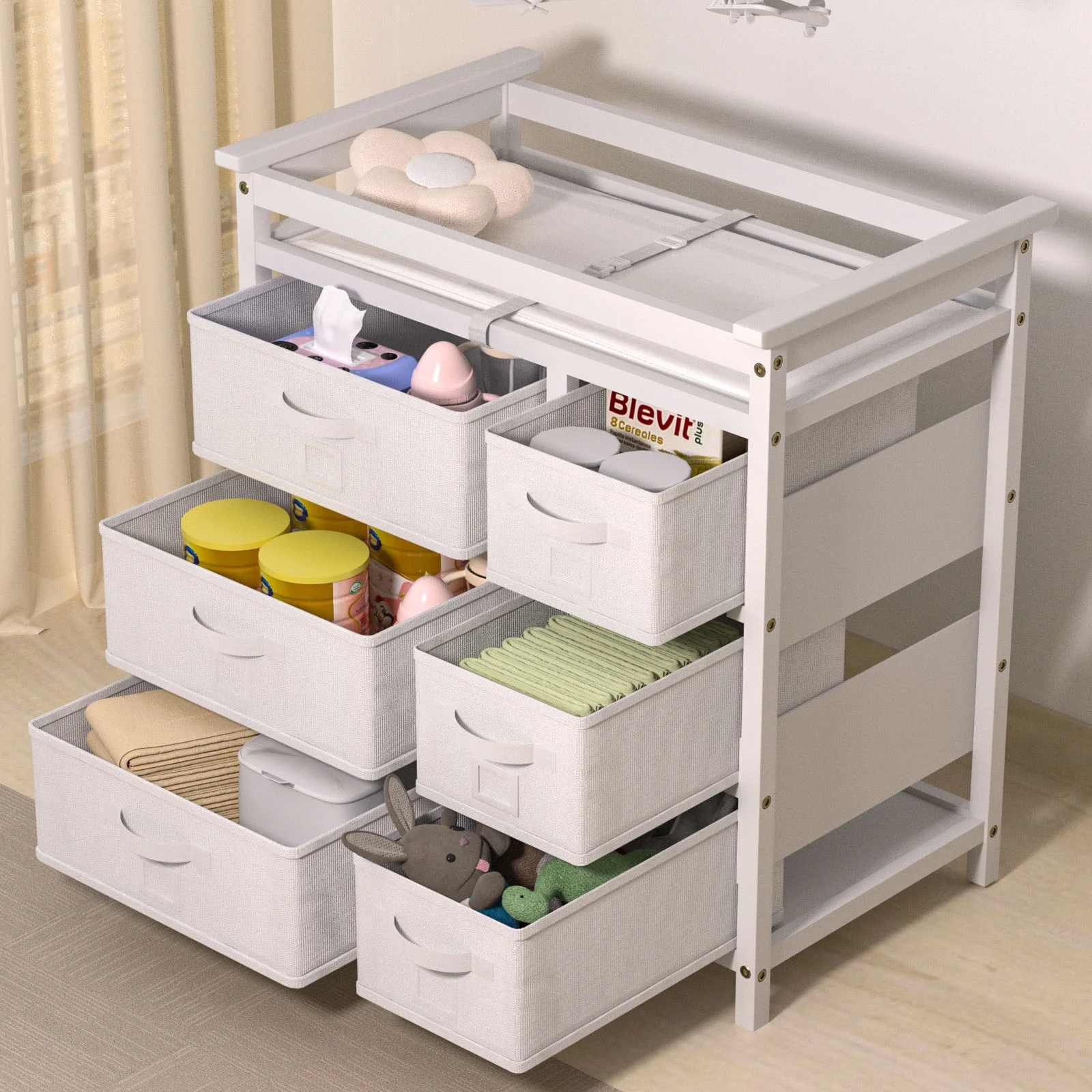 XJD Modern Baby Changing Table with 6 Storage Drawers and Pad Baby Changing Station, Diaper Changing Station - White