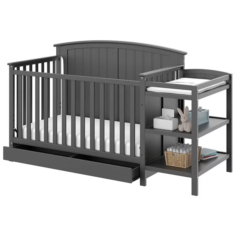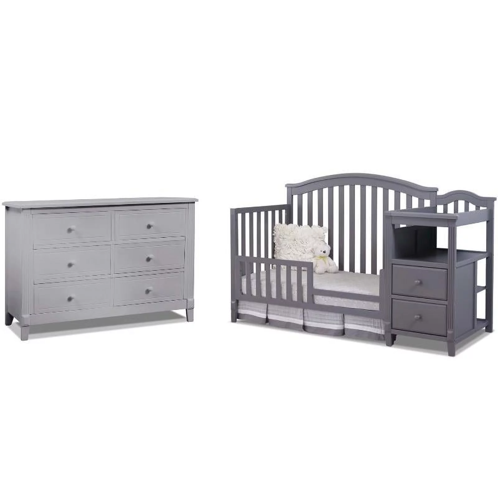 Baby Crib with Changing Table and 6 Drawer Double Dresser Set in Gray