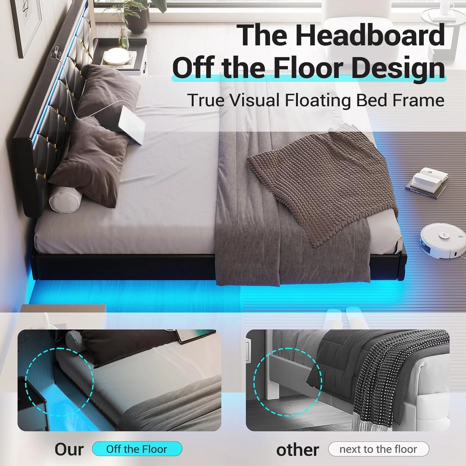 Atlin Designs Modern Faux Leather Upholstered Queen Panel Bed in Gray
